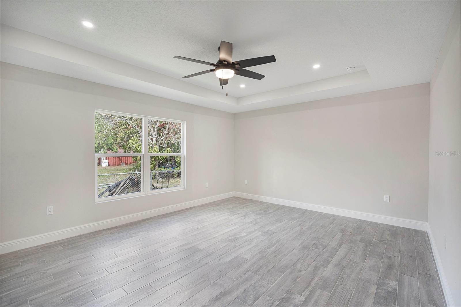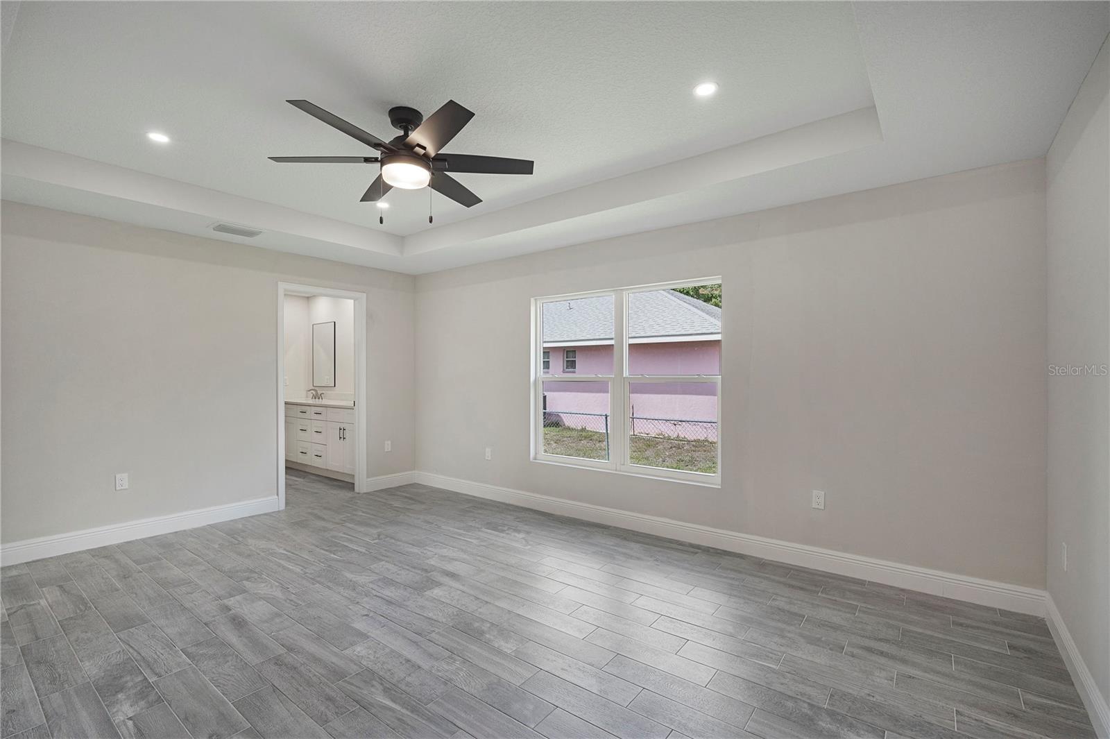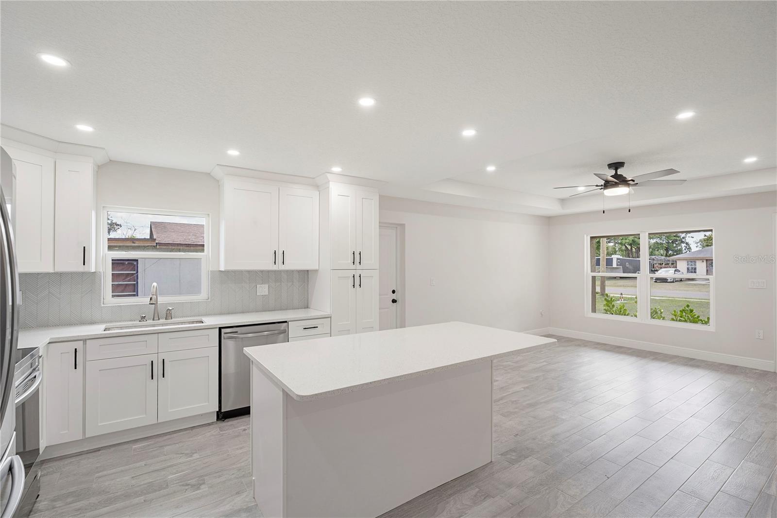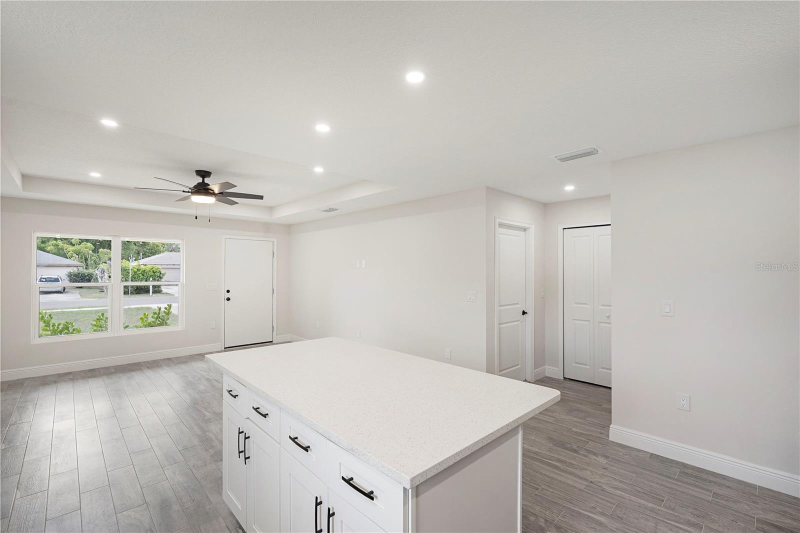 Welcome home to this brand new, move-in ready 3-bedroom, 2-bath beauty designed for comfort and modern living. From the moment you arrive, you’re greeted by a charming covered front patio—perfect for relaxing with your morning coffee or unwinding in the evening. Step inside to an inviting open-concept layout where the living room, dining area, and kitchen seamlessly blend together, creating the ideal space for both everyday living and entertaining. The living room features an elegant tray ceiling, recessed lighting, and large windows that fill the space with natural light. The kitchen is a true standout, complete with brand new stainless steel appliances, sleek quartz countertops, and soft-close cabinetry that combines style with functionality. Retreat to the spacious primary suite, offering a large walk-in closet and a beautifully appointed ensuite bathroom. The primary bath features a double vanity with quartz countertops and a tiled walk-in shower, providing a spa-like experience at home. Additional highlights include tile flooring and ceiling fans throughout, adding both durability and comfort. Step outside to enjoy a generously sized backyard with plenty of room to create your own outdoor oasis. This home offers the perfect blend of modern finishes and thoughtful design. Best part of all, NO HOA. This home is ready for you to move in and make it your own!