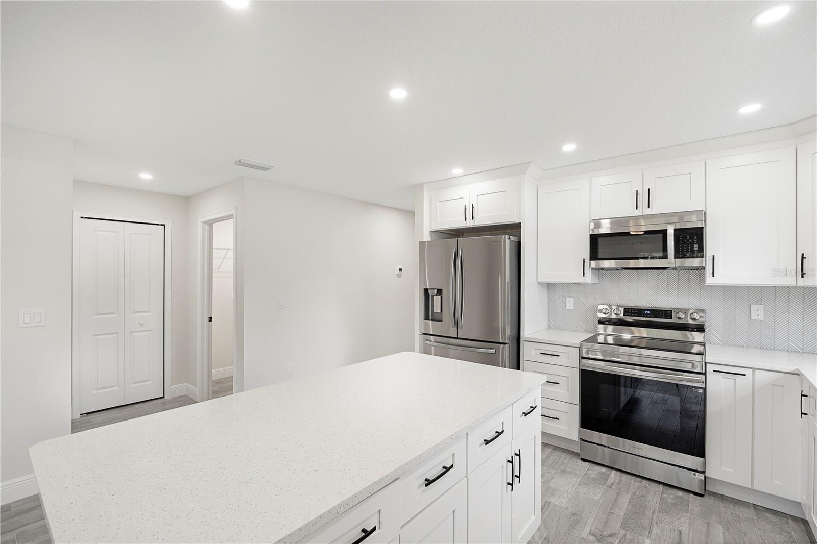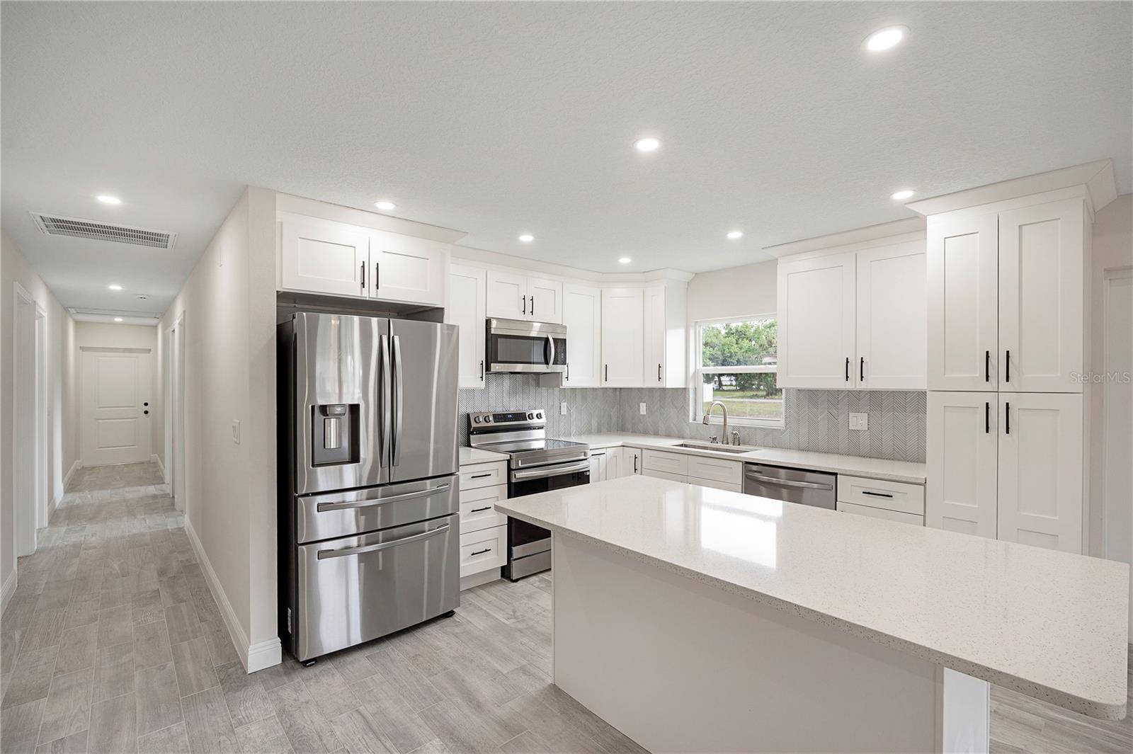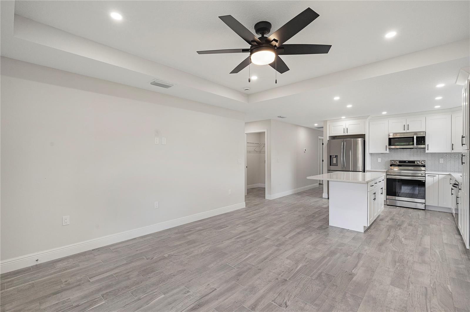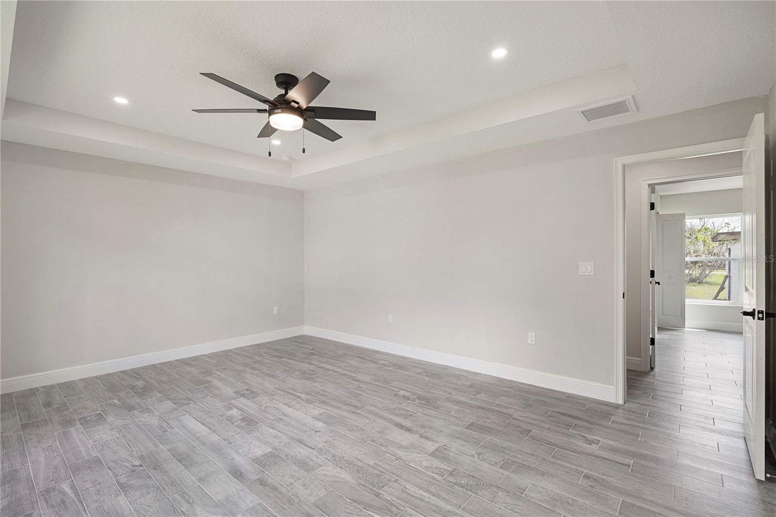 Welcome home to this brand new, move-in ready 3-bedroom, 2-bath beauty designed for comfort and modern living. From the moment you arrive, you’re greeted by a charming covered front patio—perfect for relaxing with your morning coffee or unwinding in the evening. Step inside to an inviting open-concept layout where the living room, dining area, and kitchen seamlessly blend together, creating the ideal space for both everyday living and entertaining. The living room features an elegant tray ceiling, recessed lighting, and large windows that fill the space with natural light. The kitchen is a true standout, complete with brand new stainless steel appliances, sleek quartz countertops, and soft-close cabinetry that combines style with functionality. Retreat to the spacious primary suite, offering a large walk-in closet and a beautifully appointed ensuite bathroom. The primary bath features a double vanity with quartz countertops and a tiled walk-in shower, providing a spa-like experience at home. Additional highlights include tile flooring and ceiling fans throughout, adding both durability and comfort. Step outside to enjoy a generously sized backyard with plenty of room to create your own outdoor oasis. This home offers the perfect blend of modern finishes and thoughtful design. Best part of all, NO HOA. This home is ready for you to move in and make it your own!