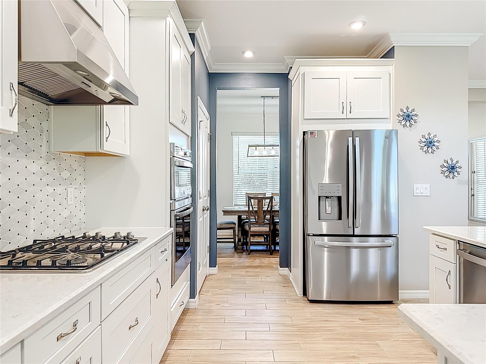 Experience refined Florida living in this impeccably designed executive Taylor Morrison Bonaire model, nestled within the sought-after community of Eaves Bend at Artisan Lakes. This stunning 4-bedroom, 3.5-bath residence offers over 2,600 square feet of thoughtfully curated living space, blending luxury, comfort, and modern sophistication. From the moment you step into the grand foyer, you’re greeted by soaring ceilings, abundant natural light, and an open-concept layout ideal for both elegant entertaining and everyday living. The gourmet kitchen is a true centerpiece, featuring premium stainless steel appliances, gleaming quartz countertops, a spacious island with bar seating, custom cabinetry, a walk-in pantry, and a whole-house water filtration system. The main-level owner’s suite serves as a private retreat, complete a cozy sitting area, dual walk-in closets, and a spa-inspired bath with dual vanities, a soaking tub, and a glass-enclosed walk-in shower. Upstairs, generously sized secondary bedrooms and a versatile loft provide flexibility for a home office, media room, or additional living space. Designed for today’s lifestyle, the home also includes extended Wi-Fi coverage to keep you seamlessly connected. Step outside to your own private oasis backing to a peaceful conservation area. The screened-in lanai with outdoor kitchen is perfect for entertaining, while the beautifully landscaped yard offers and ample space to design your dream pool. Additional highlights include an oversized 3-car garage with epoxy flooring, abundant storage, and room for a full-size truck, along with extra storage potential beneath the staircase. The home’s contemporary design delivers striking curb appeal and a commanding presence. Residents of Eaves Bend enjoy resort-style amenities including a clubhouse, resort pool, fitness center, playground, sports courts, and scenic walking trails—all conveniently located near I-75, downtown St. Petersburg, Lakewood Ranch, and the Gulf beaches. This is luxury Florida living at its finest.
