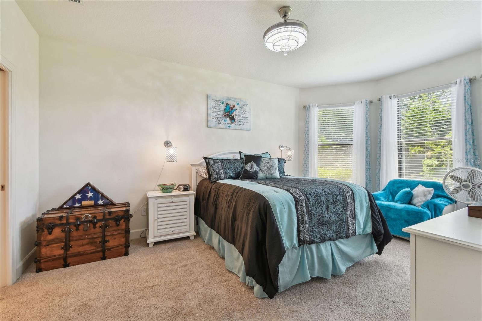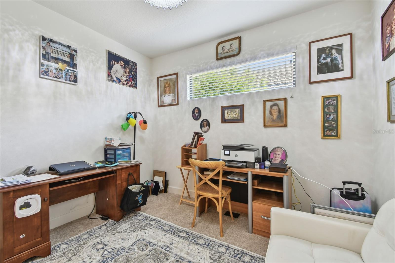 Welcome to your coastal retreat — where sun-kissed light, gentle breezes, and laid-back elegance await. Step inside this airy, coastal-inspired home and let your imagination set sail. From the moment you enter, you're greeted by a bright and open living space that flows effortlessly to a tranquil lanai, perfect for morning coffee or sunset lounging. Beyond the large sliding glass doors, enjoy a spacious backyard that backs up to serene conservation land — your own private slice of nature. The living room is filled with natural light, thanks to two generously sized windows, and offers the perfect backdrop for cozy coastal furnishings. The primary suite is a true seaside sanctuary, featuring a trio of bay windows that invite in soft light and offer views of the outdoors. A modern retractable ceiling fan with dual light settings adds both function and flair. The ensuite bath is spa-like, with a walk-in shower featuring a built-in seat, dual vanities with abundant counter space, and direct access to a walk-in closet with built-in shelving — and yes, there's attic access too. The dining room is bright and inviting, framed by a picture window that captures the beauty of the day. The kitchen is thoughtfully designed for both style and function, featuring stainless steel appliances, a double sink, ample lighting, and generous cabinet space — 15 upper cabinets, 12 lowers, and 6 drawers to be exact. A fixed window fills the space with natural light, making every meal prep a pleasure. The second bedroom offers comfort and versatility, with a walk-in closet, retractable ceiling fan, and pocket-door access to the second full bathroom, complete with a tub/shower combo and easy access from the hallway. Across the hall, you’ll find a spacious office — or creative space — with another fixed window and a ceiling fan to keep the ocean-inspired vibes going strong. Laundry is tucked away in a private room with ample shelving, and the two-car garage offers plenty of space and additional attic access. The community? It's your coastal clubhouse dream come true. The HOA includes landscaping, cable, and exclusive access to the Amenity Center — featuring a resort-style pool, lap pool, bubbling spa, fire pit, 24-hour fitness room, tennis courts, pickleball, corn hole, massage room, billiards, library, event space, and a calendar full of activities like dancing, bingo, and live shows. Don’t miss the opportunity to live the laid-back lifestyle you’ve been dreaming of — this coastal haven is calling your name.