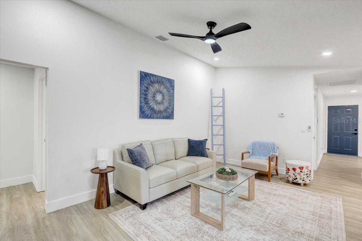 Welcome to 6505 64th Ln E in Palmetto, a beautifully renovated, move-in ready home offered at $379,900 that perfectly blends modern style with everyday comfort. From the moment you step inside, you’ll be impressed by the bright, open floor plan, soaring ceilings, and stunning plank luxury vinyl flooring that flows seamlessly throughout the main living areas. The heart of the home is the fully remodeled kitchen, designed to impress with quality wood cabinetry, sleek quartz countertops, stainless steel appliances, modern lighting, and a spacious peninsula with bar seating, ideal for entertaining or casual dining. Both bathrooms have been thoughtfully updated with stylish showers, contemporary fixtures, and clean, modern finishes. This home offers more than just great looks, it provides peace of mind with major upgrades already completed, including a new roof (2024), newer AC (2024), new hot water heater (2026), updated plumbing fixtures, fresh interior and exterior paint, and a newly installed fence. Unlike many newer builds, this property showcases a higher level of craftsmanship and attention to detail throughout. Step outside to your private, fenced-in backyard, perfect pets, or simply relaxing and enjoying the Florida lifestyle. Conveniently located near top-rated schools, shopping, dining, and major commuting routes, with easy access to Bradenton, Sarasota, St. Petersburg, and Tampa, this home truly offers the best of location and lifestyle. With low HOA fees and thoughtful upgrades throughout, this is a rare opportunity to own a beautifully updated home that’s ready for you to move in and enjoy from day one.