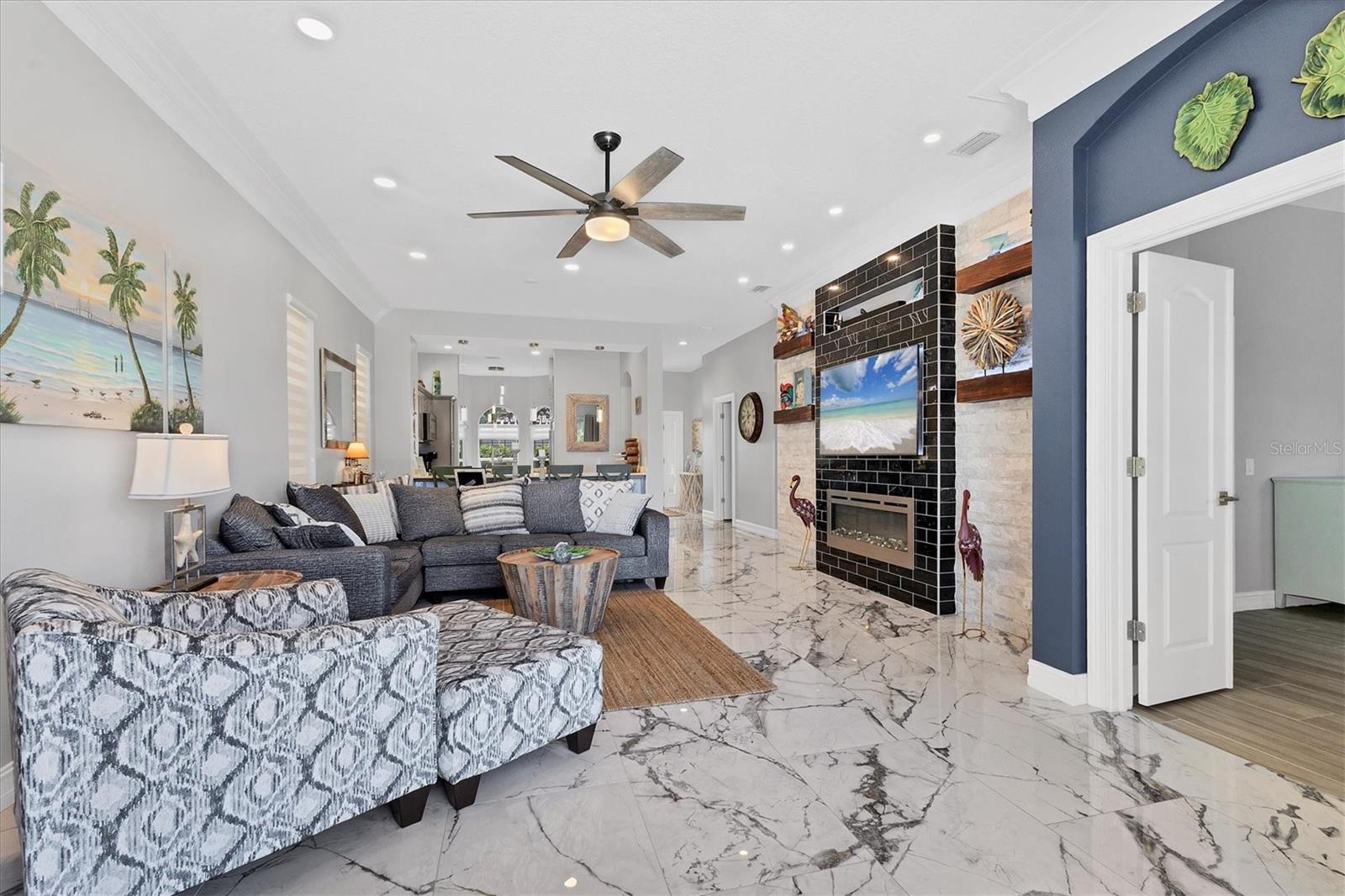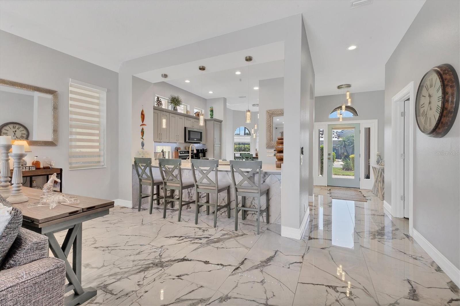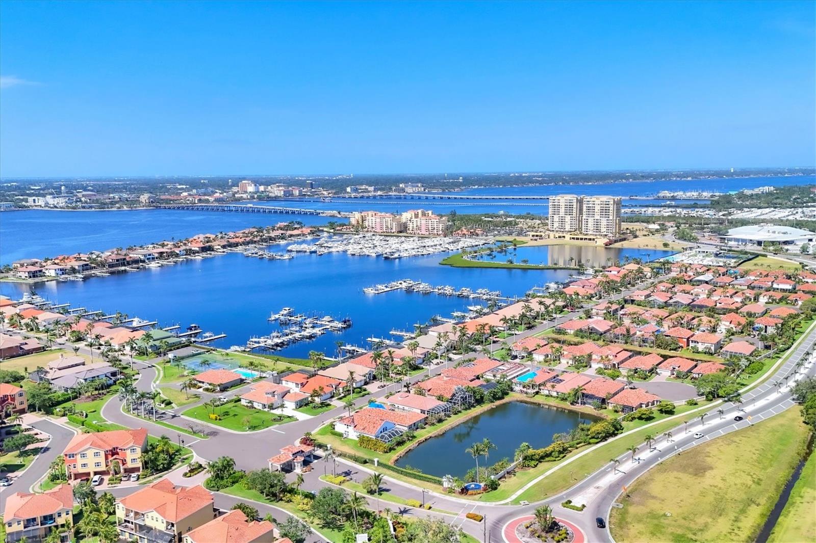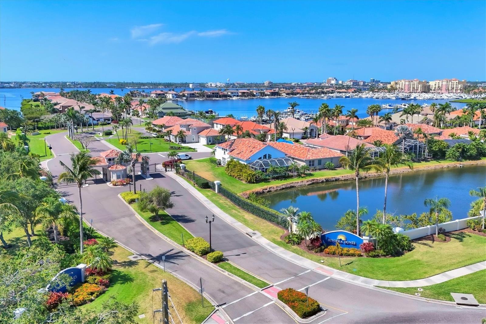 Under contract-accepting backup offers. WONDERFUL OPPORTUNITY - Welcome to Your Florida Paradise! Discover the Tranquil Waterfront Setting in the lovely, maintenance-free, gated community of Rivera Dunes. You will magically relax into the serene ambiance as soon as you pass through the gates into this pristine community. This immaculate 3-bedroom/ 2-bath/ 2-car-garage single-family home offers a carefree lifestyle with an array of luxurious amenities. Home features include: Open Floor Plan--Spacious layout with a split bedroom design. High Ceilings--10ft high ceilings throughout the home. Large eat-in Kitchen with big windows, updated countertops, wood cabinets, and stainless-steel appliances, convenient laundry-room. Living and Dining Room--Triple crown molding and upgraded tile floors. Master Bedroom--Walk-in closet, sunken oversized shower, separate spa bathtub, double vanities, and water closet. Versatile Bedrooms--Second and third bedrooms can be used as an office or den. Recent Upgrades: Re-painted exterior, ceramic flooring, ceiling fans, LED lighting, new bathroom, fireplace stone wall centerpiece with TV, blinds, replaced hot-water heater, door hardware, epoxy garage floor, & newly expanded screen-enclosed lanai. Community Features: Marina Access--Boat slips/lifts available for purchase or rent with direct access (no lifts needed) out to the Manatee River, Tampa Bay, & the Gulf. Outdoor Maintenance--Your community provides lawn-care and exterior painting. Fabulous Community Pool--Lounge by the pool with stunning basin and marina views. Pickle Ball/Tennis Court--Perfect for a game with friends on the beautifully maintained court. Club House--Plan a party or meet new friends in the welcoming club house. Fitness Center--Hassle-free workouts in the community fitness center. Private Nature Path--Take an afternoon stroll through the boat basin and enjoy the sunset at the Dockside Grill. Centrally Located: Near I-75 and I-275, close to Ellenton Outlets, Restaurants, multiple airports, the charter school, & Manatee Memorial Hospital. Don't miss out on this rare opportunity to own a well-priced single-family low-maintenance home in Rivera Dunes. UPDATED, IMMACULATE, and ready for you. Come visit; the time is right to make this yours.