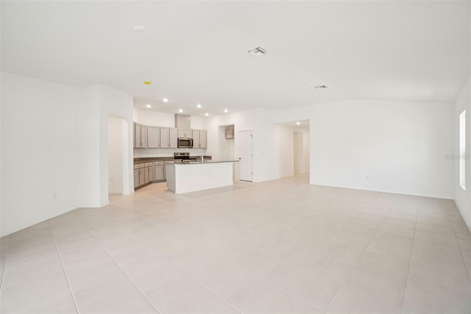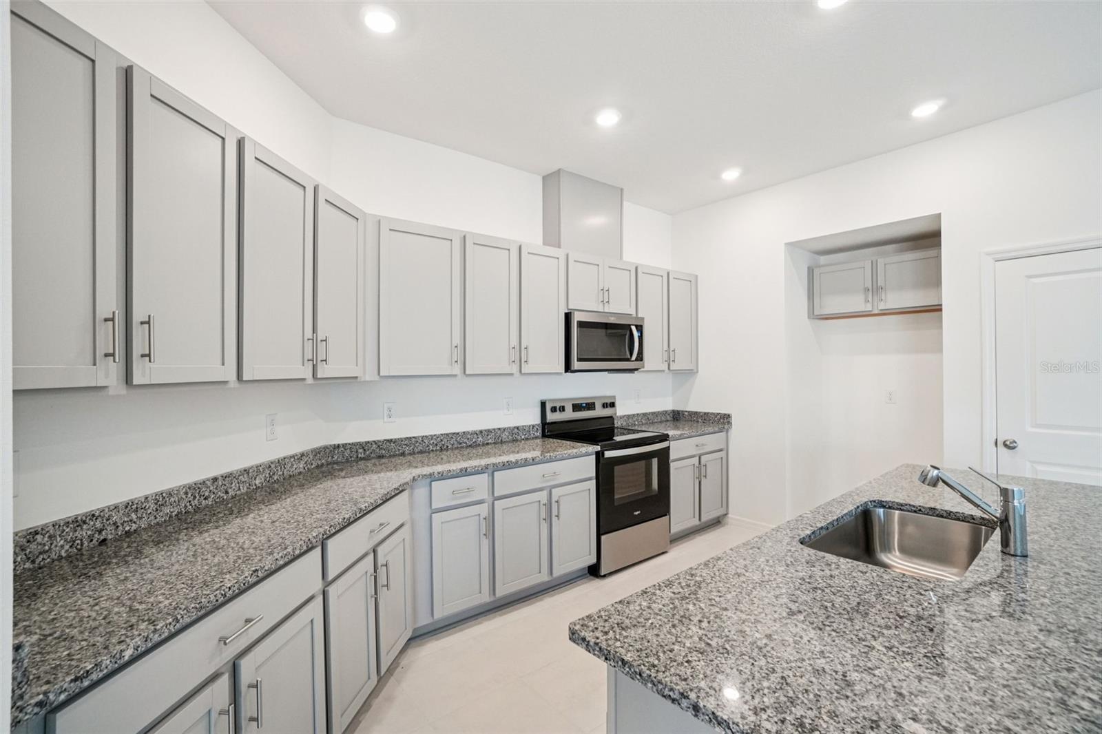 Prepare to meet the house of your dreams with this beautiful single-story home featuring tile flooring in the living and wet areas. The entry gives way to a spacious great room with 8-ft. ceilings that lead to a covered patio, ideal for hosting friends and family. This contemporary kitchen features granite countertops, 36-in. upper cabinets, an eat-at island, a walk-in pantry, and a stainless-steel Whirlpool® appliance package. Towards the front of the house, you will find three secondary bedrooms, which feature walk-in closets and a full secondary bath. The primary bedroom boasts a large walk-in closet, a connecting bath with a linen closet, tile surround in the walk-in shower, and a dual sink vanity with granite countertops. Community offers quick access to I-75, shopping and dining.