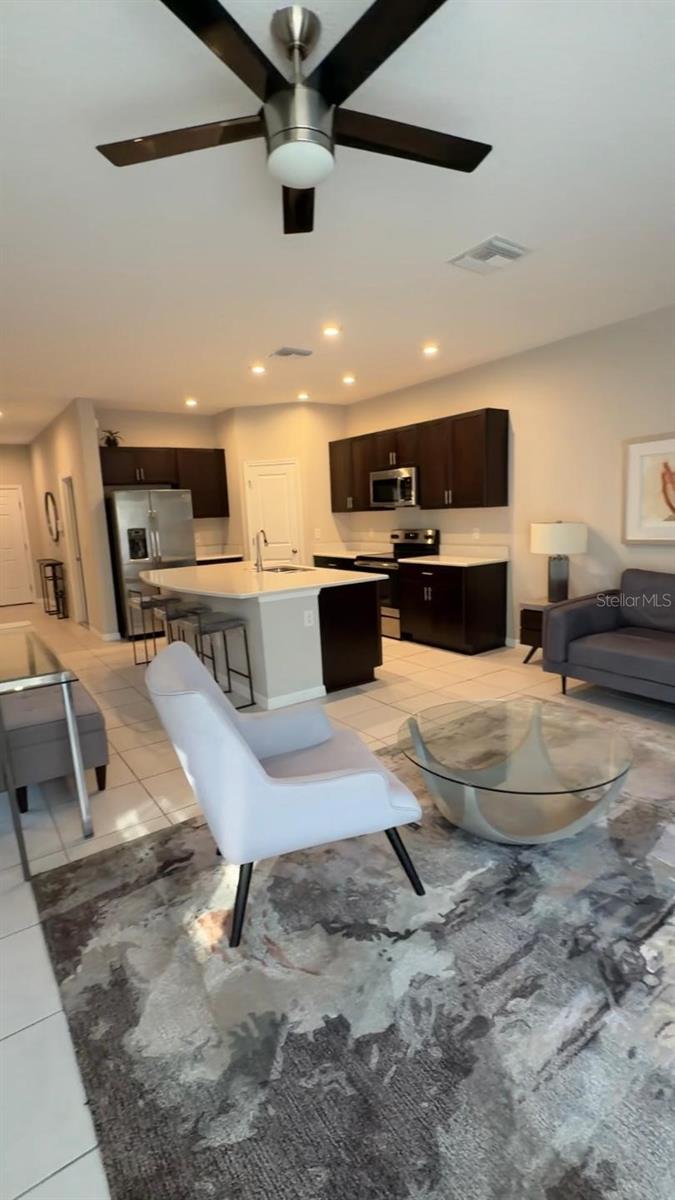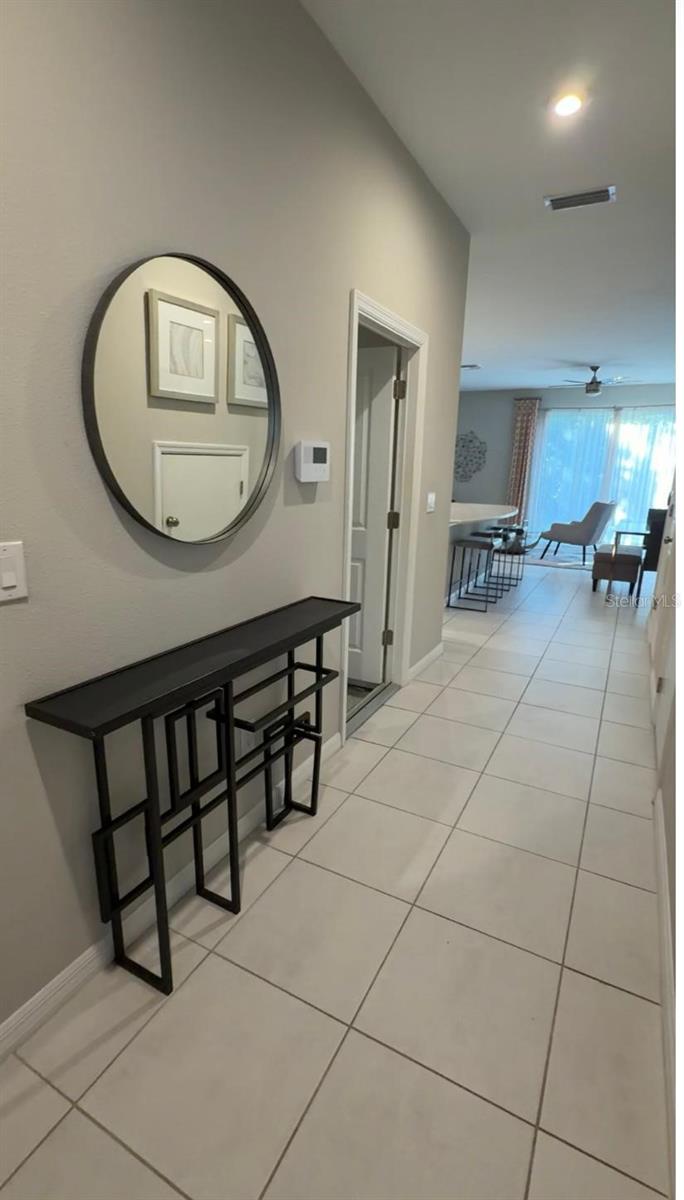 Former model home—being sold fully furnished! This beautifully upgraded 3-bedroom, 2.5-bath townhome with a 1-car garage is located in the highly desirable Artisan Lakes community. This end-unit Marigold floorplan offers an open-concept design with quality upgrades throughout. The gourmet kitchen features quartz countertops and elegant 36" Espresso Timberlake cabinetry, opening seamlessly to a spacious great room filled with natural light. Sliding doors lead to a private patio with no rear neighbors and peaceful conservation views, offering exceptional privacy. Upstairs includes two secondary bedrooms and a full bath, plus a spacious primary suite with an oversized walk-in closet, and dual-sink vanity. Additional highlights include Mohawk Level II ceramic tile on the main level, upgraded carpet upstairs, second-floor laundry with washer and dryer included, and ample storage including a walk-in pantry and under-stair storage. Situated on a premium homesite backing to conservation, this low-HOA, no-CDD community offers convenient access to I-75 and I-275. Ideal as a turnkey investment, second home, or primary residence. Meticulously maintained and move-in ready. Schedule your private showing today—fully furnished homes with conservation views are in high demand.