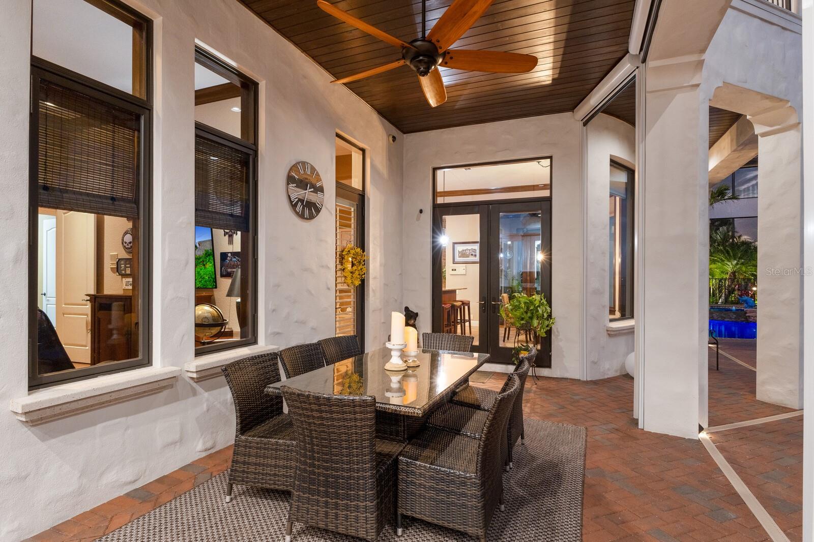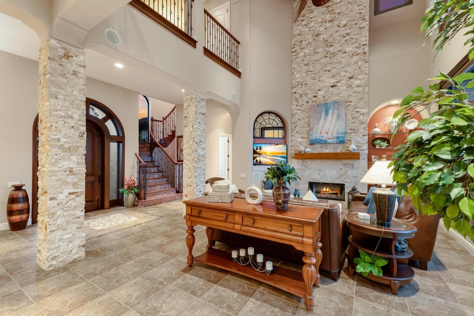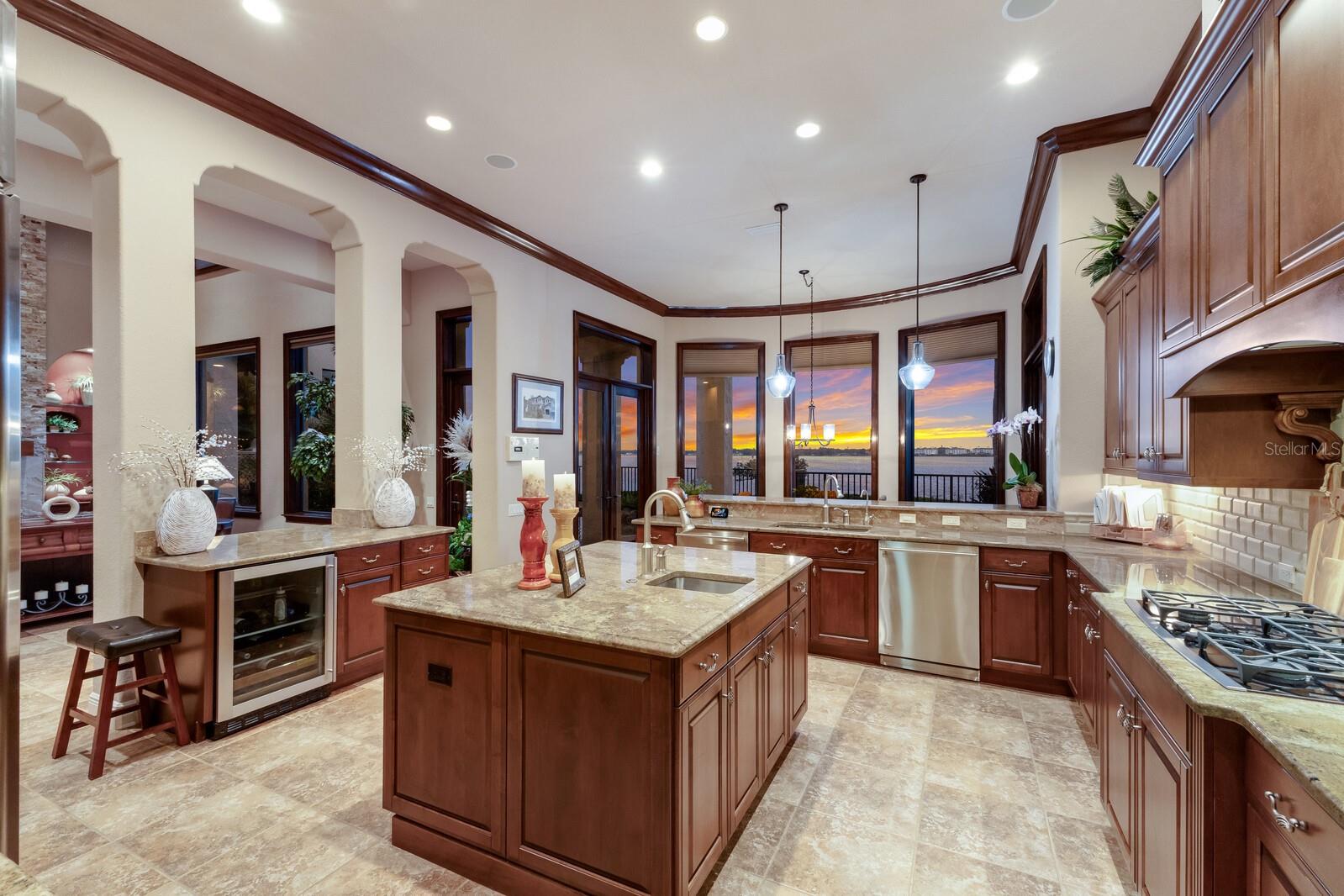 "Casa Vista", a spectacular California Mission inspired custom home epitomizes luxury riverfront living! Located on the Island enclave of Riviera Dunes an exceptional yachting community offering a deep-water harbor and 42' boat dock with lift. Upon entering through the courtyard foyer, you are greeted by soaring ceilings, a stunning 24' fireplace and floor-to-ceiling casement windows revealing a panoramic view of the majestic Manatee River. The attention to detail in this home is breathtaking, offering both southern exposure night city views and wide river vistas. The main level houses the serene primary bedroom wing, formal dining and great rooms, a chef-inspired kitchen with a morning room and butler's pantry, and a spacious den/study—all designed to lead to an outdoor tropical paradise. Choose from three ornate staircases or an elevator to explore the splendor within. Upper-level living includes a grand double guest suite, guest suite #3 each with en suites, spacious game room with additional kitchen, theater room, bridge/loft areas and wrap around balconies. All offering magnificent river and inviting pool views. The resort-style pool includes a cascading waterfall, fire pit, spa, and stone seating, perfect for creating lasting memories. The extensive 7,000+ sq. ft. outdoor oasis features a second fireplace and summer kitchen, encapsulating the essence of luxurious riverfront living. The primary suite, located on the main floor, offers a spa-inspired bath, cathedral ceiling and exposed wooden beams. With extensive woodwork and craftsmanship throughout, revealing exceptional quality. Additional amenities include garage space for 4 cars, a large boat slip, community pool, tennis courts, parklike settings, guard gated security, on-site restaurant, yacht brokerage and ship store are all included. The hurricane safe harbor provides direct access to Sarasota, Saint Petersburg, Tampa, the gulf and beyond. Located less than 30 minutes from top rated beaches, international airports, national sports venues and world class fishing minutes away. Discover why “Casa Vista” is more than a home with views; it's a lifestyle beyond compare.