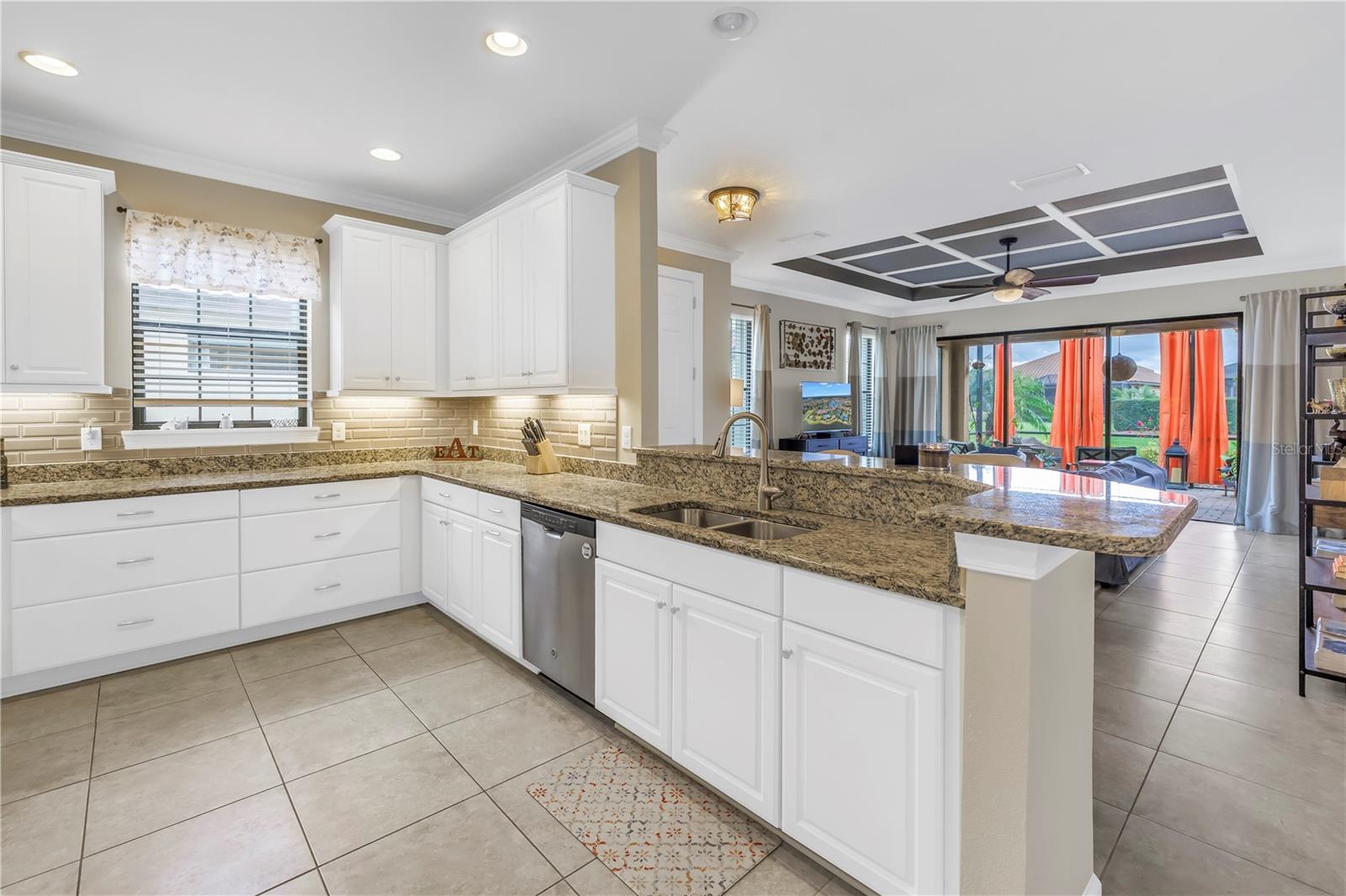 This stunning, meticulously maintained home offers effortless living in one of the area’s most sought-after resort-style communities. With serene conservation and water views, this property is a private retreat designed for both comfort and convenience. Exceptional curb appeal greets you with lush landscaping, a brick paver driveway and walkway, and a durable tile roof. Inside, the open-concept design is filled with natural light, featuring large ceramic tile flooring, elegant tray ceilings, 8’ interior doors, and ceiling fans throughout. The gourmet kitchen is a showstopper—42” cabinets with crown molding and under-cabinet lighting, granite countertops, and stainless steel appliances. The primary suite is a true retreat with a charming bay window sitting area, a spacious walk-in closet with custom closet systems, and an ensuite bath with dual vanities, Corian countertops, and an upgraded walk-in shower. The secondary bedroom features an ensuite bath that also serves as a guest bath, offering added privacy and convenience. A versatile den/study can function as a third bedroom or home office. Step outside to your expanded screened lanai, beautifully finished with brick pavers—perfect for unwinding while enjoying the peaceful view. The permanently attached accordion storm shutters make storm prep effortless—just secure them in place in minutes for peace of mind. Plus, the extended 4’ garage offers additional storage or space for a larger vehicle. Other highlights include an indoor laundry room, adding to the home’s convenience and functionality. No HOA approval is required, and there are no ownership length restrictions before leasing, making this an excellent opportunity for both homeowners and investors. HOA fees cover lawn care, landscaping, cable, and internet, ensuring truly low-maintenance living. The community offers top-tier amenities, including walking trails, a resort-style pool and spa, a fitness center, fire pits, BBQ areas, a pool table, bocce ball, pickleball, and tennis courts. Conveniently located near I-75, with easy access to Tampa Bay, Bradenton, St. Pete Beaches, Anna Maria Island, shopping, and dining. Flood insurance is not required.