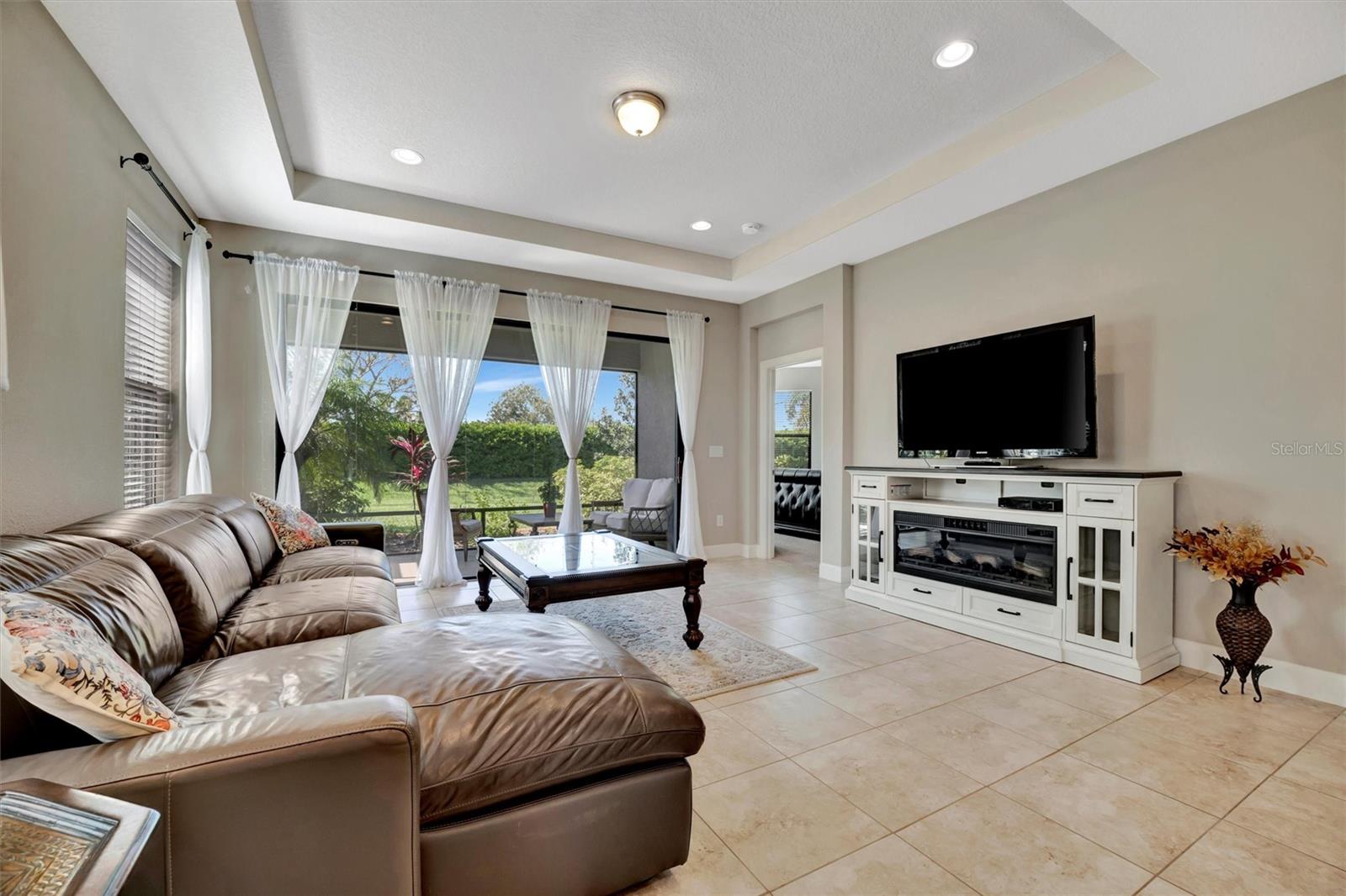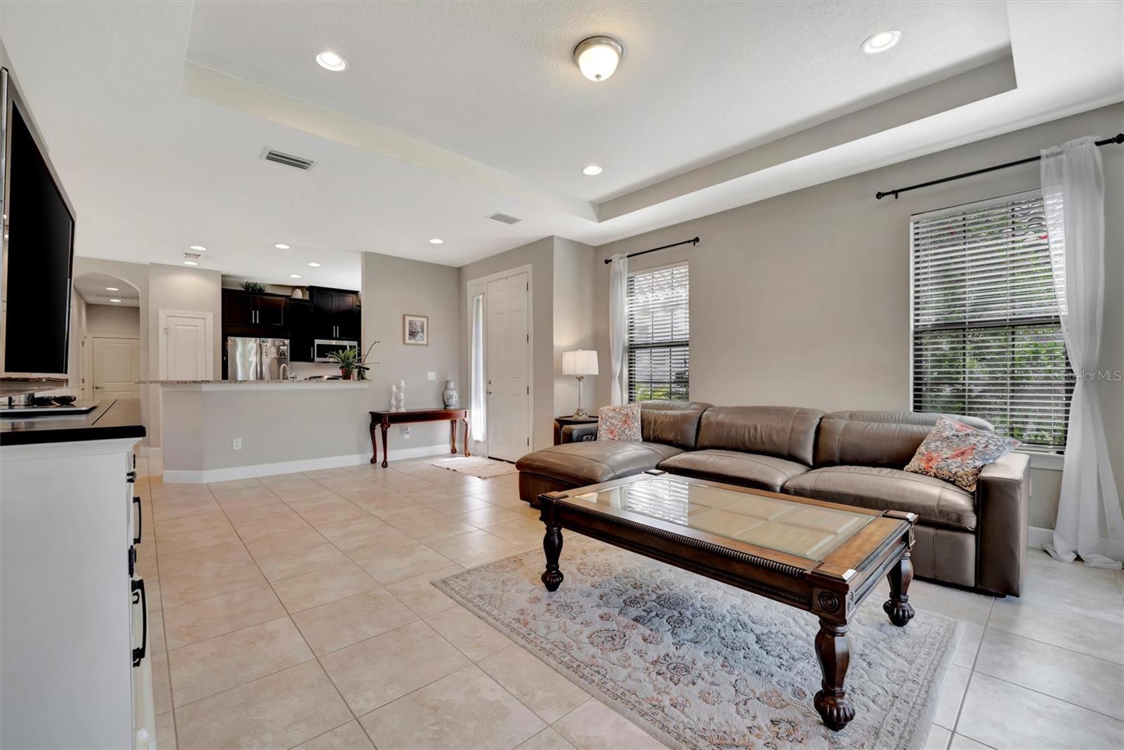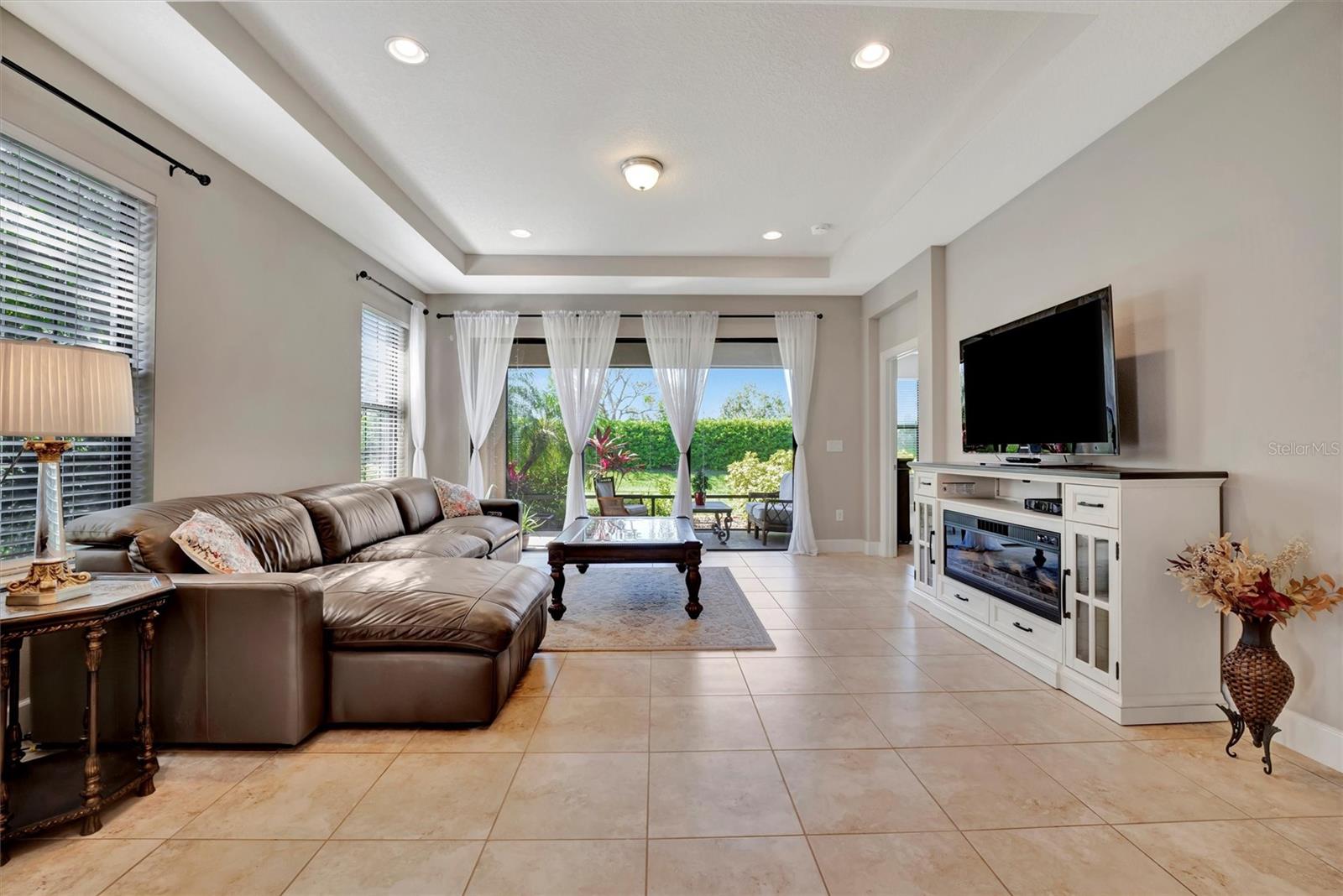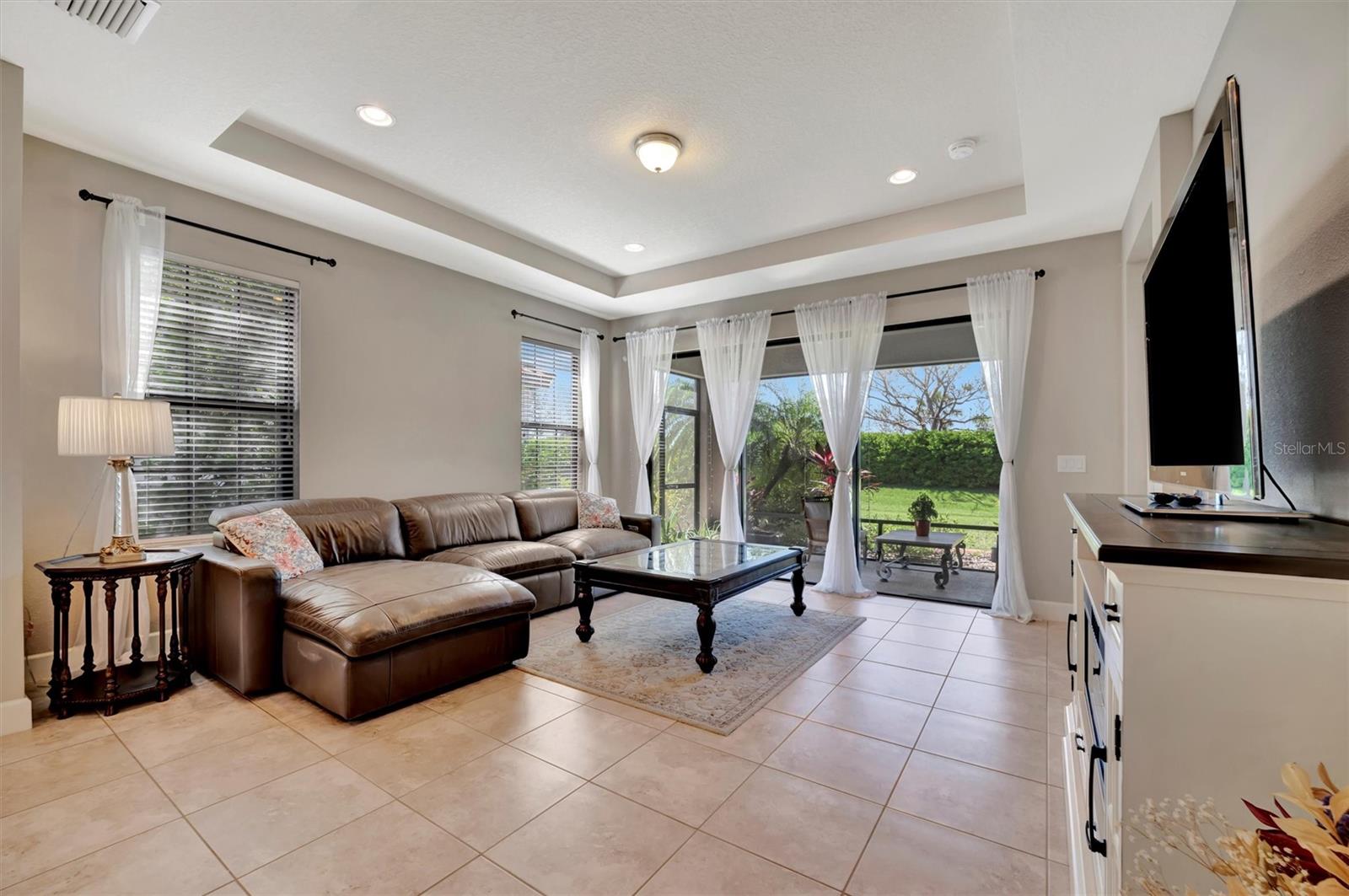 Great value in Esplanade at Artisan Lakes! This well-maintained residence is located on a quiet cul-de-sac. This charming home includes 2 bedrooms, a den (which could be converted to a third bedroom), and 2 bathrooms, with a comfortable, open-concept layout featuring tray ceilings and plenty of natural light. The spacious living area flows naturally into the kitchen, complete with granite countertops, breakfast bar seating, and upgraded cabinetry. There's also a separate dining area for casual or formal meals. The primary bedroom suite is bright and comfortable, featuring a large walk-in shower, dual granite vanities, a roomy walk-in closet, and pleasant views of the backyard. Guests will appreciate the privacy of the second bedroom, which includes its own bathroom and a walk-in closet. The home also includes a versatile den perfect for a home office or cozy relaxation space. Enjoy Florida weather from the oversized screened lanai, accessible through sliding glass doors that lead to the backyard—perfect for relaxation or entertaining. Additional conveniences include a laundry room with ample storage, tile floors in the main areas, and a two-car garage. Esplanade at Artisan Lakes offers excellent amenities including a heated community pool and spa, tennis and pickleball courts, bocce ball, basketball, soccer, and tennis tournaments, a community café, massages, spa events, fitness classes, and wellness activities. HOA fees conveniently cover lawn maintenance, cable, and internet. Artisan Lakes is ideally located with easy access to shopping, restaurants, healthcare facilities, Ellenton Outlets, and major highways, allowing quick travel to Sarasota, St. Petersburg, and Tampa, each within about a 30-minute drive. Don't miss this wonderful opportunity—schedule a showing today!