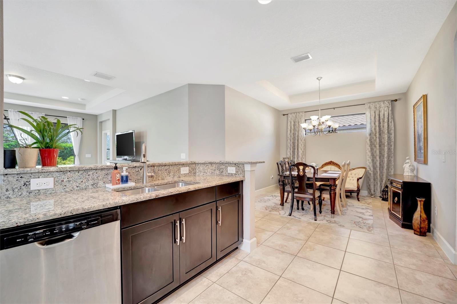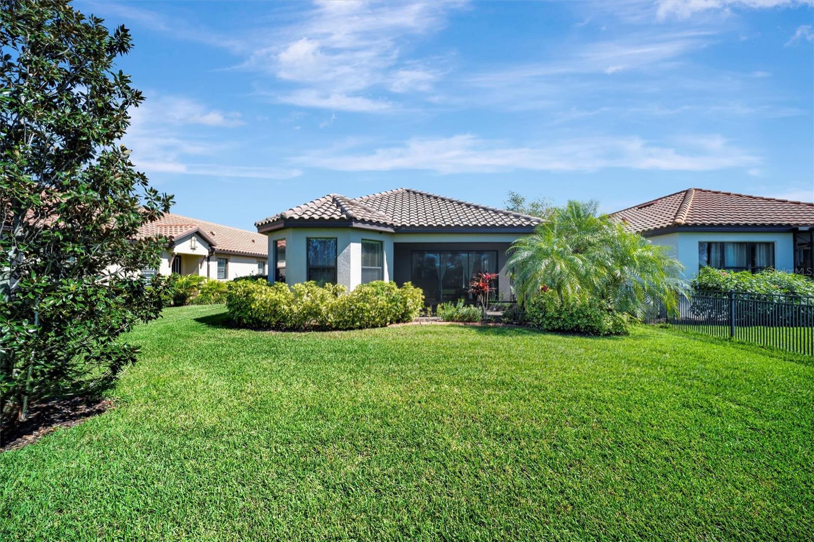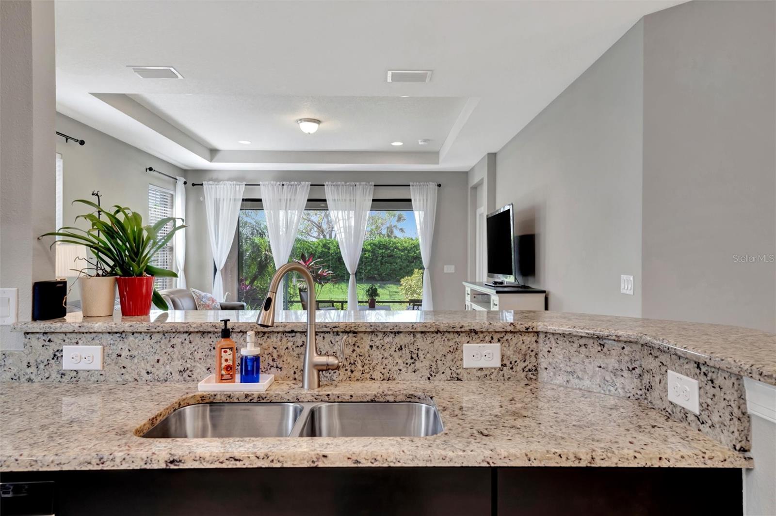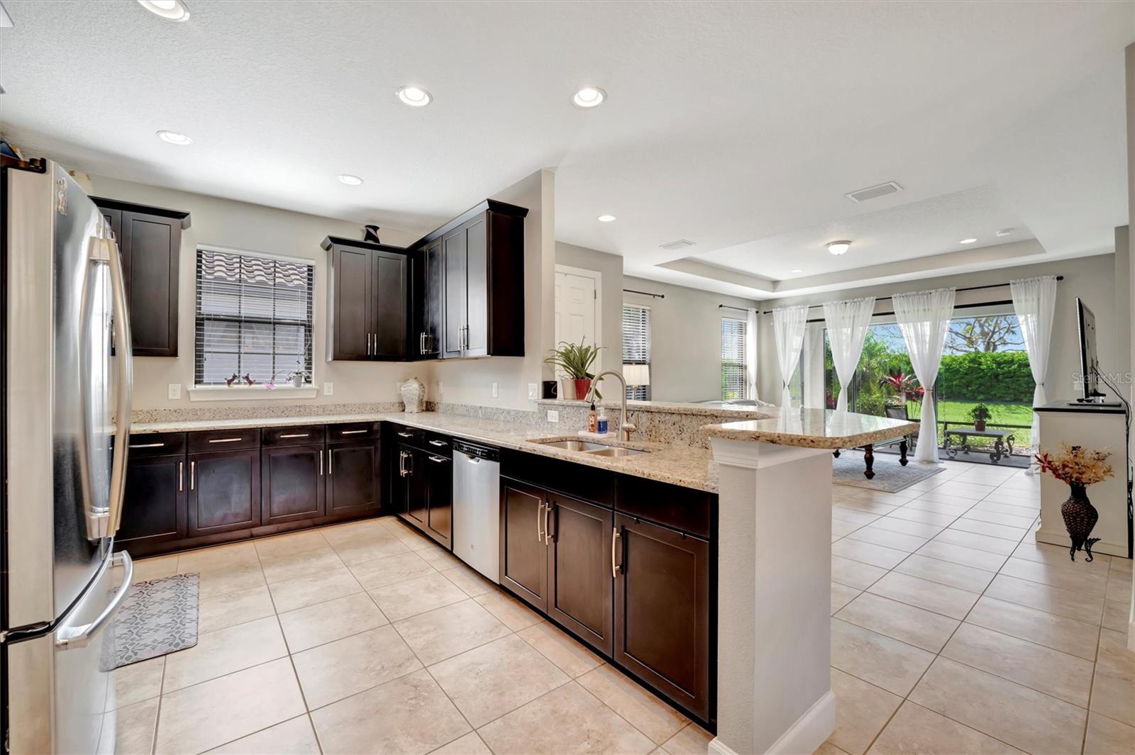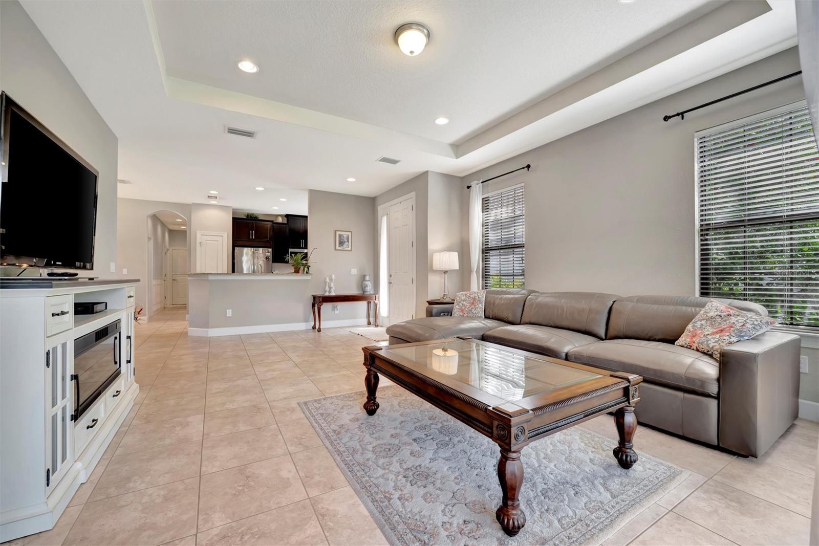 Great value in Esplanade at Artisan Lakes! This well-maintained residence is located on a quiet cul-de-sac. This charming home includes 2 bedrooms, a den (which could be converted to a third bedroom), and 2 bathrooms, with a comfortable, open-concept layout featuring tray ceilings and plenty of natural light. The spacious living area flows naturally into the kitchen, complete with granite countertops, breakfast bar seating, and upgraded cabinetry. There's also a separate dining area for casual or formal meals. The primary bedroom suite is bright and comfortable, featuring a large walk-in shower, dual granite vanities, a roomy walk-in closet, and pleasant views of the backyard. Guests will appreciate the privacy of the second bedroom, which includes its own bathroom and a walk-in closet. The home also includes a versatile den perfect for a home office or cozy relaxation space. Enjoy Florida weather from the oversized screened lanai, accessible through sliding glass doors that lead to the backyard—perfect for relaxation or entertaining. Additional conveniences include a laundry room with ample storage, tile floors in the main areas, and a two-car garage. Esplanade at Artisan Lakes offers excellent amenities including a heated community pool and spa, tennis and pickleball courts, bocce ball, basketball, soccer, and tennis tournaments, a community café, massages, spa events, fitness classes, and wellness activities. HOA fees conveniently cover lawn maintenance, cable, and internet. Artisan Lakes is ideally located with easy access to shopping, restaurants, healthcare facilities, Ellenton Outlets, and major highways, allowing quick travel to Sarasota, St. Petersburg, and Tampa, each within about a 30-minute drive. Don't miss this wonderful opportunity—schedule a showing today!