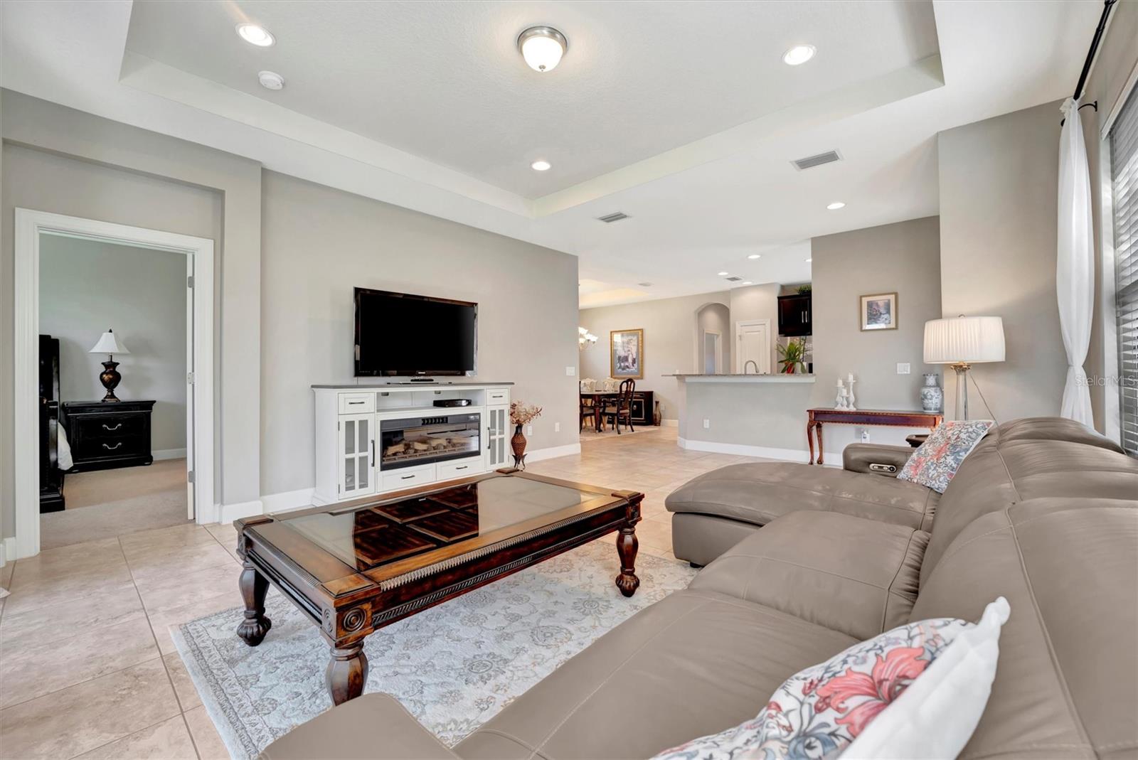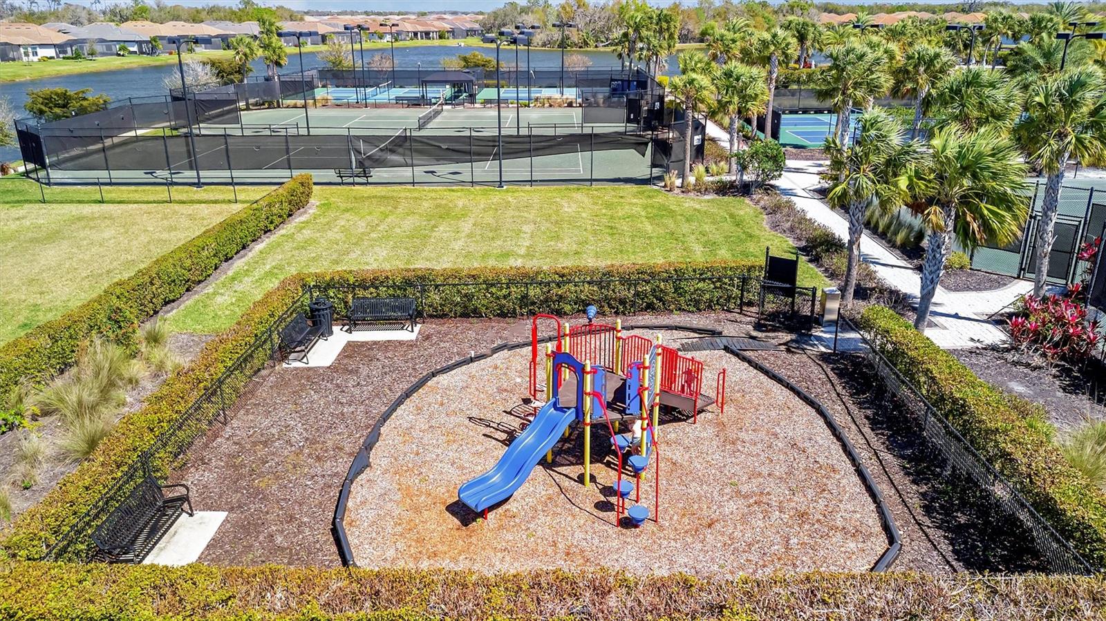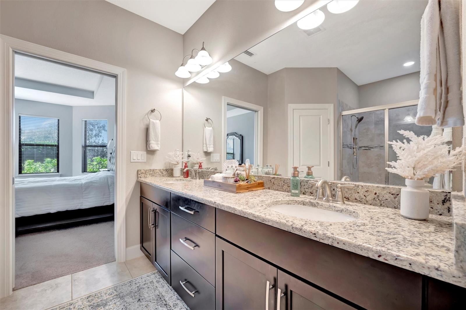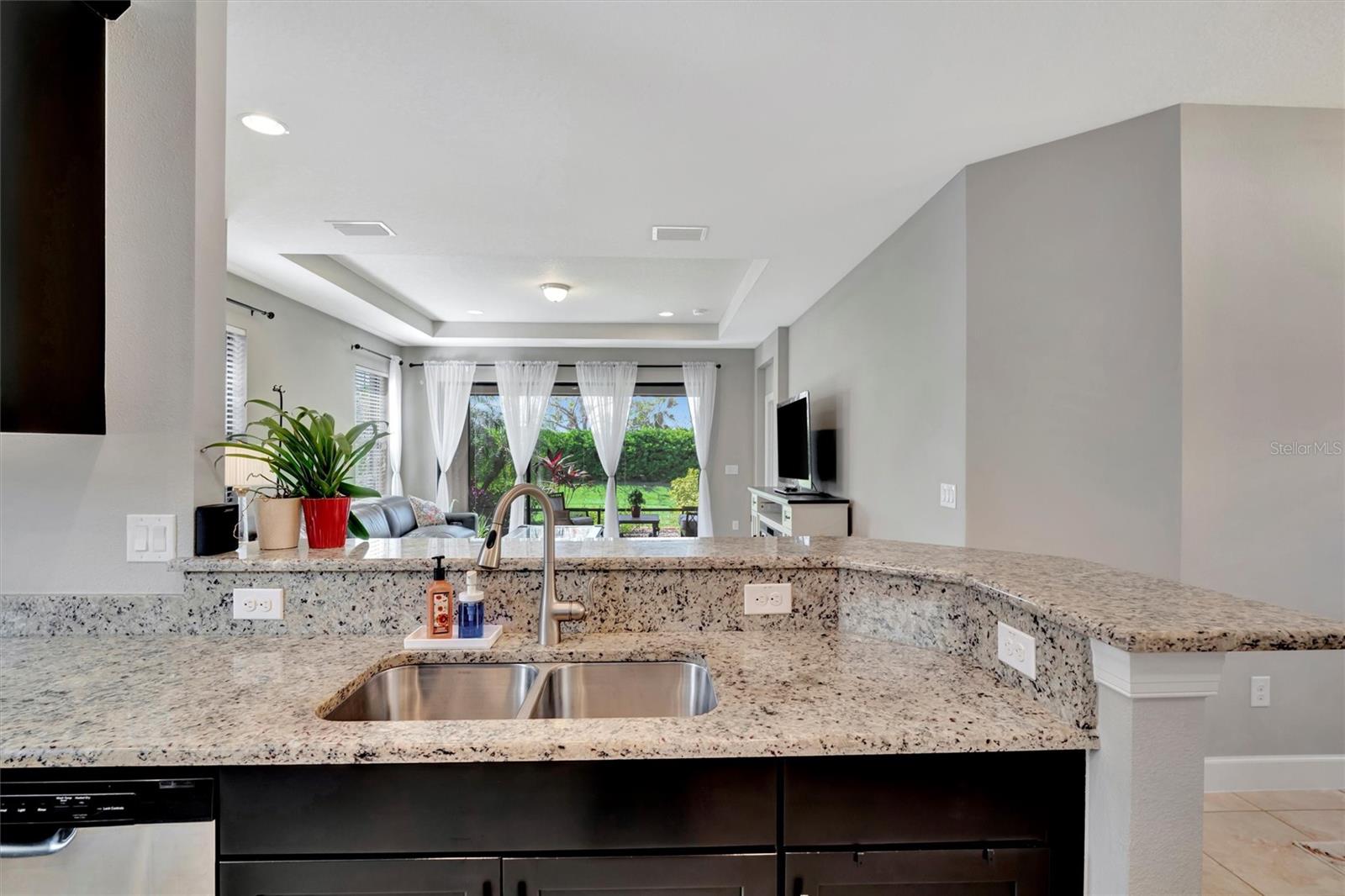 Great value in Esplanade at Artisan Lakes! This well-maintained residence is located on a quiet cul-de-sac. This charming home includes 2 bedrooms, a den (which could be converted to a third bedroom), and 2 bathrooms, with a comfortable, open-concept layout featuring tray ceilings and plenty of natural light. The spacious living area flows naturally into the kitchen, complete with granite countertops, breakfast bar seating, and upgraded cabinetry. There's also a separate dining area for casual or formal meals. The primary bedroom suite is bright and comfortable, featuring a large walk-in shower, dual granite vanities, a roomy walk-in closet, and pleasant views of the backyard. Guests will appreciate the privacy of the second bedroom, which includes its own bathroom and a walk-in closet. The home also includes a versatile den perfect for a home office or cozy relaxation space. Enjoy Florida weather from the oversized screened lanai, accessible through sliding glass doors that lead to the backyard—perfect for relaxation or entertaining. Additional conveniences include a laundry room with ample storage, tile floors in the main areas, and a two-car garage. Esplanade at Artisan Lakes offers excellent amenities including a heated community pool and spa, tennis and pickleball courts, bocce ball, basketball, soccer, and tennis tournaments, a community café, massages, spa events, fitness classes, and wellness activities. HOA fees conveniently cover lawn maintenance, cable, and internet. Artisan Lakes is ideally located with easy access to shopping, restaurants, healthcare facilities, Ellenton Outlets, and major highways, allowing quick travel to Sarasota, St. Petersburg, and Tampa, each within about a 30-minute drive. Don't miss this wonderful opportunity—schedule a showing today!