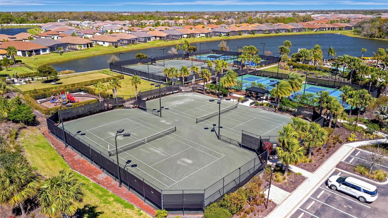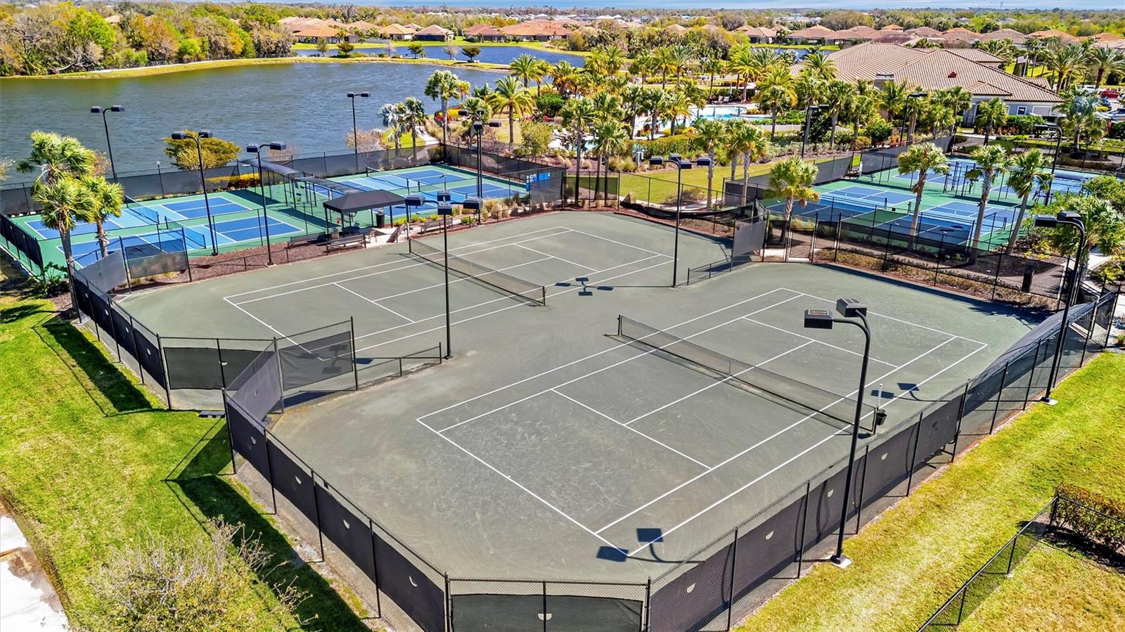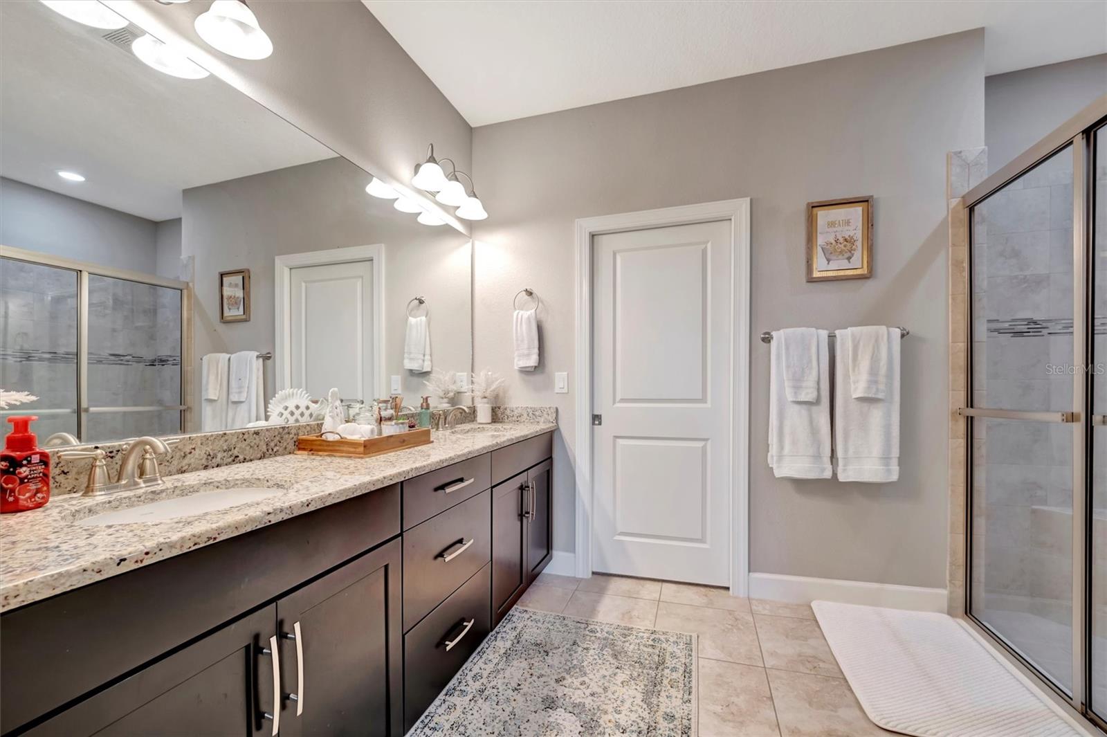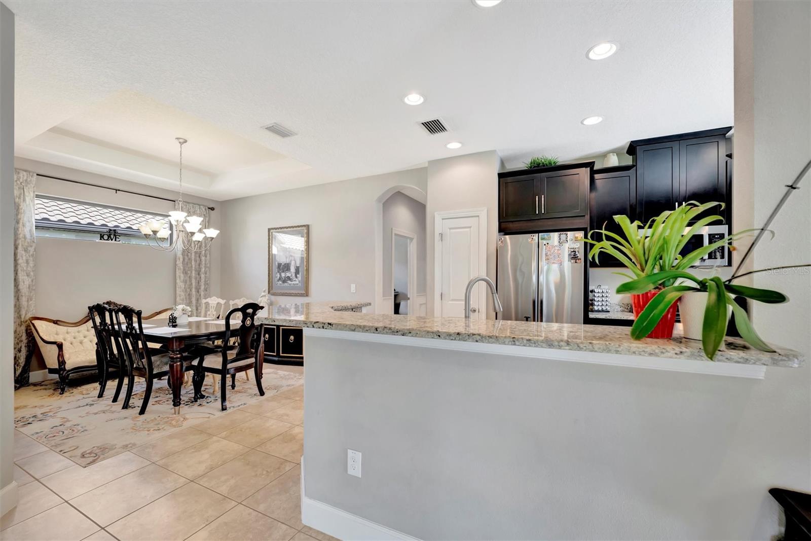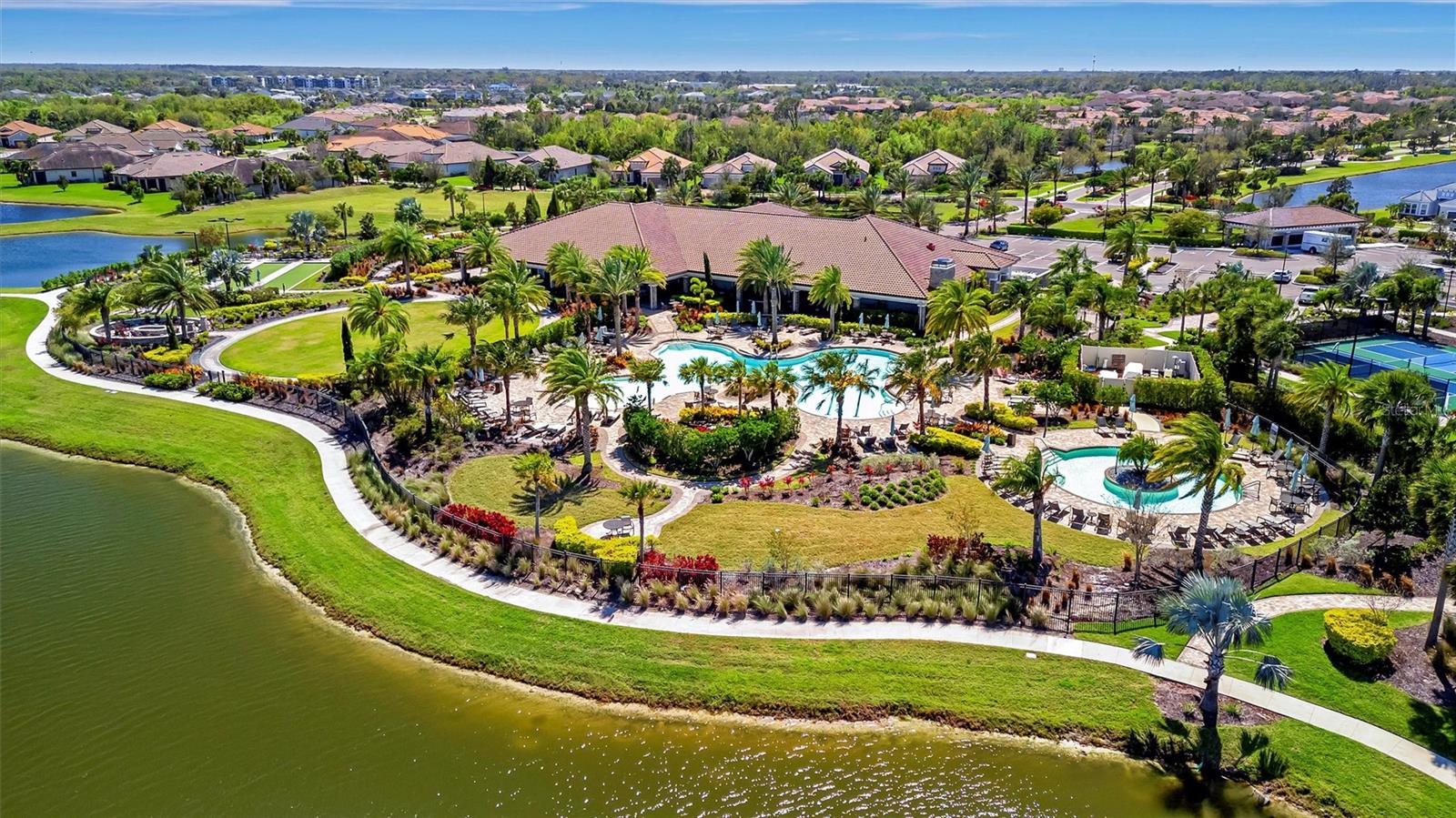 Great value in Esplanade at Artisan Lakes! This well-maintained residence is located on a quiet cul-de-sac. This charming home includes 2 bedrooms, a den (which could be converted to a third bedroom), and 2 bathrooms, with a comfortable, open-concept layout featuring tray ceilings and plenty of natural light. The spacious living area flows naturally into the kitchen, complete with granite countertops, breakfast bar seating, and upgraded cabinetry. There's also a separate dining area for casual or formal meals. The primary bedroom suite is bright and comfortable, featuring a large walk-in shower, dual granite vanities, a roomy walk-in closet, and pleasant views of the backyard. Guests will appreciate the privacy of the second bedroom, which includes its own bathroom and a walk-in closet. The home also includes a versatile den perfect for a home office or cozy relaxation space. Enjoy Florida weather from the oversized screened lanai, accessible through sliding glass doors that lead to the backyard—perfect for relaxation or entertaining. Additional conveniences include a laundry room with ample storage, tile floors in the main areas, and a two-car garage. Esplanade at Artisan Lakes offers excellent amenities including a heated community pool and spa, tennis and pickleball courts, bocce ball, basketball, soccer, and tennis tournaments, a community café, massages, spa events, fitness classes, and wellness activities. HOA fees conveniently cover lawn maintenance, cable, and internet. Artisan Lakes is ideally located with easy access to shopping, restaurants, healthcare facilities, Ellenton Outlets, and major highways, allowing quick travel to Sarasota, St. Petersburg, and Tampa, each within about a 30-minute drive. Don't miss this wonderful opportunity—schedule a showing today!