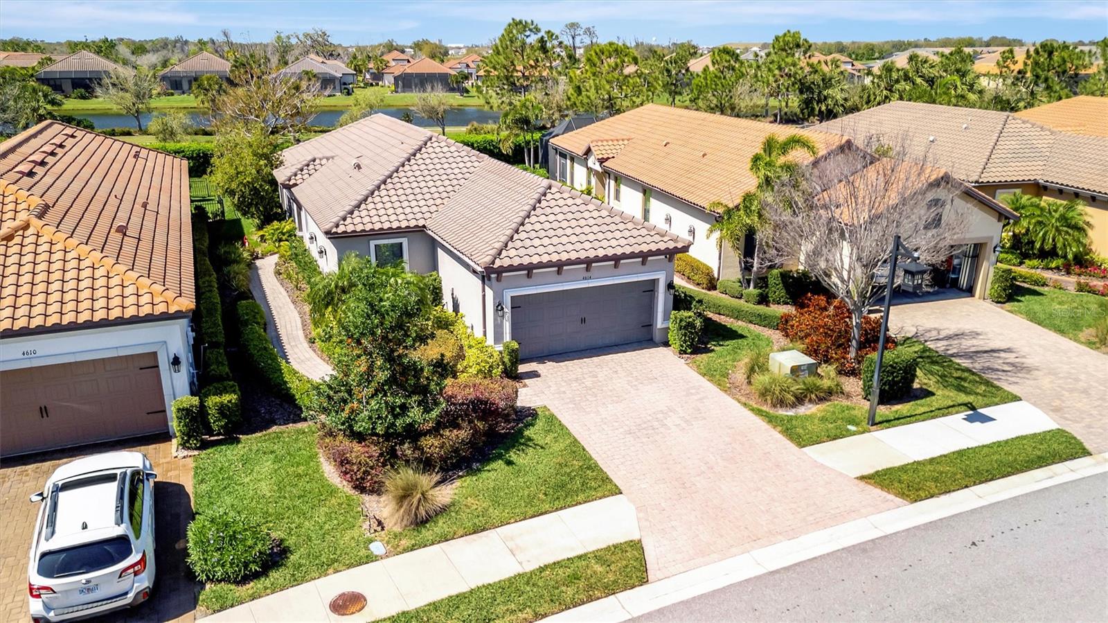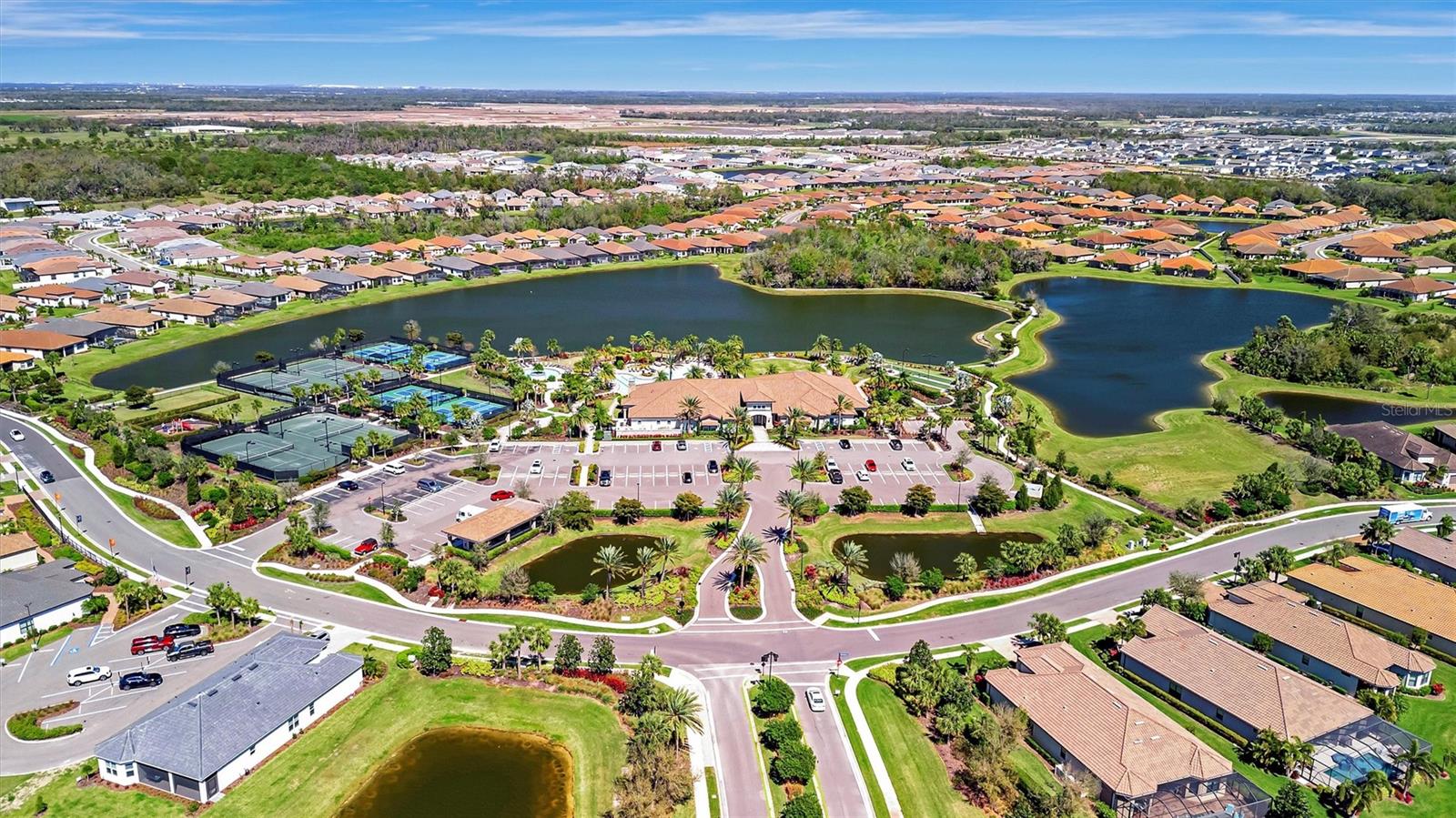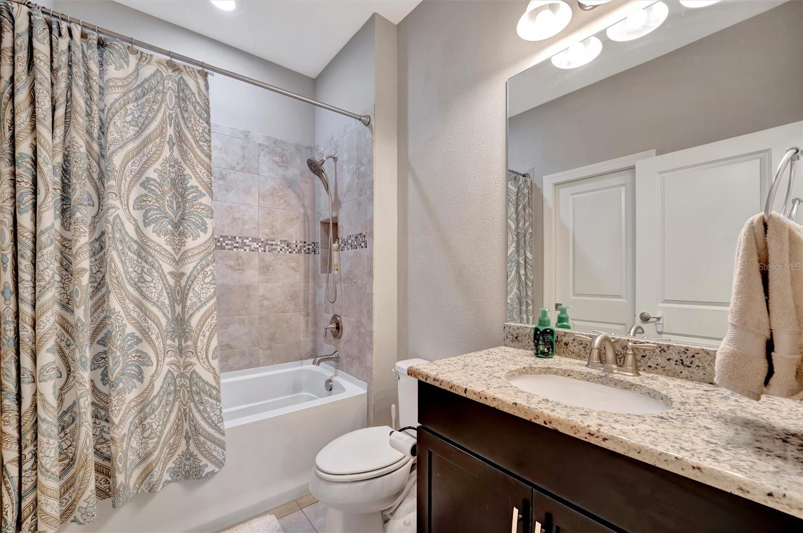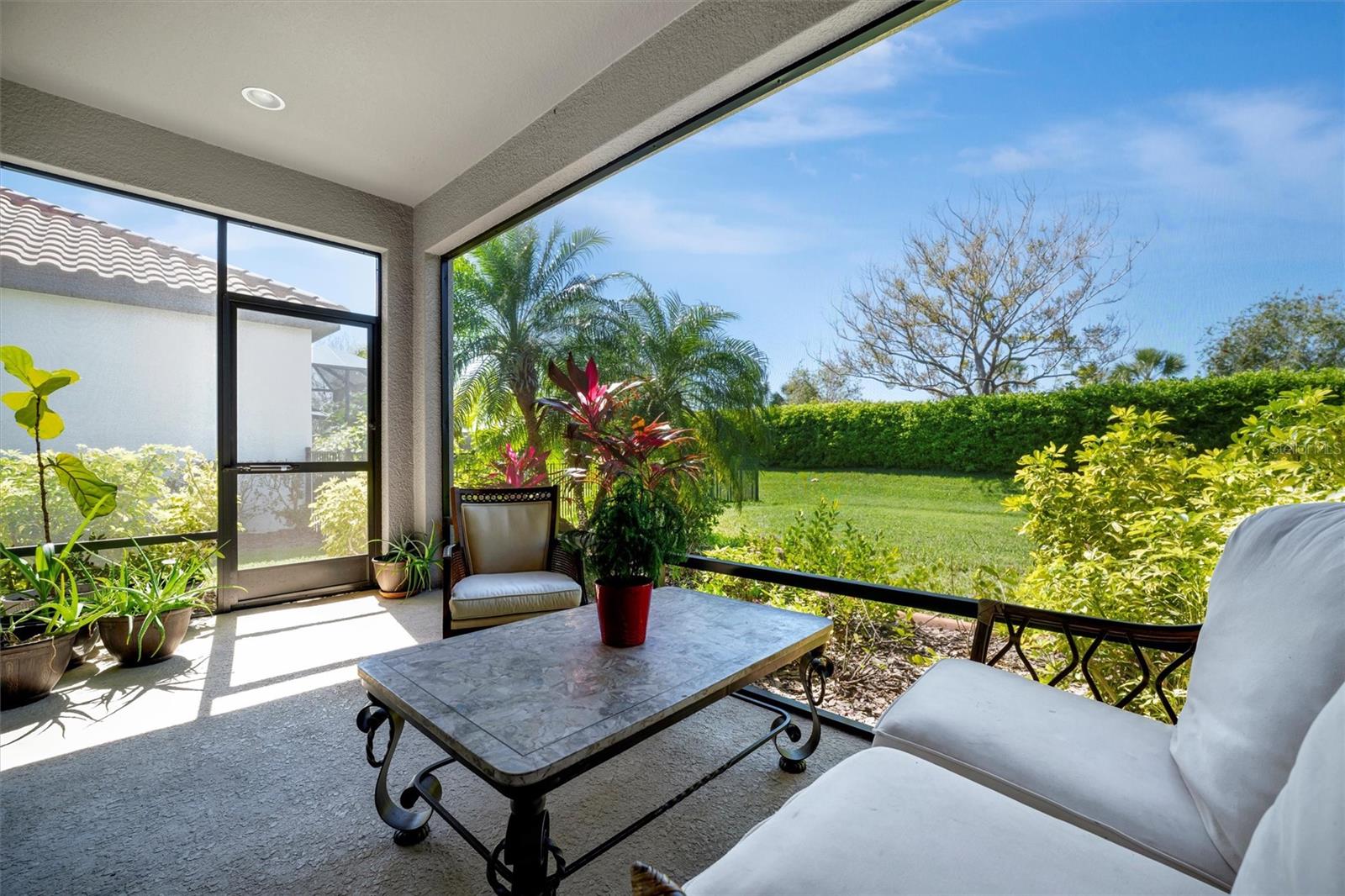 Great value in Esplanade at Artisan Lakes! This well-maintained residence is located on a quiet cul-de-sac. This charming home includes 2 bedrooms, a den (which could be converted to a third bedroom), and 2 bathrooms, with a comfortable, open-concept layout featuring tray ceilings and plenty of natural light. The spacious living area flows naturally into the kitchen, complete with granite countertops, breakfast bar seating, and upgraded cabinetry. There's also a separate dining area for casual or formal meals. The primary bedroom suite is bright and comfortable, featuring a large walk-in shower, dual granite vanities, a roomy walk-in closet, and pleasant views of the backyard. Guests will appreciate the privacy of the second bedroom, which includes its own bathroom and a walk-in closet. The home also includes a versatile den perfect for a home office or cozy relaxation space. Enjoy Florida weather from the oversized screened lanai, accessible through sliding glass doors that lead to the backyard—perfect for relaxation or entertaining. Additional conveniences include a laundry room with ample storage, tile floors in the main areas, and a two-car garage. Esplanade at Artisan Lakes offers excellent amenities including a heated community pool and spa, tennis and pickleball courts, bocce ball, basketball, soccer, and tennis tournaments, a community café, massages, spa events, fitness classes, and wellness activities. HOA fees conveniently cover lawn maintenance, cable, and internet. Artisan Lakes is ideally located with easy access to shopping, restaurants, healthcare facilities, Ellenton Outlets, and major highways, allowing quick travel to Sarasota, St. Petersburg, and Tampa, each within about a 30-minute drive. Don't miss this wonderful opportunity—schedule a showing today!