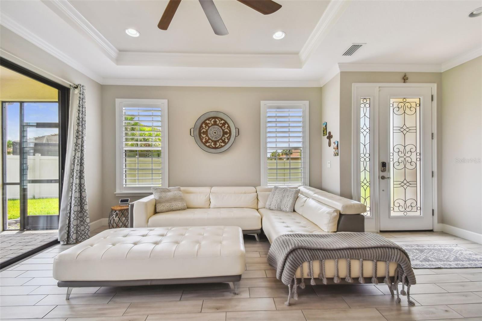 Under contract-accepting backup offers. Your perfect home is located in the highly desirable gated neighborhood of Esplanade in the master planned community of Artisan Lakes. This nearly new home is move in ready with a fantastic floor plan and great flow. Bright and spacious, this 2 bedroom, 2.5 bath, 1,582 sq. ft. home with 2 car garage, was built for family fun and entertaining. Upon entering this beautiful home, your eyes are drawn to the high tray ceilings with crown molding, 8' ft doors, and an abundance of natural light that accentuates the great room, dining room, and kitchen. The Chef's kitchen is the nucleus of this beautiful home. It features high end stainless steel appliances, breakfast bar, 42" grey shaker cabinets with crown molding, high end quartz countertops, backsplash, and closet pantry. The dining room perfectly complements the well designed kitchen. There is a large study with 8' pocket doors, perfectly suited for a home office. The Master Retreat is spacious with high ceilings, plenty of natural light, and will comfortably fit a king-sized bedroom set. The Master Retreat features a large walk in closet and en-suite featuring quartz countertops, dual vanities, walk-in shower, and private water closet. The secondary bedroom offers generous accommodations. It features an en-suite with single vanity, quartz countertop, and a tub/shower combo. There's a very functional laundry room with laundry tub and full cabines. A large screened lanai on this desirable end unit provides more privacy than you would ever expect. This home comes complete with a tile roof, tankless water heater and Brick Paver Driveway. LAWN MAINTENANCE, CABLE & INTERNET ARE INCLUDED in the HOA Fee. Esplanade of Artisan Lakes has some of the finest resort-style amenities available in the Tampa Bay area. Residents have access to an array of active and leisure activities: heated resort-style pool, full fitness center with large group fitness room, spa treatments rooms, multi-purpose room, café kitchen, tennis, pickle ball, pet park, playground, walking paths, BBQ picnic area, and a fire pit. Esplanade at Artisan Lakes has an established lifestyle/events program directed by a FULL TIME, ON SITE LIFESTYLE MANAGER. Esplanade at Artisan Lakes is conveniently located close to schools, restaurants, shopping, recreation, and entertainment. It is minutes to I-75, I-275, US Hwy 301 & US Hwy 41 and is close to Bradenton/Sarasota/St. Petersburg/Gulf Beaches. Downtown Tampa, USF, Port Tampa Bay, Macdill AFB are all a short drive away. Visit the Esplanade Artisan Lakes website to see more amenities of this amazing community.