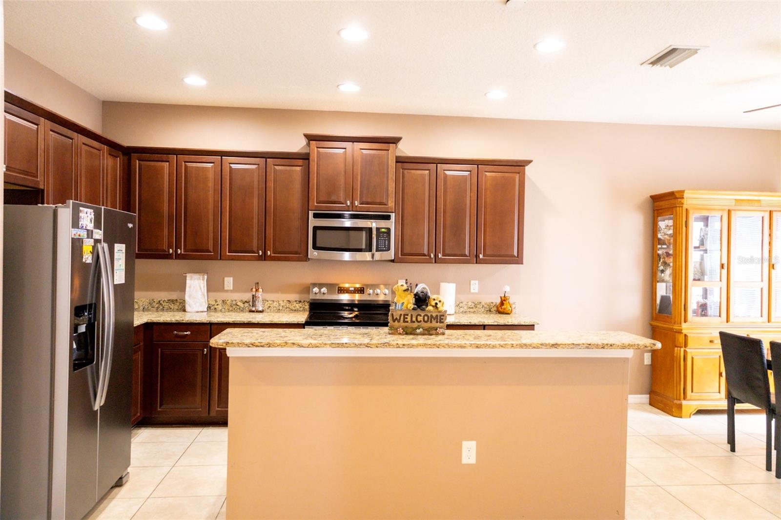 Discover this beautifully updated single-story retreat, blending style, comfort, and peace of mind with major recent improvements. This home boasts a new 2025 shingle roof, a freshly painted exterior, new PVC fencing enclosing the entire yard — perfect for privacy and outdoor living. Inside, comfort continues with newer laminate flooring in the bedrooms and an air conditioning system that was replaced in 2021, which offers efficiency and reliability. Step into the heart of the home — a gourmet kitchen designed to inspire. Granite countertops, rich wood cabinetry, and stainless steel appliances pair elegance with functionality, while the open-concept design ensures seamless flow for entertaining or quiet evenings at home. The home’s main bedroom features 2 walk-in closets which would accommodate any fashionista’s wardrobe. Practical perks include a spacious two-car garage, included washer and dryer, and a warm neighborhood atmosphere with no CDD fees. Whether it’s weekend gatherings, family time, or simply unwinding in your private oasis, this home is move-in ready and waiting for you. Don’t miss out — schedule your private showing today and make this beautifully upgraded gem yours!