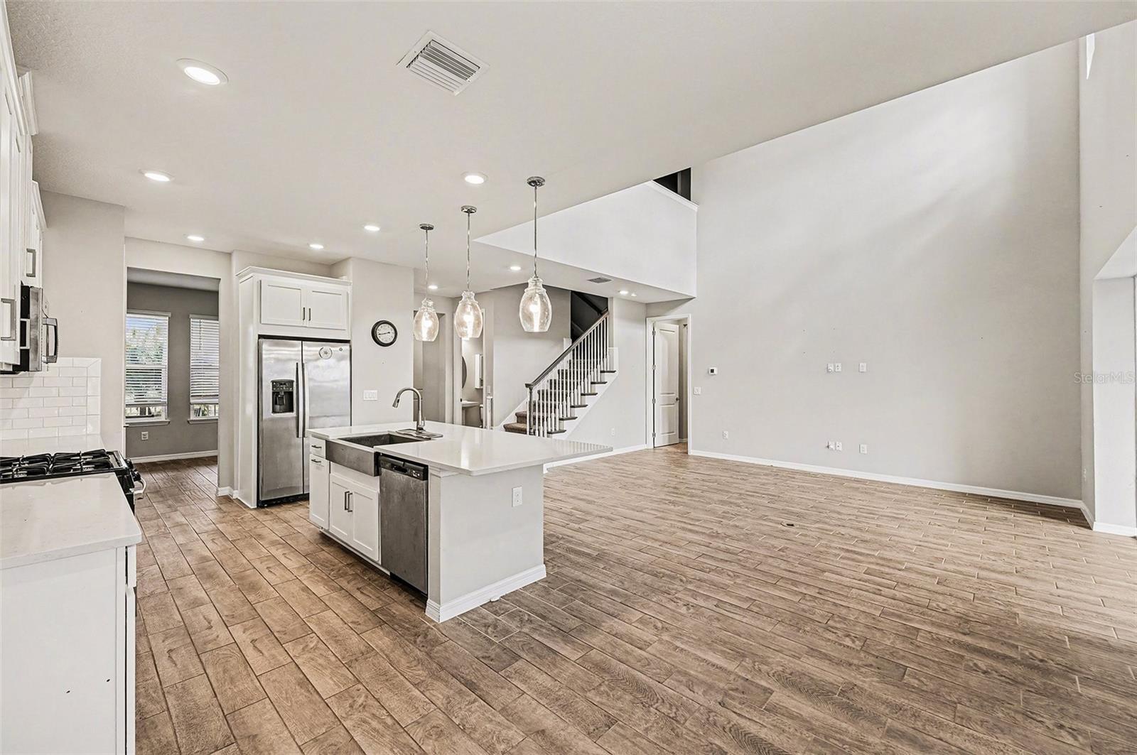 One or more photo(s) has been virtually staged. This nearly new home in Eave’s Bend offers 4 bedrooms, 3.5 baths, plus a loft and flex room that can become a 5th bedroom. The first-floor primary suite adds convenience, and the upgraded garage features heavy-duty flooring, an in-wall vacuum, and a power cord mount. Enjoy a fenced backyard with pond views, a screened lanai, and an extended patio with a built-in grill, sink, and fridge.A modern, spacious home with fantastic views .