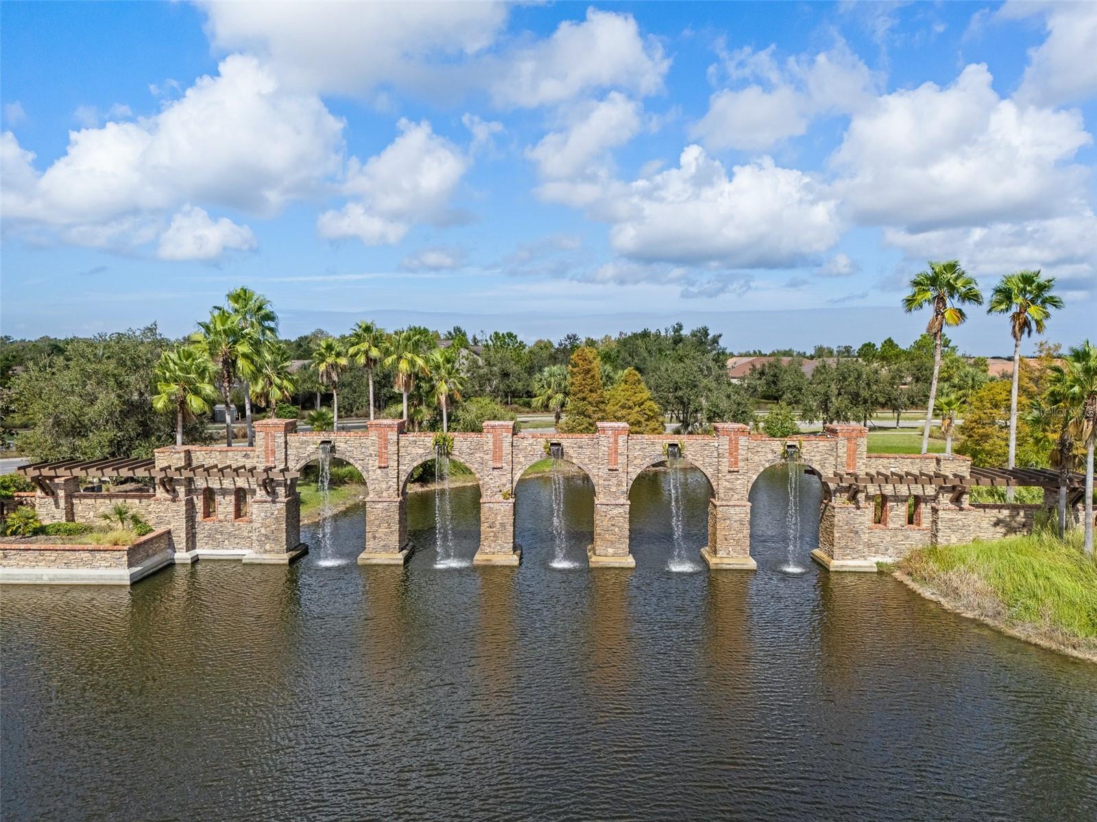 Discover the perfect blend of sophistication and comfort in this stunning 2-bedroom, 2.5-bathroom villa located within the sought-after, gated community of Esplanade at Artisan Lakes. Step through the foyer to discover a bright, open floorplan anchored by handsome wood-like ceramic tile flooring that flows seamlessly throughout the main living areas. Architectural elegance is on full display with volume tray ceilings gracing the living room, dining room, and private office. The dedicated office space offers space saving pocket doors for privacy and a convenient adjacent half bathroom, perfect for working from home or hosting guests. The inspired kitchen features stainless steel appliances, crisp white quartz countertops, grey shaker-style cabinetry, and a striking herringbone tile backsplash. Pendant lighting illuminates the large sink and bar seating area, making this the ideal spot for entertaining. Retreat to the private primary suite, situated away from the guest quarters for optimal peace. This sanctuary features its own tray ceiling and ensuite bathroom complete with a frameless glass walk-in shower, a separate water closet, and a dual vanity featuring a lowered tier makeup counter. Outdoor living is effortless with the screened in and covered lanai. Unwind while taking in the serene pond views from the rear of the home or step out to the extended uncovered section for outdoor grilling under the Florida sun. Additional features include a tile roof, tankless water heater, kitchen sink R.O. system, and an attached 2-car garage. Living in Esplanade means enjoying a resort-style lifestyle within the larger Artisan Lakes master-planned community. The Esplanade subdivision is a gated portion of the community where residents benefit from a wealth of world-class amenities centered around a lavish clubhouse, which features social spaces and a dedicated full-time lifestyle manager who organizes community events and activities. Key amenities designed for an active and social life include a resort-style pool with a spa and an additional resistance pool, a fully equipped fitness center, an aerobics/dance studio, and a day spa offering massage treatment rooms, multiple courts for tennis, bocce ball, and pickleball, a clubhouse with gathering space, a catering kitchen, a fire pit area for evening socializing, miles of scenic walking and biking trails, and a dedicated dog park for pets. All this, with easy access to Interstate 75 for drives to Tampa, St. Petersburg, Sarasota, as well as the finest beaches the Gulf side has to offer.