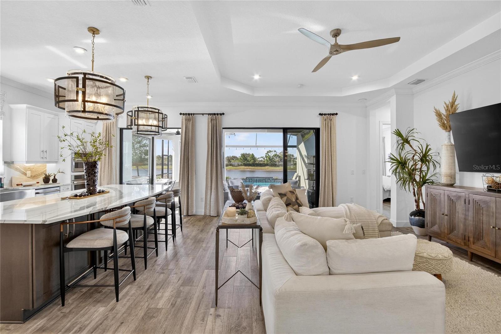 Tell your honey to stop the car NOW!!! This is "The One" and seeing is believing!! Welcome home to The Lazio floor plan by Taylor Morrison, located in the master planned community - Esplanade at Artisan Lakes in Palmetto. Situated lakeside, all within 2,400 sq ft, this home has everything to offer. Upon entering, the wide foyer greets you with a view of the open floor plan. Starring 4 bedrooms, 3 full bathrooms, a den/office, gourmet kitchen, spacious great room, separate dining room, and oversized 2-car garage, your new home has it all. The primary bedroom features a tray ceiling, plank tile floors, and bay windows with space for a seating area. The primary bathroom has a super-shower, gorgeous quartz countertops, and a customized closet. Next up, the 3 spacious secondary bedrooms with one having its own full bathroom that would be great as an in-law or guest suite. For the worker from home, the office/den offers an abundance of natural light and space. Co-starring is the gourmet kitchen designed with quartz countertops, 42" white cabinets with crown molding, elegant backsplash, 36" five burner gas cooktop, stacked microwave/oven, stainless steel appliances, and walk-in pantry. The walk-in laundry room has a counter for folding clothes, tons of cabinets to store laundry and cleaning supplies, and a sink for hand washing delicates. The finishing credits include crown molding in the main living spaces, 8-foot doors, 10-foot ceilings adding to the luxurious feel of this home. Last but not least and definitely the true star of this home - the relaxing backyard space. Take in the sunrise or the sunset while soaking in your sparkling pool/spa while overlooking the lake without any rear neighbors in sight. Family gatherings will be extra special with space for everyone to hang out. The panoramic view screened lanai offers extra comfort by keeping out no-see-ums and mosquitoes. Don't miss out on this one of a kind Lazio. Esplanade at Artisan Lakes is a thoughtfully designed, master-planned community offering amazing amenities to include a resort-style pool, clubhouse, fitness center, playground, dog park, pickleball courts, shuffleboard, scenic lakes, and miles of walking trails. Located within close proximity to I-75, HWY-41, and US-301 - traveling to MacDill AFB, Florida's best beaches, shopping, and eateries will be a breeze. Schedule your tour today!