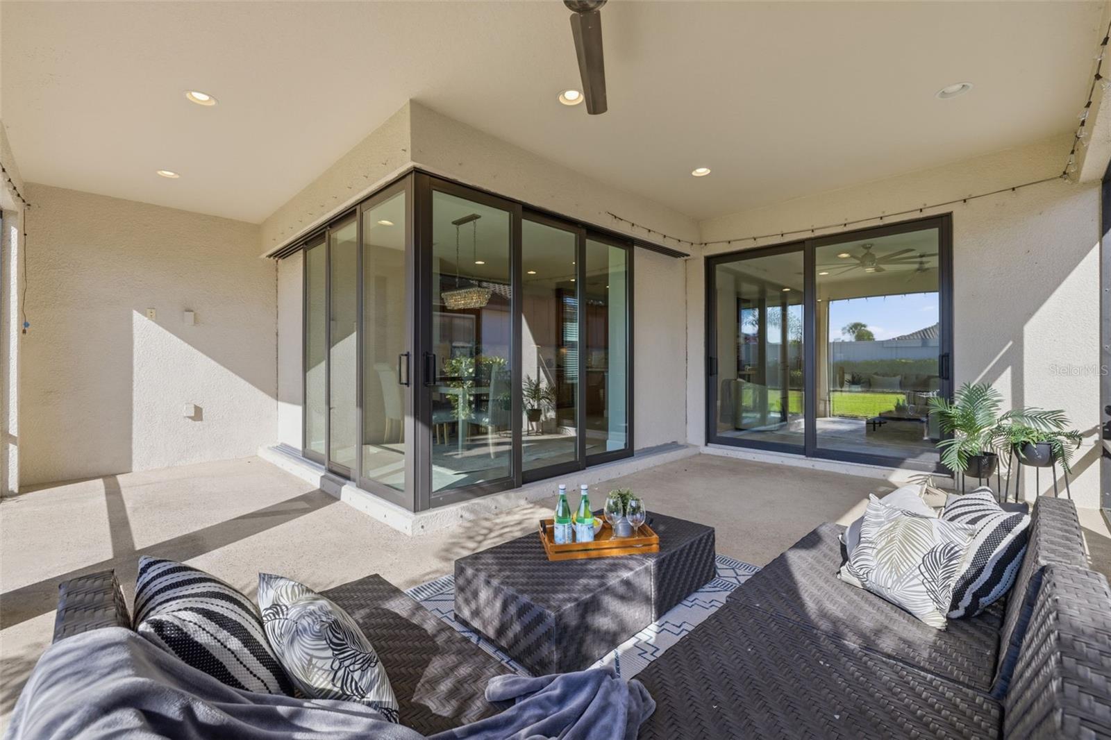 Hurricane Shutters, Lighting, Misting System, Private Yard, Rain Gutters, Sidewalk, Sliding Doors