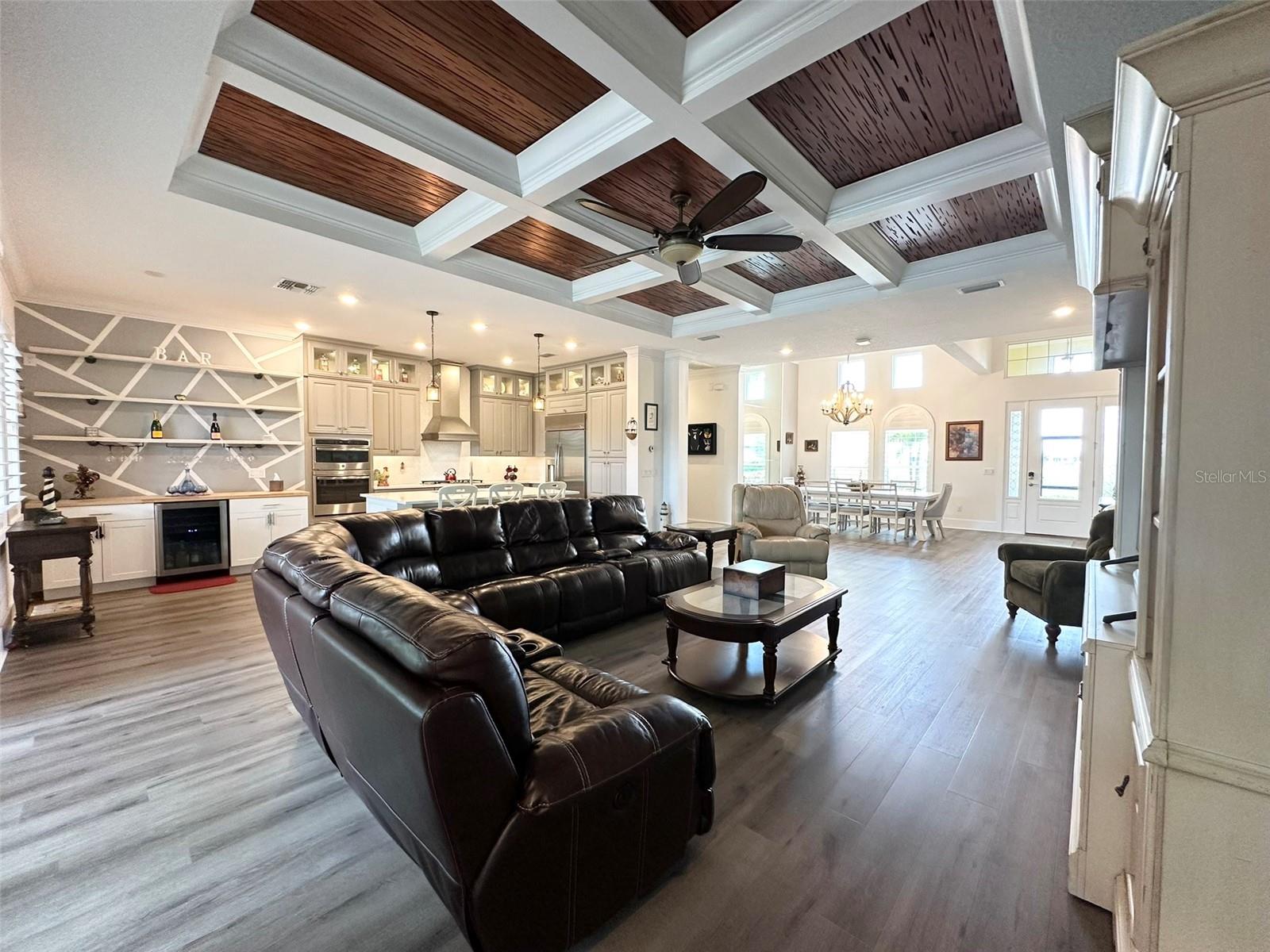 Welcome to this COASTAL DREAM HOME with DEEDED BOAT SLIP & LIFT located in the highly sought-after gated WATERFRONT BOATING COMMUNITY of Sanctuary Cove, perfectly positioned along the Manatee River in a NON-FLOOD ZONE with direct access to the Gulf of America. Offering the most sought-after floor plan (BORETTO) 4 bedrooms, and 3 bathrooms, this smart home combines luxury finishes, thoughtful design, and true Florida waterfront living. From the moment you arrive, you’ll notice the elevated curb appeal with a tile roof, paver driveway, 8-foot glass front entry door, and screened front entry that invites in the coastal breeze, especially with no neighbors across the street, enhancing privacy and openness. Inside, the spacious open-concept layout features luxury vinyl plank flooring, tall ceilings, crown molding, plantation shutters, and premium paint throughout. Architectural details include a coffered living room ceiling, tray ceilings, and a stunning Florida-style pecky cypress wood accent feature that adds warmth and character. The chef’s kitchen is designed for entertaining with GE Profile stainless steel appliances, including a natural gas cooktop, double wall ovens, brand-new dishwasher, built-in refrigerator, quartz countertops, two-tone cabinetry (coastal gray and white island), upper cabinet lighting, and a custom beverage station with dual-zone wine storage. This desirable 3 -way split floor plan offers privacy for all. The primary suite is a luxurious retreat featuring a pecky cypress foyer, dual vanities, soaking Jacuzzi tub with jets, oversized walk-in shower with glass doors, marble basketweave flooring, and a spacious walk-in closet with custom California Closet systems. Three additional bedrooms are thoughtfully positioned, including a guest suite with its own bath and a flexible pool bath layout perfect for visitors and entertaining. The outdoor living space is truly exceptional. Step through the pocket sliding doors into your private screened lanai featuring a heated pool, oversized spa with fountain feature, and a ELEVATED outdoor kitchen with fantasy brown leather granite countertops. This space is ideal for year-round entertaining and Florida sunshine living. Additional upgrades include a spacious 3-car garage with custom built-in cabinetry, Samsung washer and dryer in a large laundry room with quartz folding counters, built-in storage, and a utility sink. Smart home features include WiFi-enabled lighting, outlets, switches, a Honeywell smart thermostat, built-in security system, and a smart video doorbell. This home also includes DEEDED BOAT SLIP #29 in the community marina, complete with water and electric, and a boat lift accommodating vessels up to 31 feet, offering direct deepwater access to the Gulf of America. Sanctuary Cove delivers an unmatched resort lifestyle with amenities including a beautiful clubhouse, heated pool and spa, fitness center, marina, beach and nature preserve, and vibrant community events such as holiday golf cart parades and seasonal gatherings. Lawn maintenance, trimming, and irrigation services are included for easy living. Conveniently located just minutes from I-75 and I-275, this home provides easy access to St. Petersburg, Tampa, Bradenton, and Sarasota, as well as nearby shopping and dining, including the FAMOUS Detwiler’s Market. This is more than a home. It’s a WATERFRONT LIFESTYLE. Luxury, location, and boating convenience all come together in one extraordinary property.
