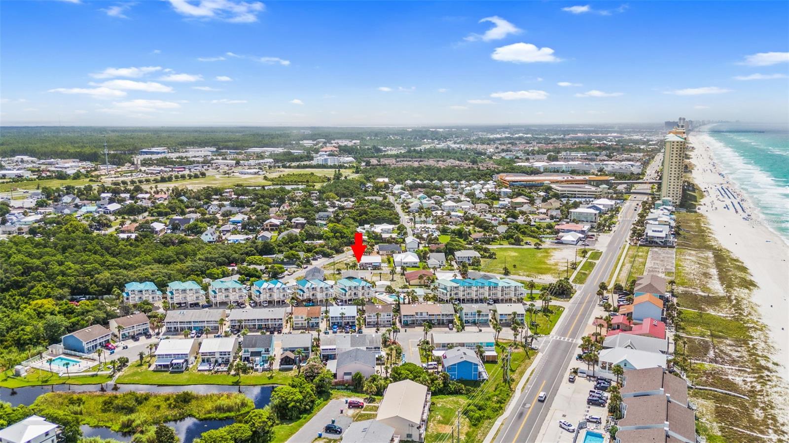 Contact your local agent for a showing today! This stunning corner unit, townhome-style condo near the world’s most beautiful beaches is now available at a reduced price of $650K, making it an unbeatable deal you won’t want to pass up. With its prime location, just steps from beach access and offering low HOA fees, this property is ideal for those looking for a coastal retreat or a versatile investment opportunity. Freshly painted in bright, neutral tones, this condo is flooded with natural light and boasts Gulf views from the 2nd and 3rd levels. Enjoy multiple patios and decks overlooking the pool and ocean, perfect for relaxing in the coastal breeze while watching your family enjoy the pool. First Floor Efficiency with BRAND NEW Luxury Vinyl Plank Flooring adds exceptional rental flexibility, allowing you to maximize income potential by turning this property into two separate units. You can rent the efficiency on its own or combine it with the main two-story living space for a spacious 3-bedroom setup. Stay in one and rent the other for added convenience and privacy. Unbeatable Location – Live the beach life with a short walk across the street to soak up the sun, sand, and surf. The soothing sounds of the ocean can be heard from your balcony, enhancing your experience in this coastal paradise. Within 20 minutes, you’ll find everything you need for fun and relaxation. Shop, dine, and enjoy entertainment at Pier Park, swim with dolphins at Gulf World, or rent a kayak from Coldwater Excursions to explore the beautiful waters. Golf lovers will appreciate having three golf courses within 7 miles of the home. Whether you’re looking for a beautiful beachside retreat or a profitable investment property, this condo has it all. Contact your local agent for a showing today—don’t miss out on this opportunity to own a piece of paradise in Panama City Beach!