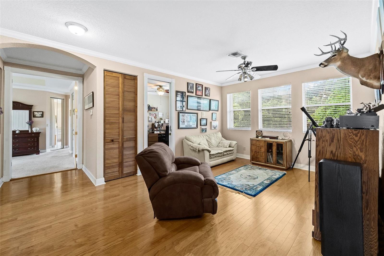 Situated on over an acre with NO HOA, Welcome HOME to this Beautiful and Unique property located in Parkland’s desirable Pinetree Estates – an equestrian friendly community. This is a rare opportunity with the home having only ONE owner that has meticulously maintained every single detail. Arriving at the property, you are greeted with an oversized driveway, a professionally landscaped front yard, and a gorgeous double wood door entryway. Once inside, there is an open and inviting floorplan which includes a beautiful grand staircase, a custom wood burning stone fireplace, high ceilings, wood floors, crown molding, and over 3,500sqft of living space. With plenty of space for everyone, there are 4 bedrooms, 3 baths PLUS an upstairs loft. The kitchen is a great place for entertaining and includes a double wall oven, cooktop stove, stainless refrigerator, wood cabinetry and stone backsplash. There is a breakfast nook with bay window that provides a beautiful view of the outdoors and your expansive property. The large family room allows the perfect setup for gatherings, along with a separate dining room and formal living room. There is a full bath on the first floor that doubles as a cabana bath that can be accessed from the pool area. Upstairs, the loft offers great flexibility as a secondary family room or game room. The primary suite is grand and includes a separate sitting area, custom built-in closets, and an en-suite bathroom complete with jacuzzi tub, large shower, and double vanities. The secondary bedrooms and bath are spacious. If outdoors is where you like to spend most of your time, this home does not disappoint! There is a gorgeous pool with jacuzzi along with tons of deck space and a built-in bar area. The yard is fully fenced and includes a basketball court, horse stall, and 2 additional CBS buildings complete with AC that can be used as a workshop, storage, or can easily be converted to an in-law suite. There are gorgeous trees that can accommodate a treehouse for outdoor fun! This home was built with superior construction that includes CBS Block Walls First and Second Floor, and concrete “Hambro System” poured second floor. There are Accordion hurricane shutters throughout. This home is on Well and Septic, and includes a 500 Gallon Propane tank that runs your whole home generator. For added security, there is an exterior video surveillance system. Lots of details and endless possibilities with this one of a kind home that you will not want to miss! Bedroom Closet Type: Walk-in Closet (Primary Bedroom).