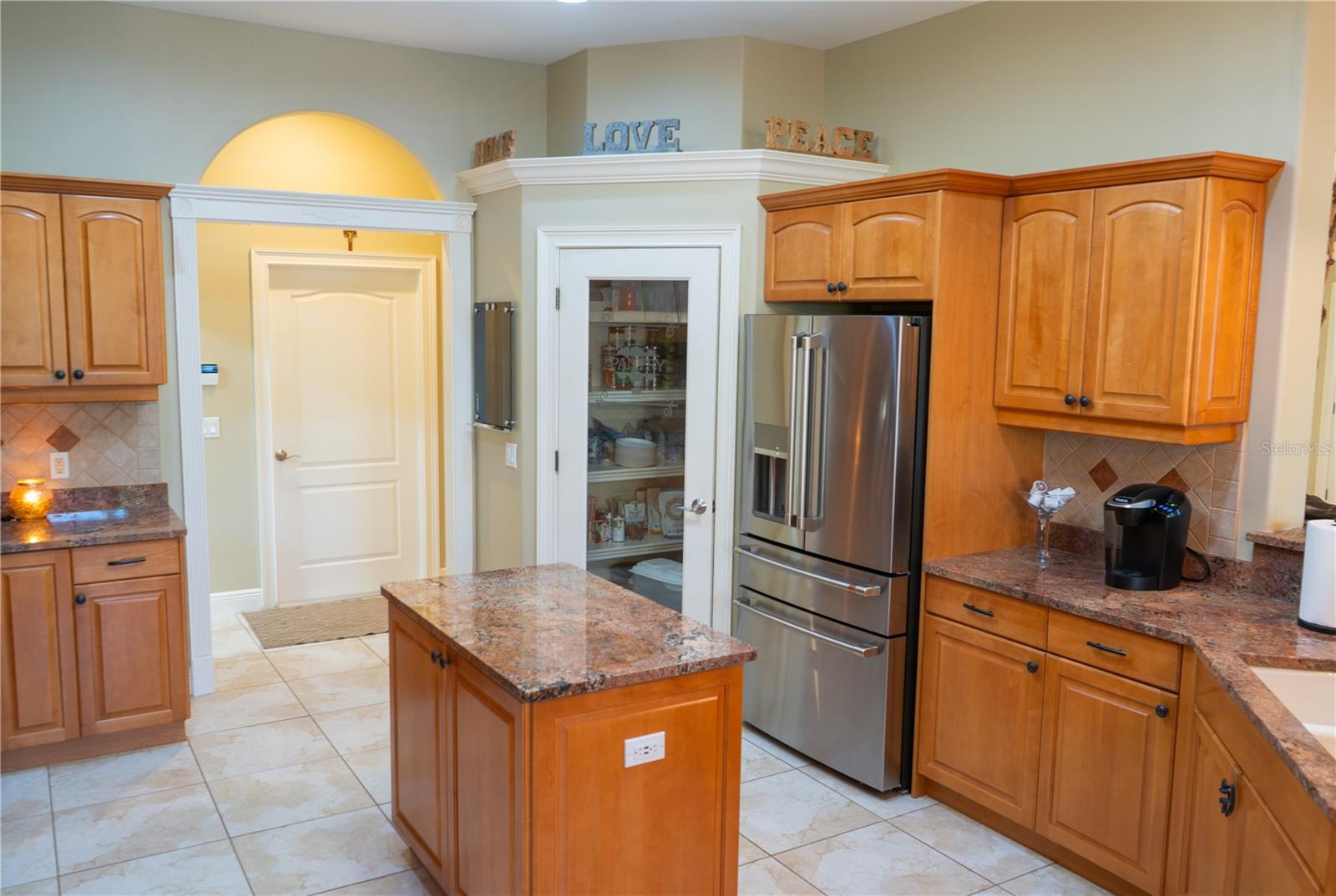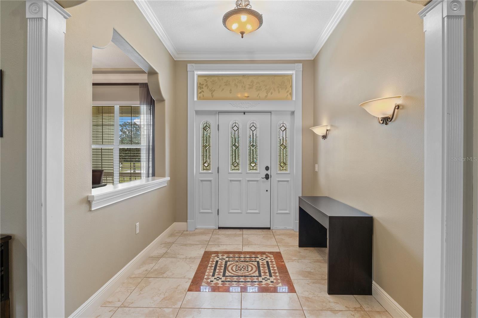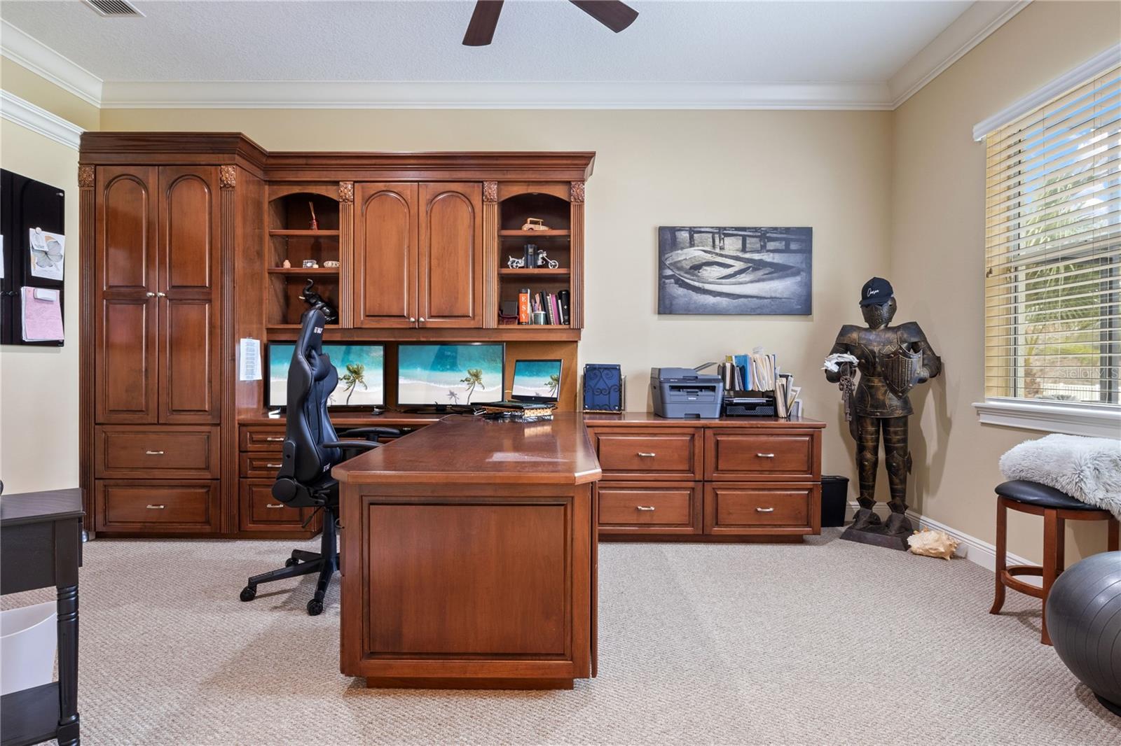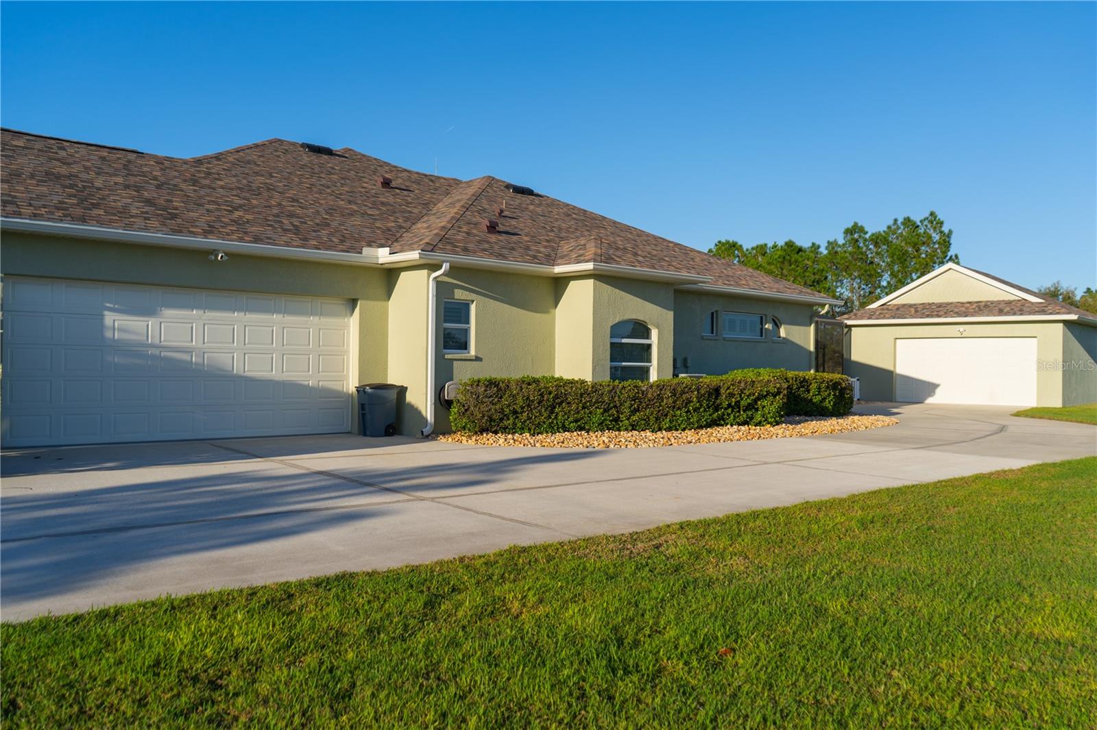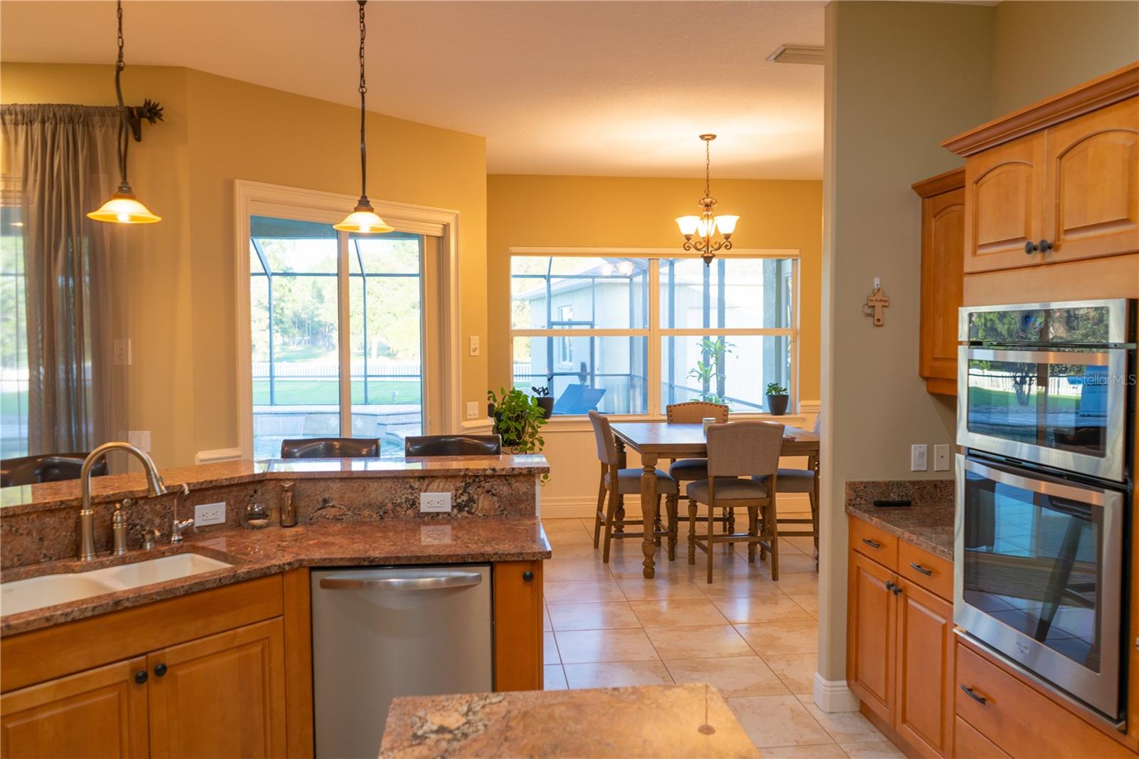 This home sits on a private one-acre lot in a cul-de-sac, featuring 3 bedrooms plus an office/den, 2.5 baths, an oversized side-loading 2-car garage, and a separate 800 sqft detached garage. The foyer opens into a spacious great room with a wood-burning fireplace and large sliders overlooking a waterfall in the enclosed saltwater pool. The kitchen boasts ample cabinets, a central island, and a walk-in pantry with a new GE Café refrigerator. The split plan includes 2 bedrooms sharing a Jack & Jill bathroom and a well-appointed office with built-in desk and shelves. The master bedroom offers plantation shutters, a reading area, and pool access, with a large walk-in closet and ensuite featuring dual vanities, a walk-in shower, and garden tub. Throughout the home, find intricate details like tray ceilings, crown molding, and chair rails. Enjoy the Florida lifestyle with seamless indoor/outdoor flow and a saltwater pool maintained by a Pool Pilot system. The fenced backyard overlooks a pond and greenbelt, offering privacy. The detached garage is ideal for a workshop or car collection. Unique features include a private well for the sprinkler system, a new roof, landscaping, and septic leach field, plus whole-house water softener and central vacuum system. Located in Foxbrook with no CDD fees and low HOA dues, centrally located for easy access to Tampa, St. Petersburg, beaches, and Sarasota. Come see this "Home sweet Home."