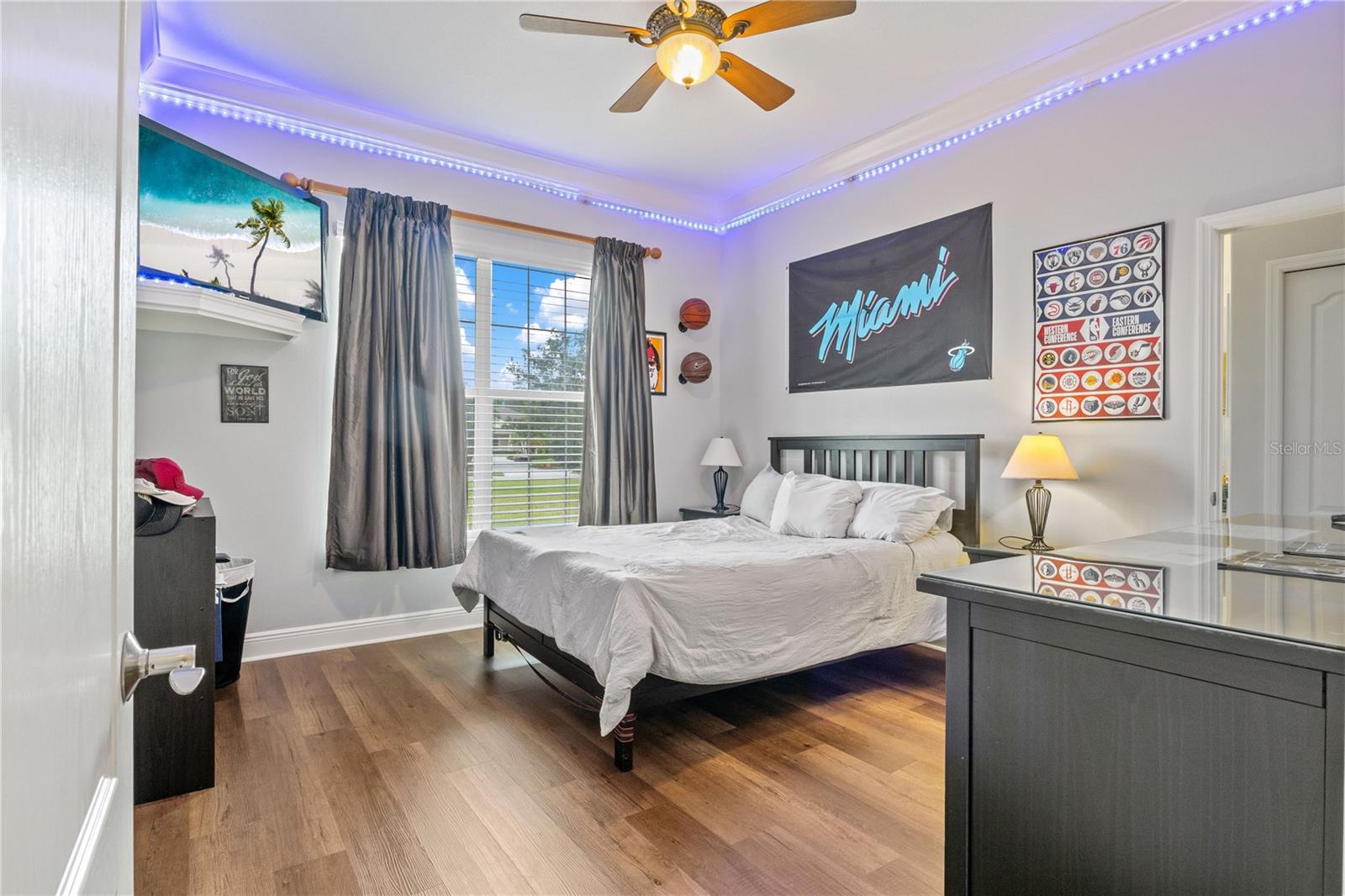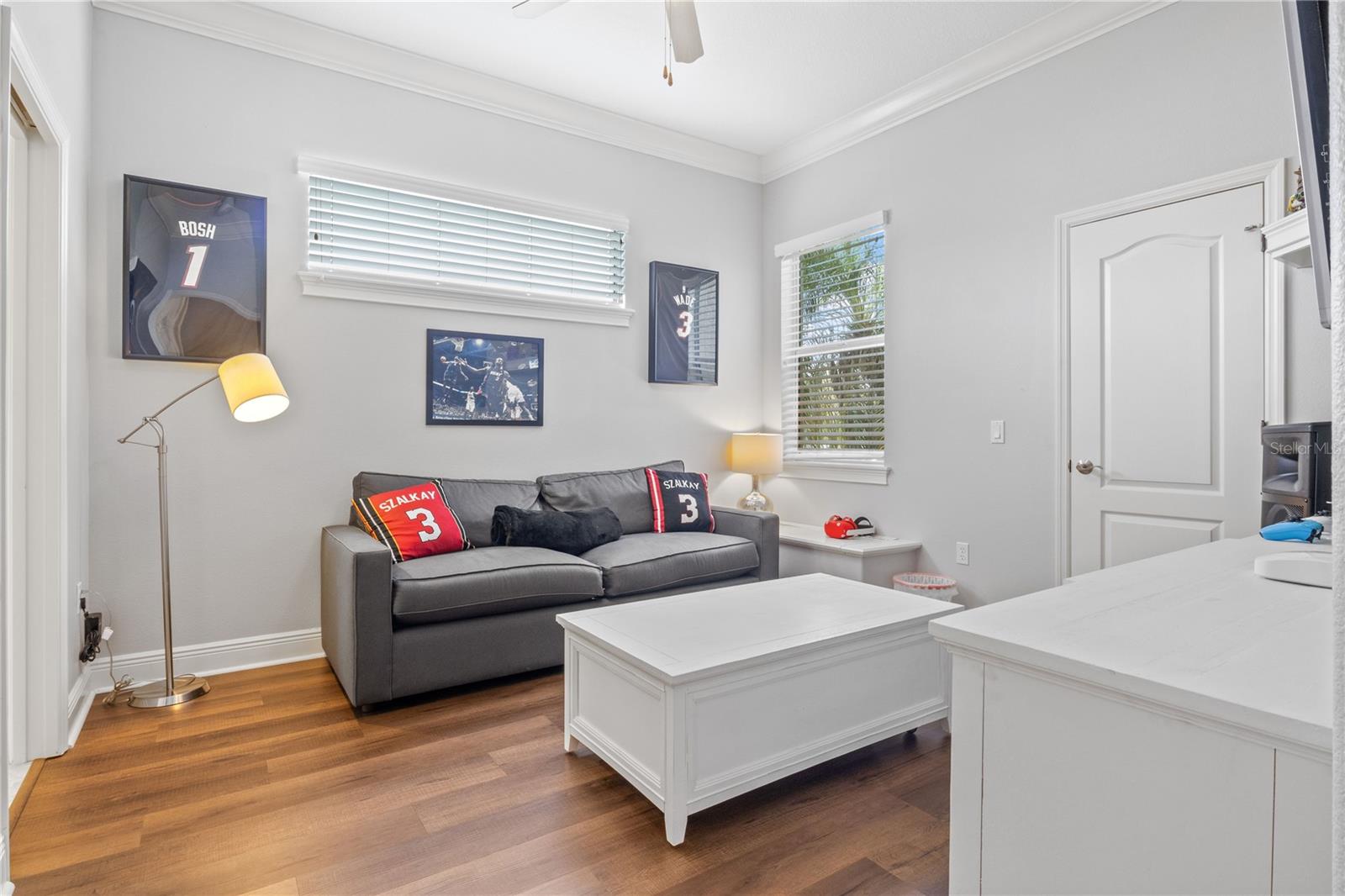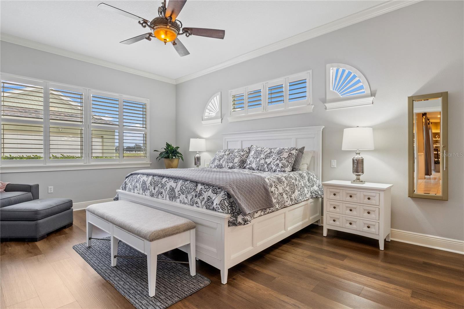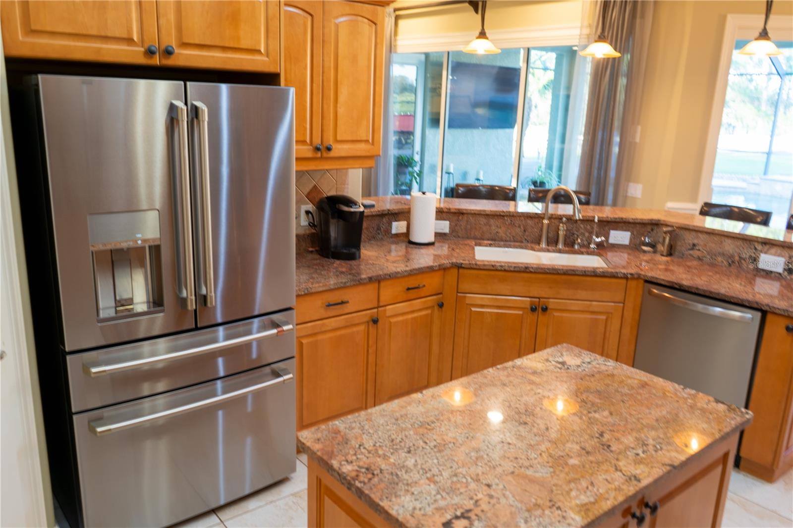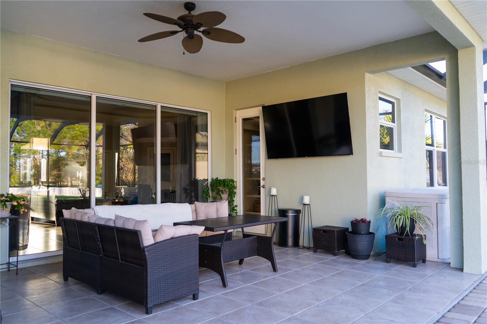 This home sits on a private one-acre lot in a cul-de-sac, featuring 3 bedrooms plus an office/den, 2.5 baths, an oversized side-loading 2-car garage, and a separate 800 sqft detached garage. The foyer opens into a spacious great room with a wood-burning fireplace and large sliders overlooking a waterfall in the enclosed saltwater pool. The kitchen boasts ample cabinets, a central island, and a walk-in pantry with a new GE Café refrigerator. The split plan includes 2 bedrooms sharing a Jack & Jill bathroom and a well-appointed office with built-in desk and shelves. The master bedroom offers plantation shutters, a reading area, and pool access, with a large walk-in closet and ensuite featuring dual vanities, a walk-in shower, and garden tub. Throughout the home, find intricate details like tray ceilings, crown molding, and chair rails. Enjoy the Florida lifestyle with seamless indoor/outdoor flow and a saltwater pool maintained by a Pool Pilot system. The fenced backyard overlooks a pond and greenbelt, offering privacy. The detached garage is ideal for a workshop or car collection. Unique features include a private well for the sprinkler system, a new roof, landscaping, and septic leach field, plus whole-house water softener and central vacuum system. Located in Foxbrook with no CDD fees and low HOA dues, centrally located for easy access to Tampa, St. Petersburg, beaches, and Sarasota. Come see this "Home sweet Home."