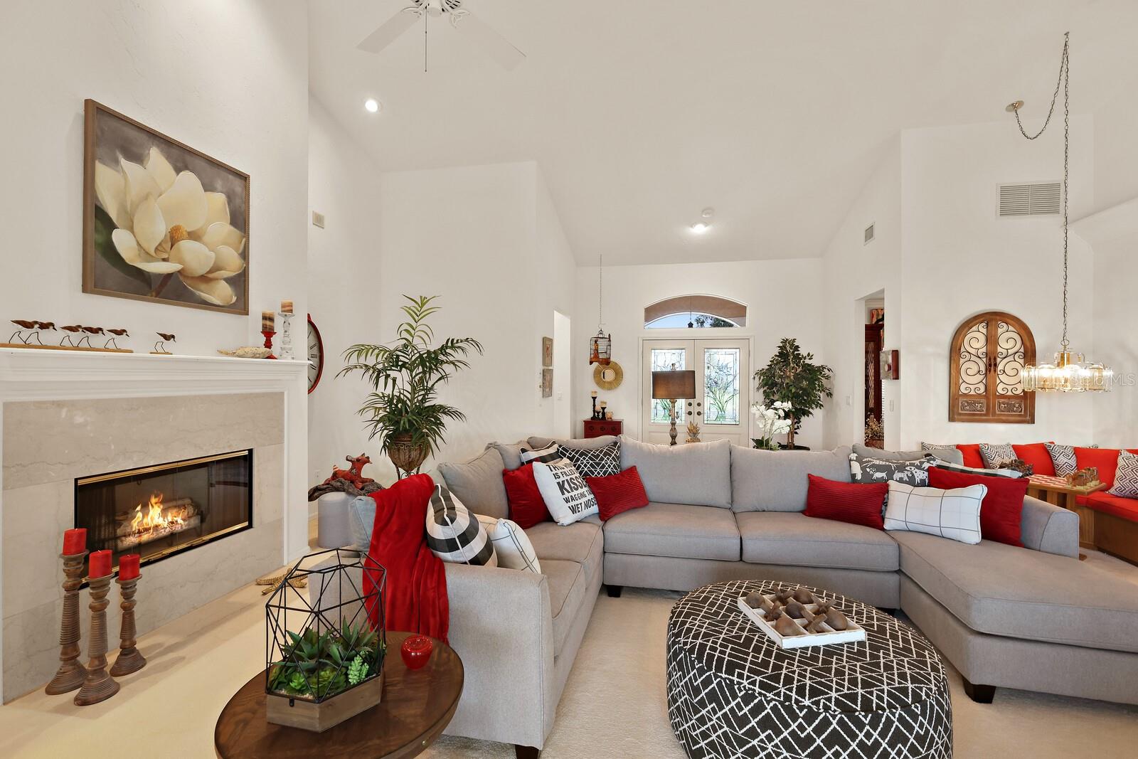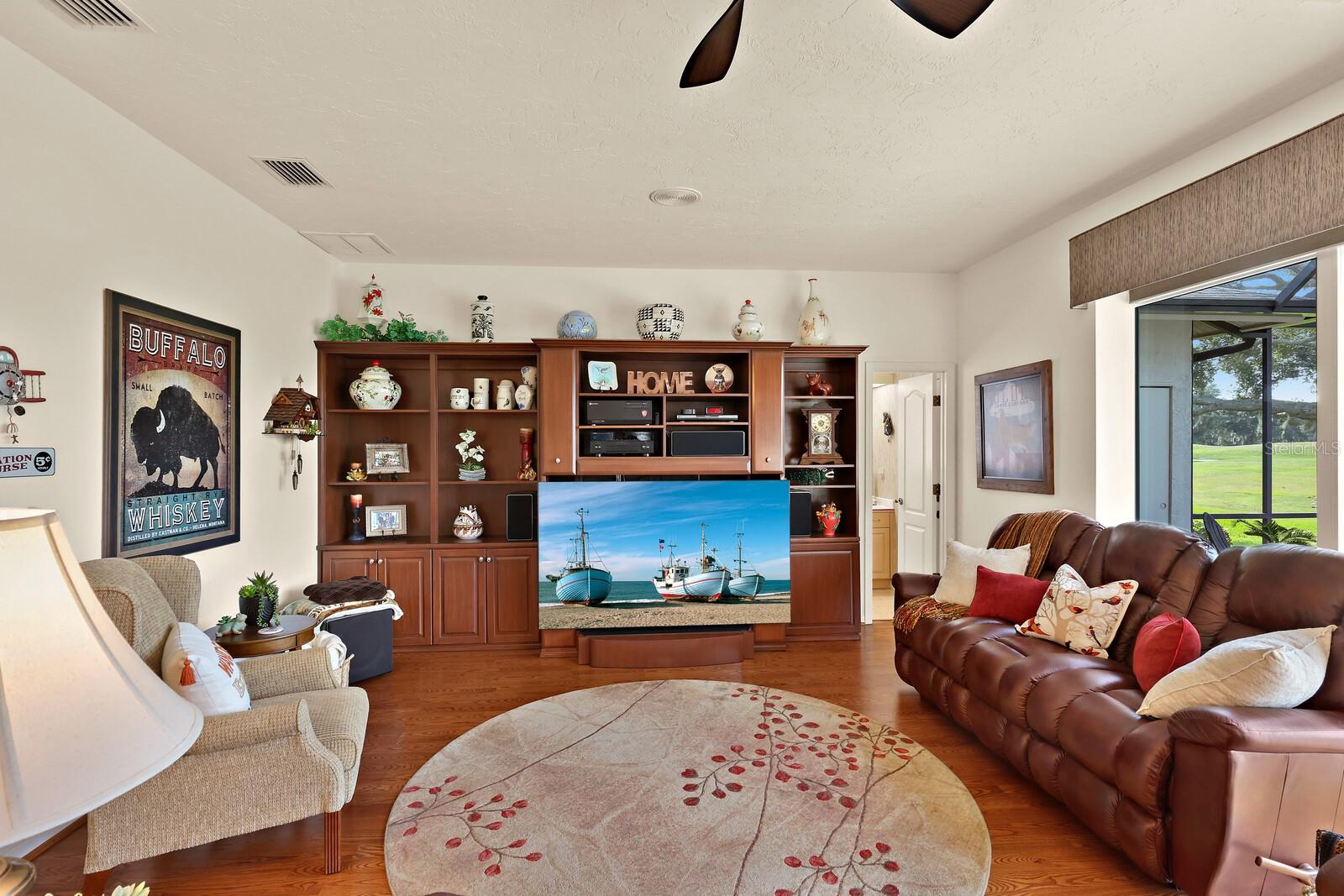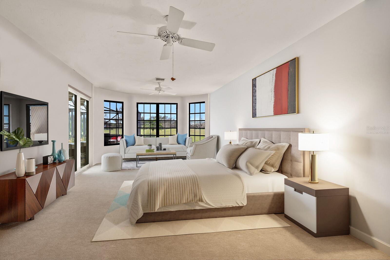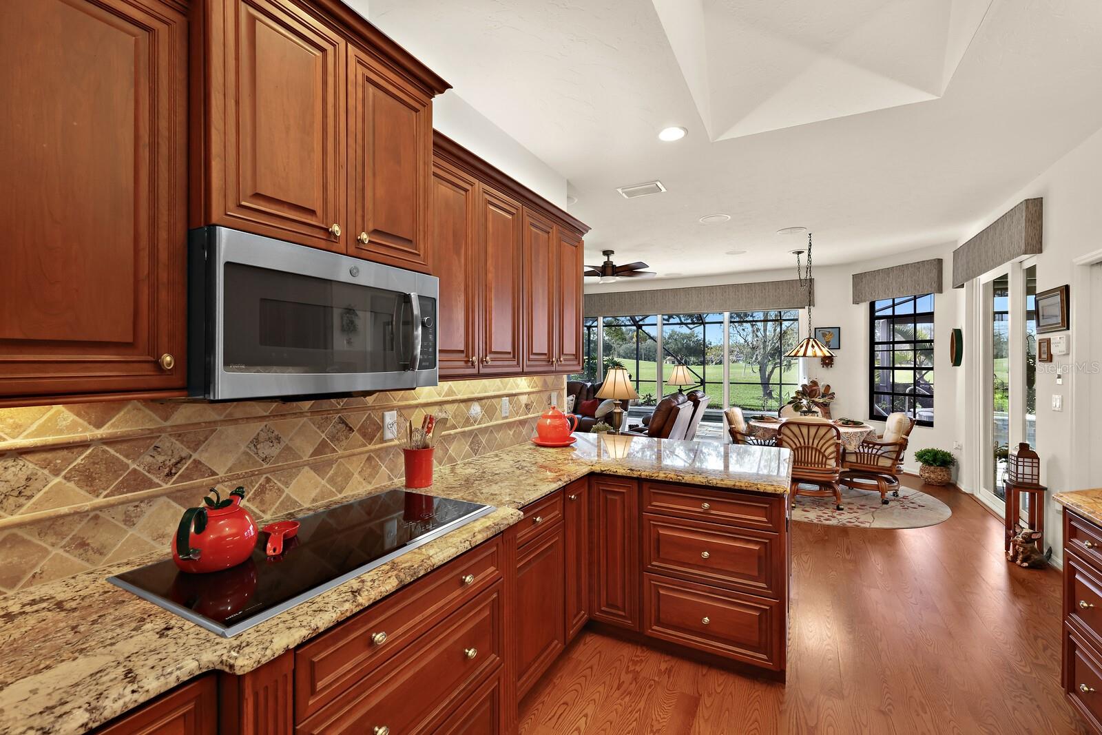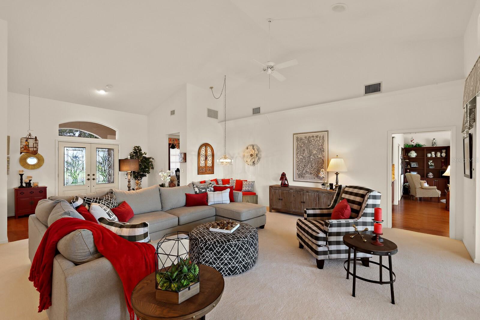 One or more photo(s) has been virtually staged. Make your mark on this estate-sized home in River Wilderness. Boasting over 3000 square feet on a nearly ½ acre lot, this residence offers space to customize your ideal home. Things you won't want to change: The location...Situated on the 8th tee of The Club at River Wilderness golf course, this home offers breathtaking views; Lap pool... including a large lanai with updated screens; New roof...updated in January 2024; Newer A/C systems...updated in 2018 (main unit) and 2022 (primary suite unit); Newer hot water heater...updated in 2017. The home was remodeled to the highest standards in 2016, providing a great start to its next owners with solid wood cabinetry in the kitchen and bathrooms, high-end appliances in the kitchen, and state-of-the-art plumbing fixtures in the bathrooms. Oversized 2-car garage with a space and separate door for golf cart. The enormous primary suite features two walk-in closets, a bay window feature, sliding doors to the lanai, and a big bathroom. The two additional bedrooms are large - with one providing an opportunity to create an ensuite feature by converting the pool bath and closet which share a wall. The formal dining room could be reimagined as a fourth bedroom or office. Add your own touch to the decor, flooring and paint and this is a value-buy with a luxury outcome. Membership at The Club at River Wilderness is optional, featuring golf, tennis, pickle ball, gym, lap pool, and many social activities. Find your place in Parrish, FL – a perfectly positioned community to Bradenton, Sarasota, St. Pete and Tampa. River Wilderness is a peaceful community with spacious lots, unique homes, and a true sense of community.
