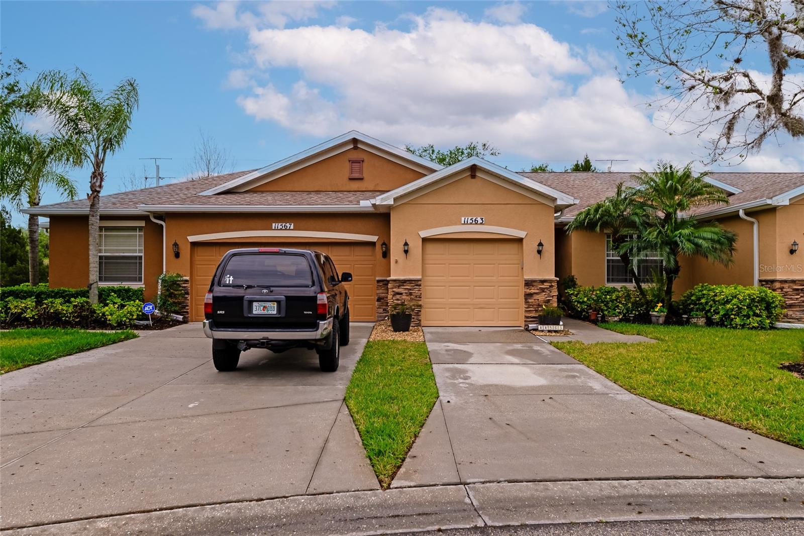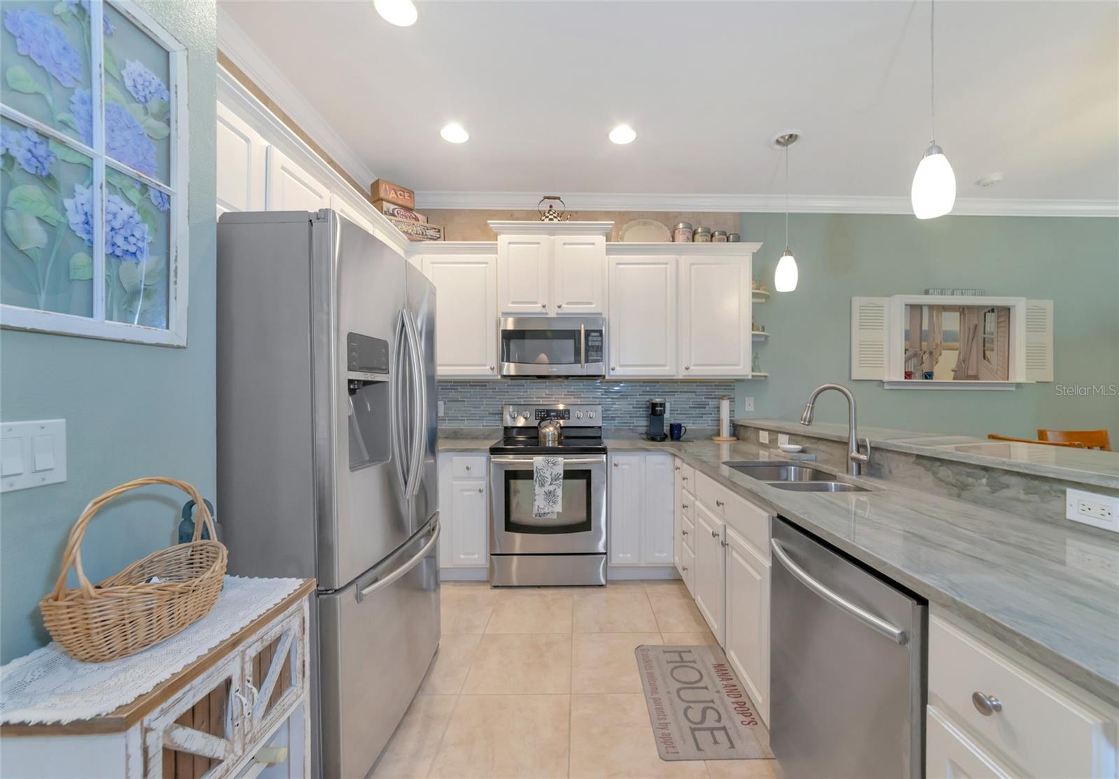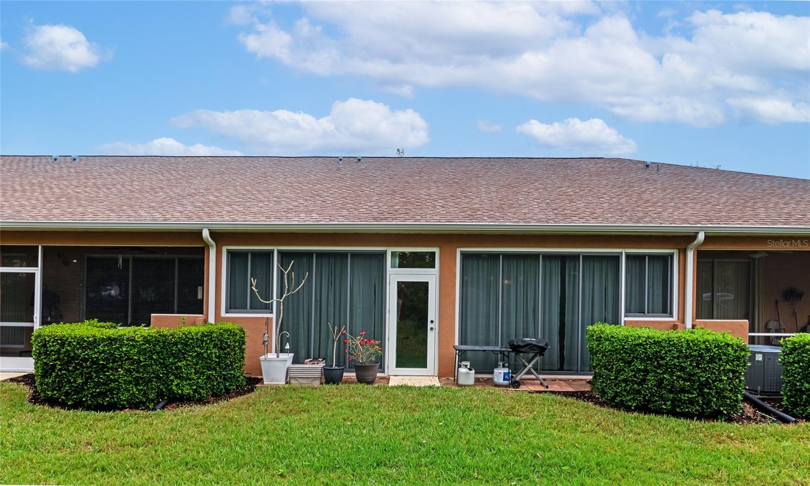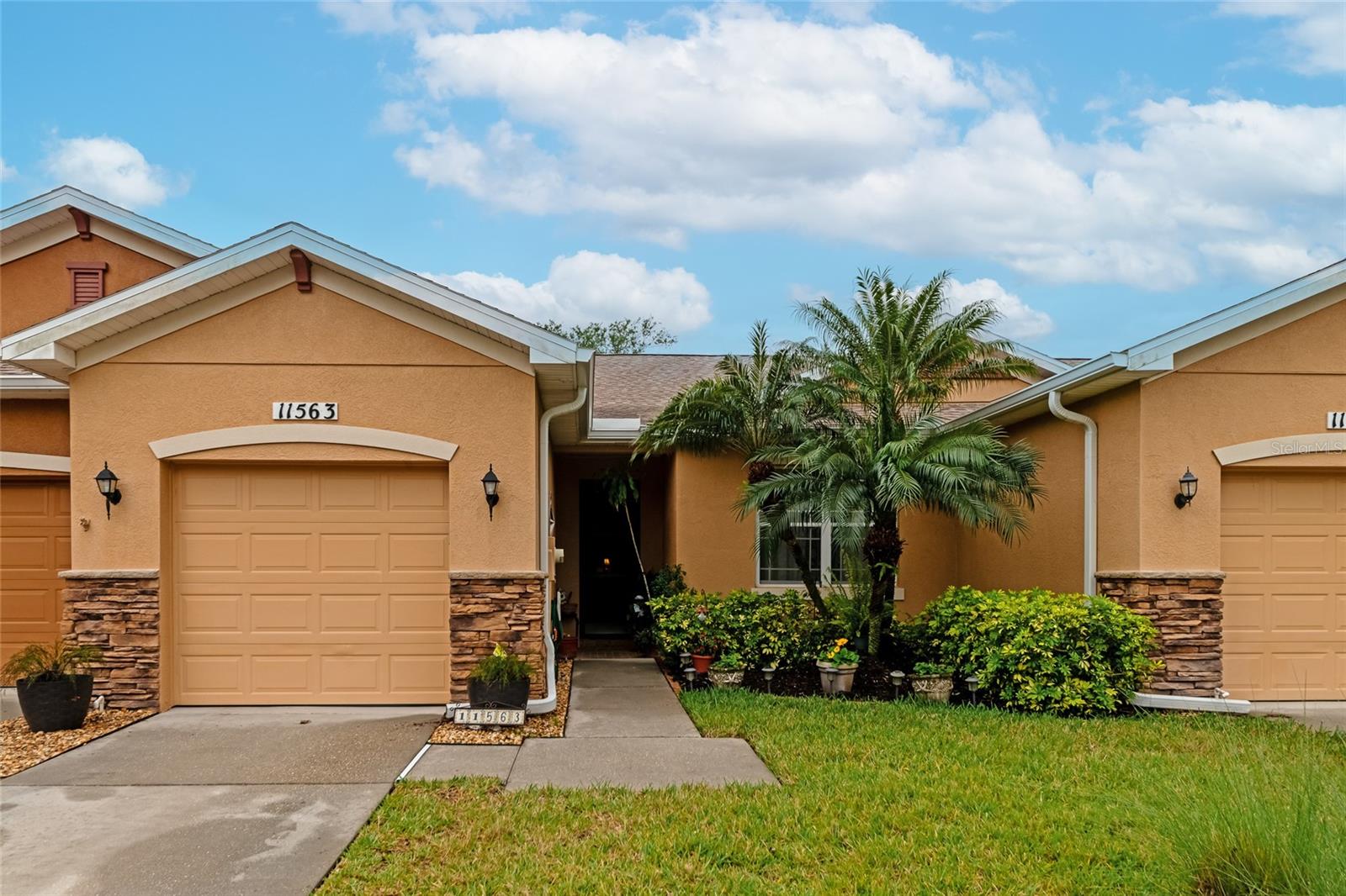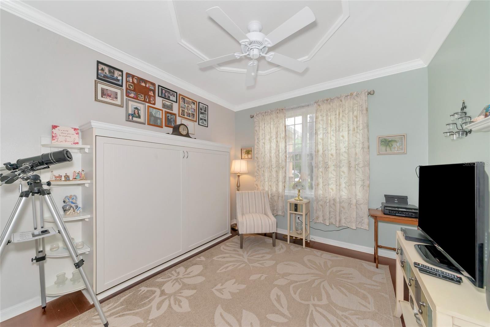 Welcome to your move-in ready villa nestled in the charming Lexington community. This meticulously maintained home is a testament to comfort and style, boasting numerous upgrades that will delight your family. Recent renovations include a new roof and AC installed in 2023, ensuring peace of mind for years to come. The kitchen has been tastefully updated with new countertops, painted cabinets, stainless steel appliances, and a stylish tile backsplash. The master bathroom has also been refreshed, adding a touch of modern elegance to your daily routine. Inside, you'll find a welcoming great room layout with two bedrooms strategically placed for privacy. The guest bedroom doubles as a convenient office space, featuring a Murphy bed for versatility. Crown molding and beautiful wood floors throughout add a touch of sophistication to every room. Step outside to the glass-enclosed lanai, providing year-round comfort and extending your living space for entertaining or relaxation. Situated on a quiet cul-de-sac, this unit offers peace and tranquility with minimal traffic. Lexington community living offers even more perks, including access to a community pool and park, all while maintaining low HOA fees. With its prime location and desirable amenities, this villa is truly a place to call home.