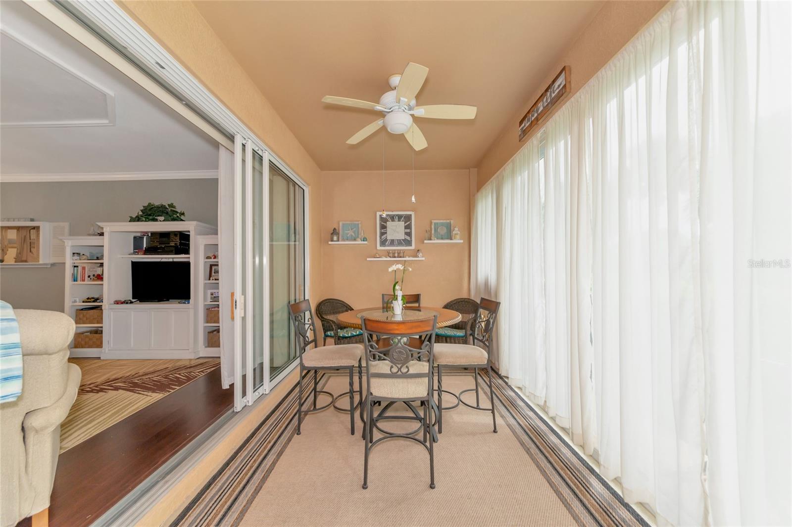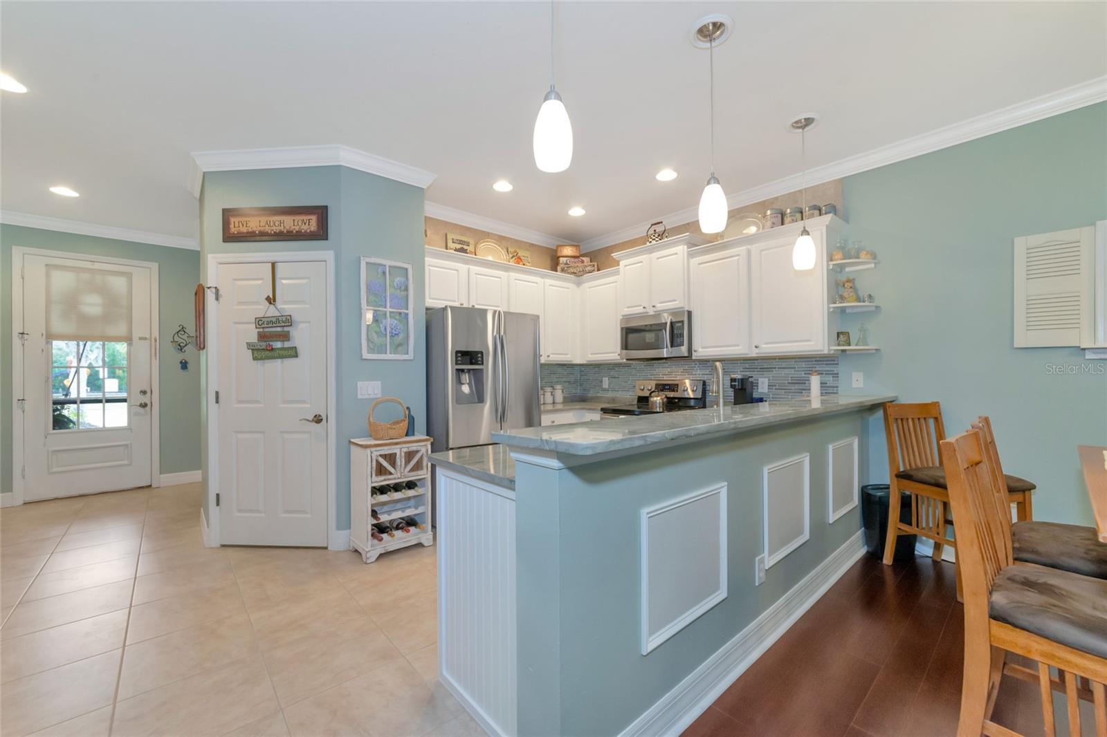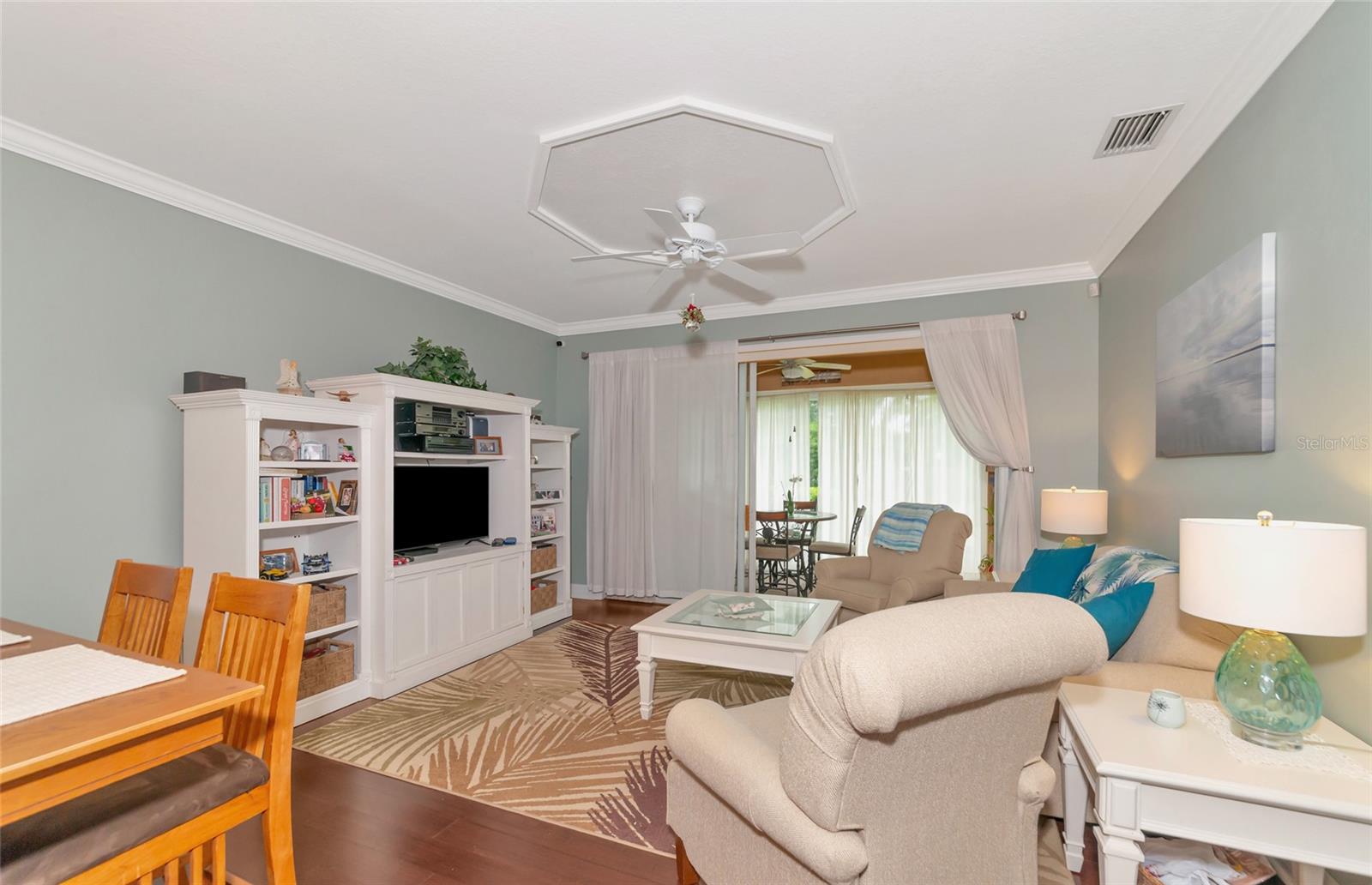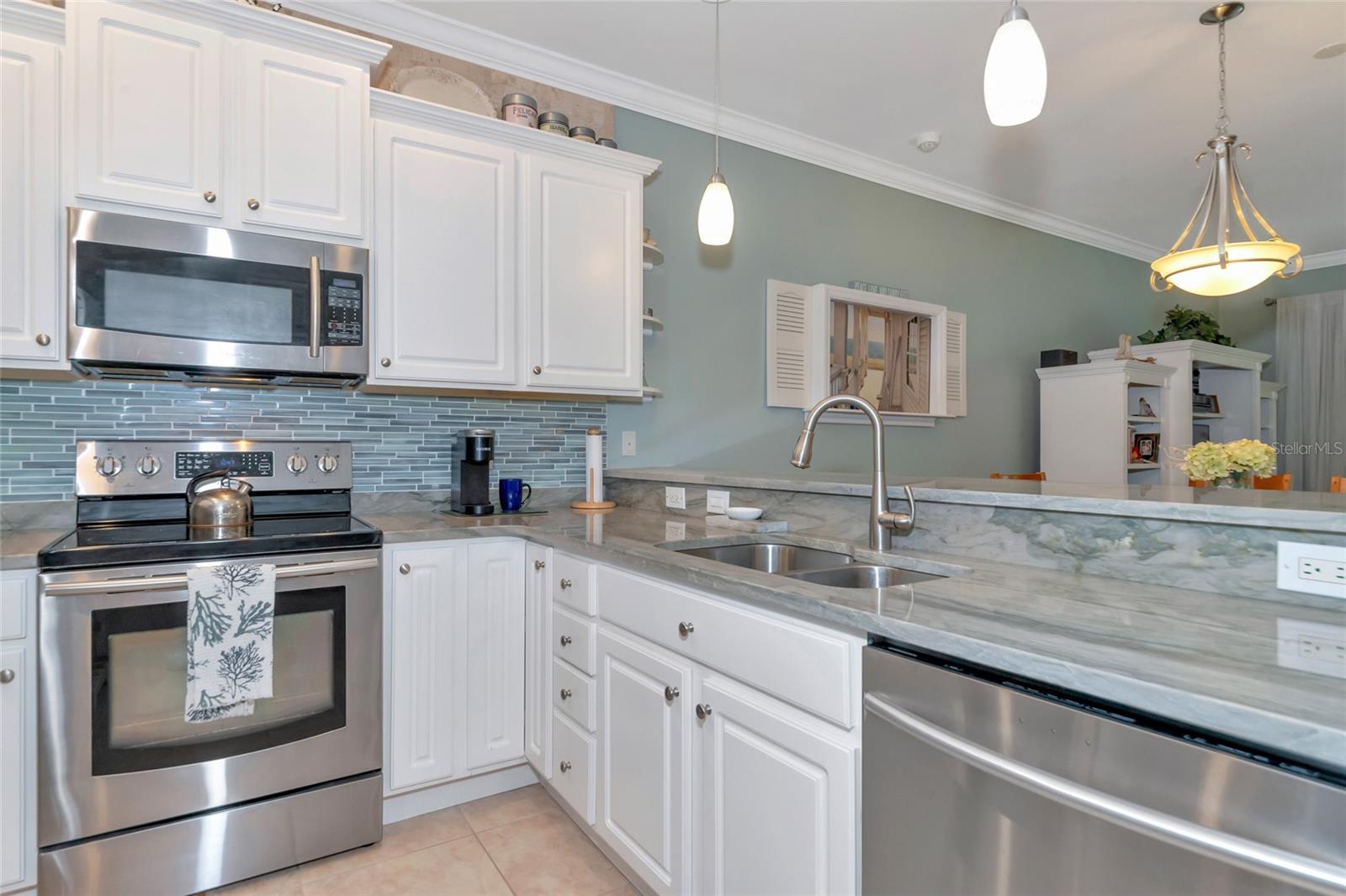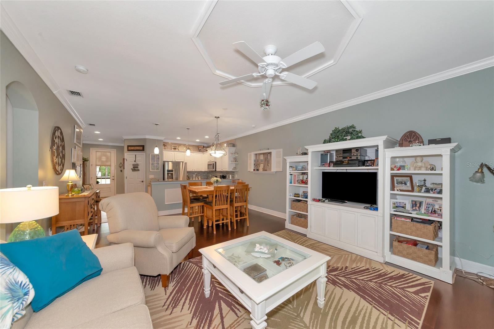 Welcome to your move-in ready villa nestled in the charming Lexington community. This meticulously maintained home is a testament to comfort and style, boasting numerous upgrades that will delight your family. Recent renovations include a new roof and AC installed in 2023, ensuring peace of mind for years to come. The kitchen has been tastefully updated with new countertops, painted cabinets, stainless steel appliances, and a stylish tile backsplash. The master bathroom has also been refreshed, adding a touch of modern elegance to your daily routine. Inside, you'll find a welcoming great room layout with two bedrooms strategically placed for privacy. The guest bedroom doubles as a convenient office space, featuring a Murphy bed for versatility. Crown molding and beautiful wood floors throughout add a touch of sophistication to every room. Step outside to the glass-enclosed lanai, providing year-round comfort and extending your living space for entertaining or relaxation. Situated on a quiet cul-de-sac, this unit offers peace and tranquility with minimal traffic. Lexington community living offers even more perks, including access to a community pool and park, all while maintaining low HOA fees. With its prime location and desirable amenities, this villa is truly a place to call home.