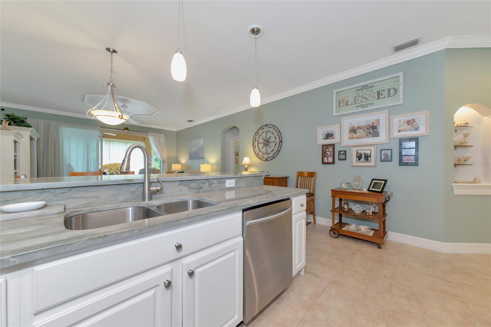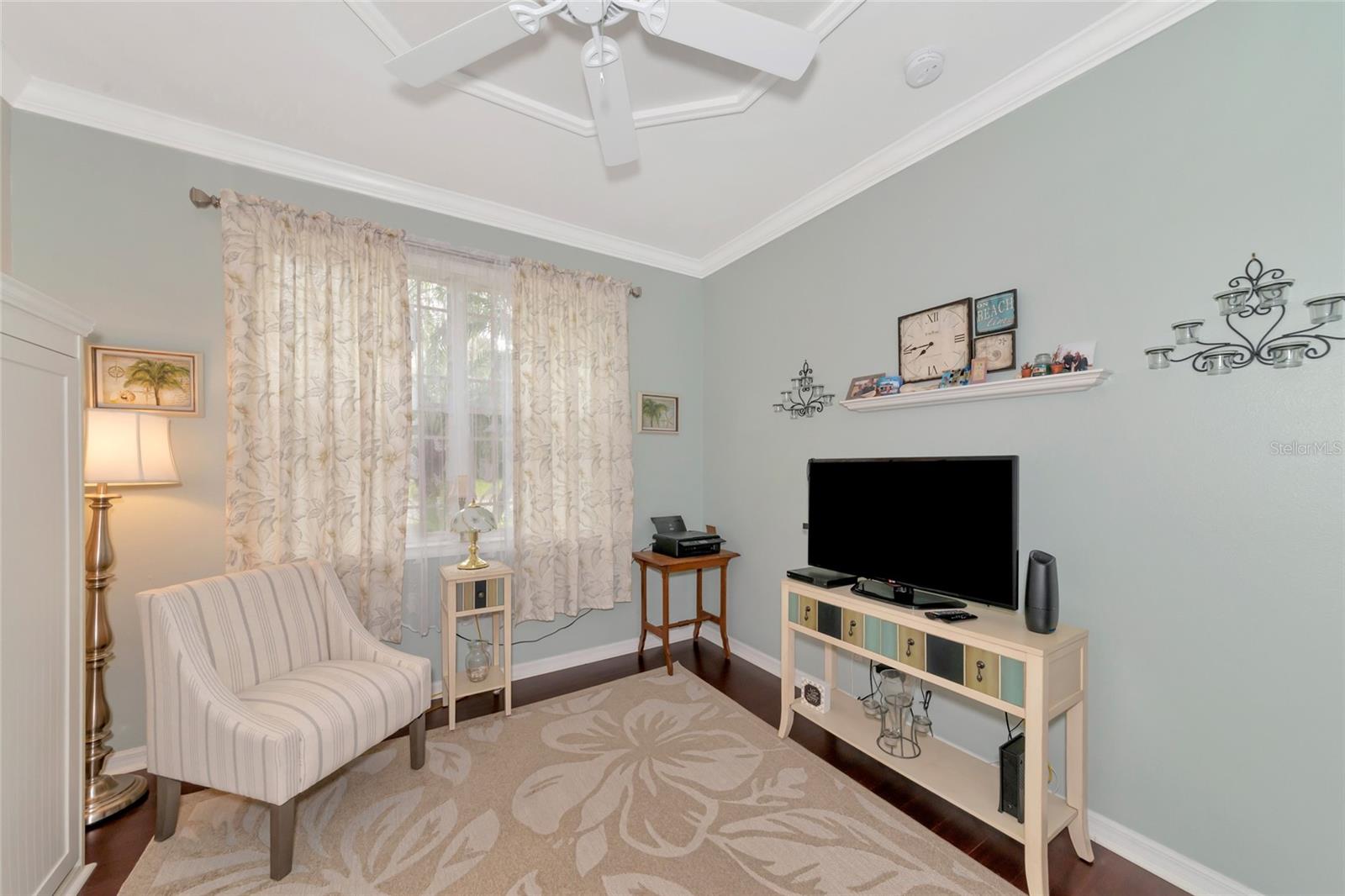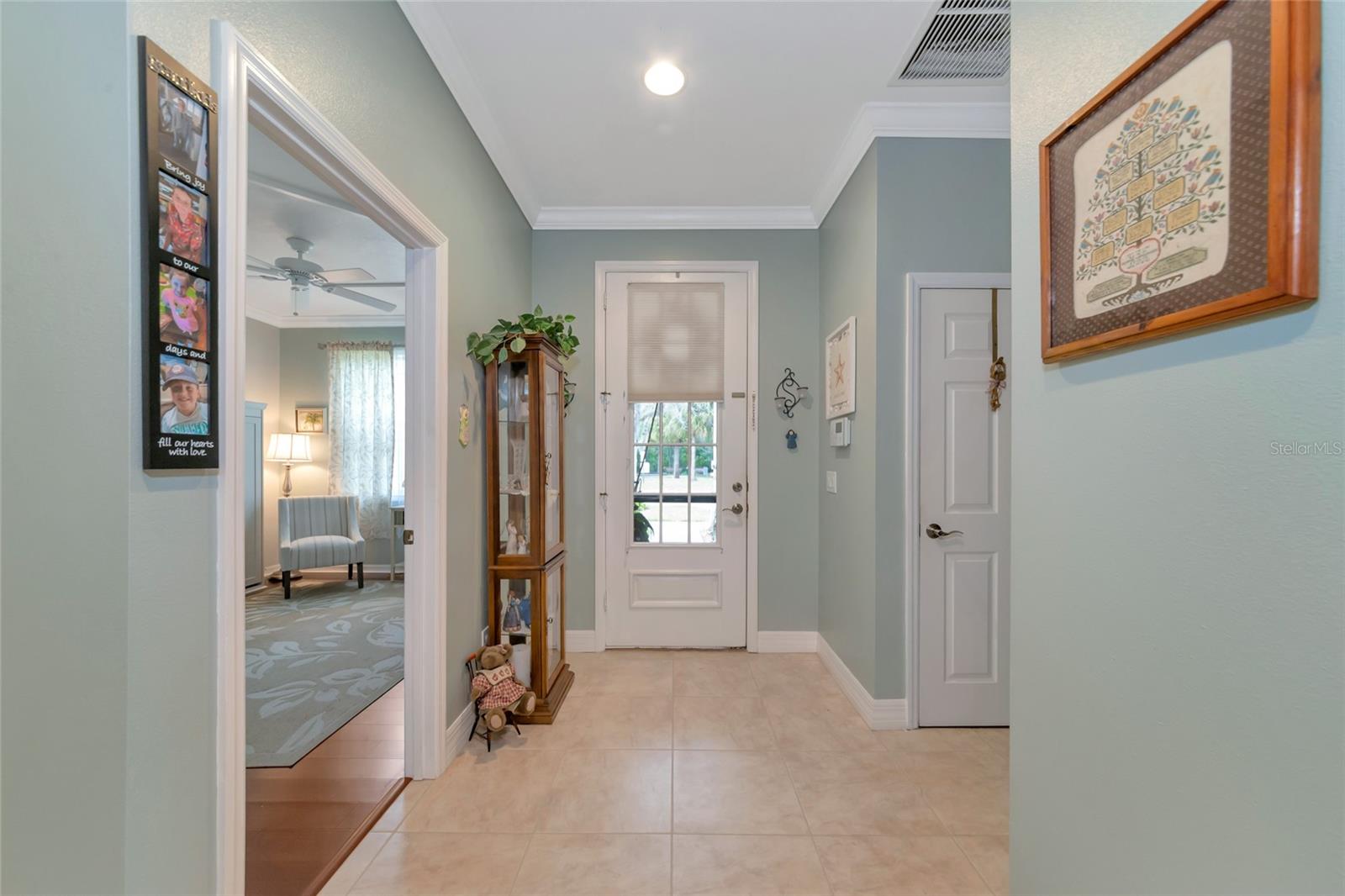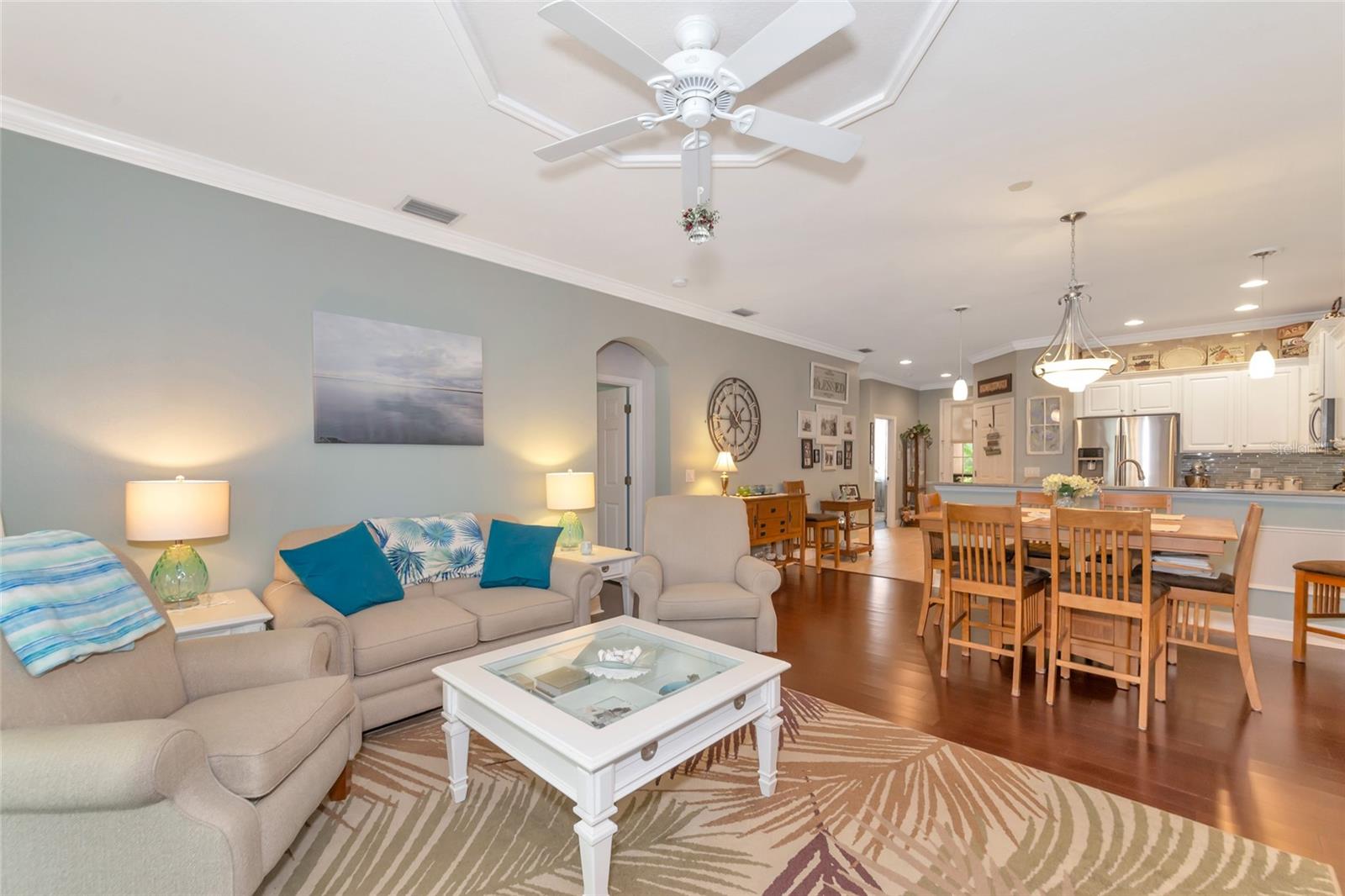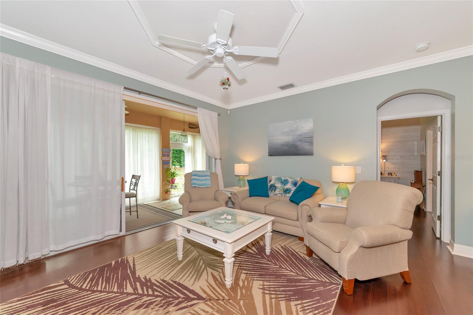 Welcome to your move-in ready villa nestled in the charming Lexington community. This meticulously maintained home is a testament to comfort and style, boasting numerous upgrades that will delight your family. Recent renovations include a new roof and AC installed in 2023, ensuring peace of mind for years to come. The kitchen has been tastefully updated with new countertops, painted cabinets, stainless steel appliances, and a stylish tile backsplash. The master bathroom has also been refreshed, adding a touch of modern elegance to your daily routine. Inside, you'll find a welcoming great room layout with two bedrooms strategically placed for privacy. The guest bedroom doubles as a convenient office space, featuring a Murphy bed for versatility. Crown molding and beautiful wood floors throughout add a touch of sophistication to every room. Step outside to the glass-enclosed lanai, providing year-round comfort and extending your living space for entertaining or relaxation. Situated on a quiet cul-de-sac, this unit offers peace and tranquility with minimal traffic. Lexington community living offers even more perks, including access to a community pool and park, all while maintaining low HOA fees. With its prime location and desirable amenities, this villa is truly a place to call home.