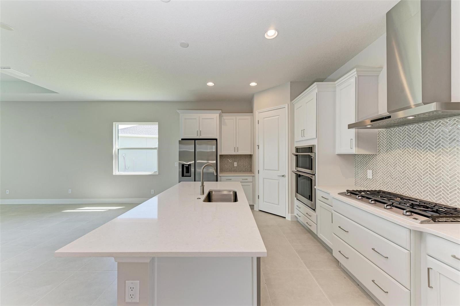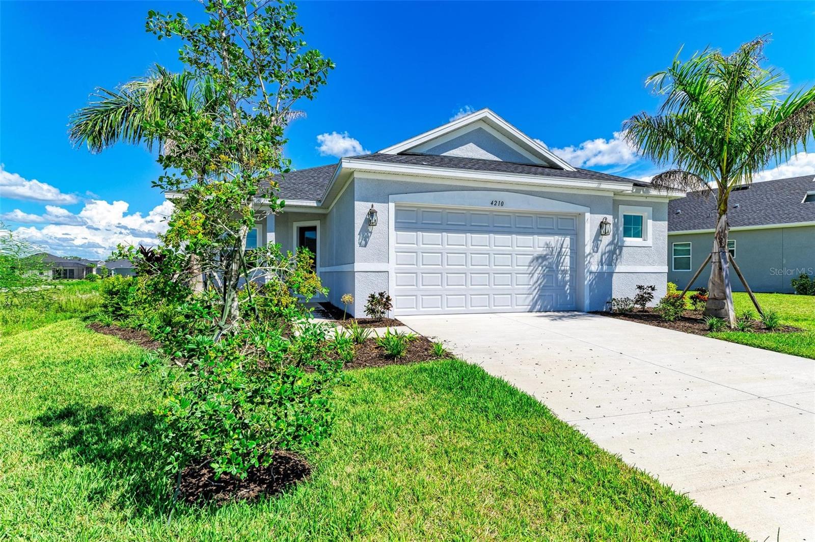 The Nevis by Medallion Home is a great room style home with 2 bedrooms plus a den, and 2 bathrooms in 1746 square feet of wide open space in The Willows, a gated commuity within Cross Creek, in Parrish, FL! The gourmet kitchen features a natural gas cooktop with canopy range hood and a built-in convection oven/microwave, 7'x4' island, Caesarstone quartz countertops, upgraded white cabinetry, decorative tiled backsplash, and a stainless steel refrigerator with ice and water in the door. 10' tall ceilings, 8' tall doors, and 22x22 porcelain tile flooring throughout this home adds to the open feel. PGT WinGard impact-resistant windows and sliders will provide peace of mind during storms and are extremely energy efficient! The primary bedroom is spacious and bright and the primary bath will suit your needs today and on into the future with double sinks and a zero entry walk-in shower. The peaceful view of the pond behind your home can be seen from the moment you walk in the front door, all the way until you step out onto the spacious lanai that is pre-wired and pre-plumbed for your future outdoor kitchen. With low HOA fees, NO CDD's, and the convenience of being 15-20 minutes from all that makes SW Florida so appealing, The Willows is a great choice for your new home! Please call today!