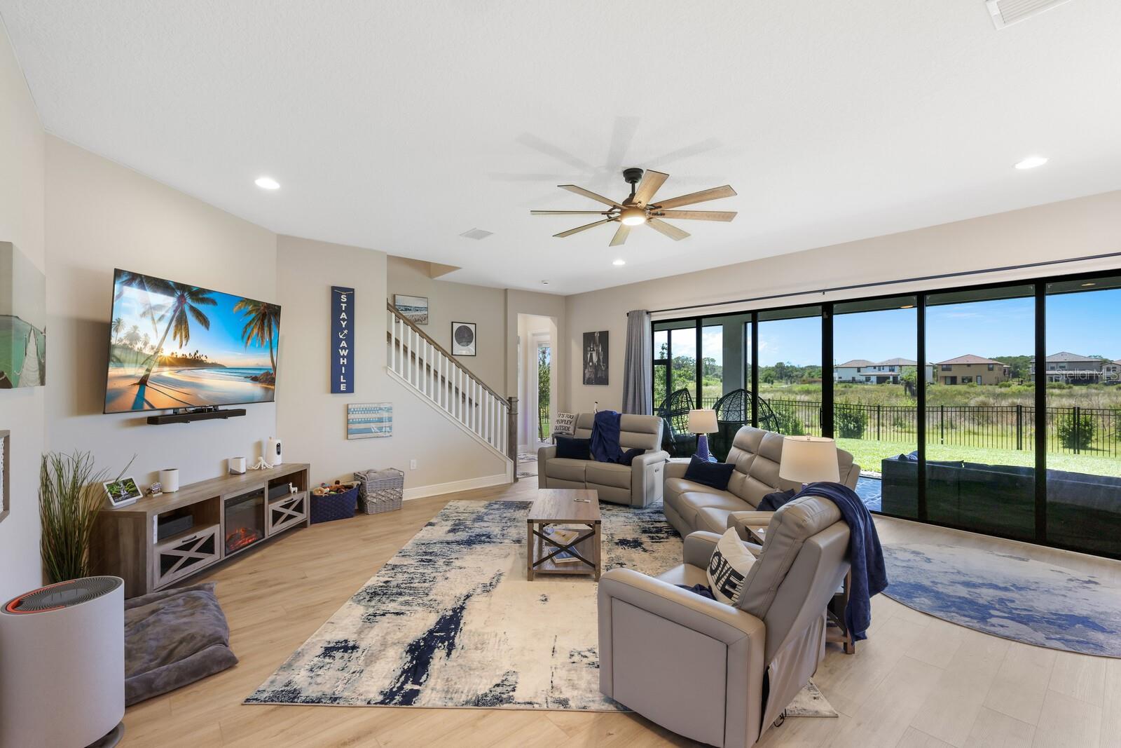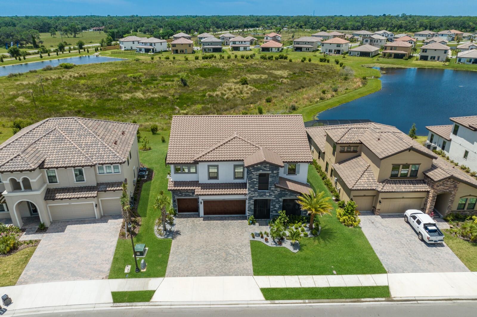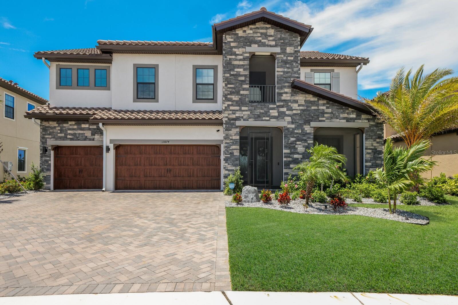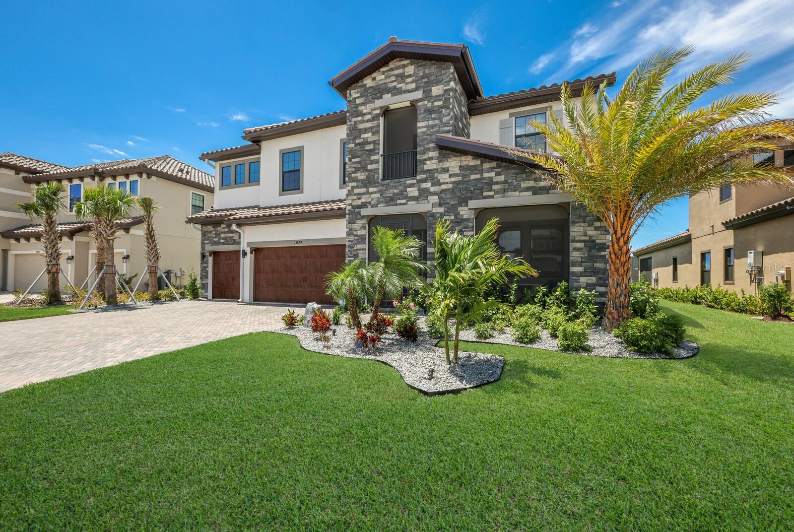 Welcome to your dream home in the vibrant community of Crosswind Ranch in Parrish! This stunning two-story residence, built in 2023, is a testament to modern luxury and functionality, boasting a plethora of upgrades that will exceed your expectations. As you approach, the fully sealed paver driveway sets the tone for the quality and attention to detail found throughout this home. Step through the screened front porch with clearview and 8 foot front door into the inviting great room, where natural light floods the space, creating an atmosphere of warmth and comfort. The heart of the home is the gourmet kitchen, featuring a vast quartz countertop island with additional seating, 42-inch upper cabinets, a gas cook top with hood, stainless steel appliances, and a walk-in pantry. Overlooking the great room, it's perfect for entertaining while preparing culinary delights. Downstairs offers versatility with a guest suite complete with a full bathroom and a conveniently located office with French doors for privacy. Step outside to the clear view screened porch, where you can relax and enjoy serene views of the pond, fenced in backyard, and nature preserve. Upstairs, discover an expansive loft area, ideal for games and fun or as a cozy retreat for movie nights. The luxurious master suite boasts an abundance of natural light, while the primary bathroom features a double vanity with quartz counter tops, a soaking tub, and a walk-in shower with a rainfall shower head. Additional highlights of this home include upgraded windows with tint for energy efficiency, whole-home gutters and downspouts, upgraded landscaping with lighting, and a backyard oasis with tiki lights and metal landscape edging. The highest elevation package ensures peace of mind, while pre-plumbing for an outdoor kitchen and a whole-home water filter and softener system add convenience. With natural gas run to the house for the range, tankless water heater, and dryer, efficiency and comfort are paramount. Experience luxury living at its finest in this meticulously crafted home, where every detail has been thoughtfully considered for your enjoyment and convenience. Schedule your showing today and make this exquisite residence your own!
