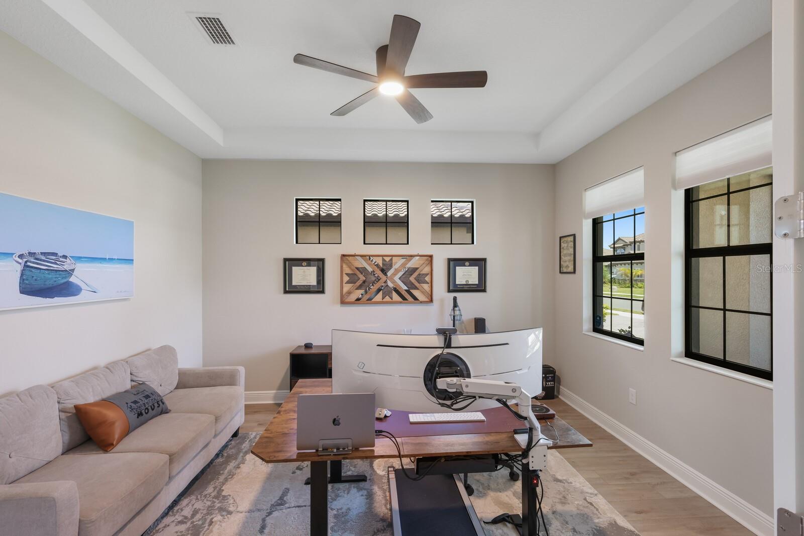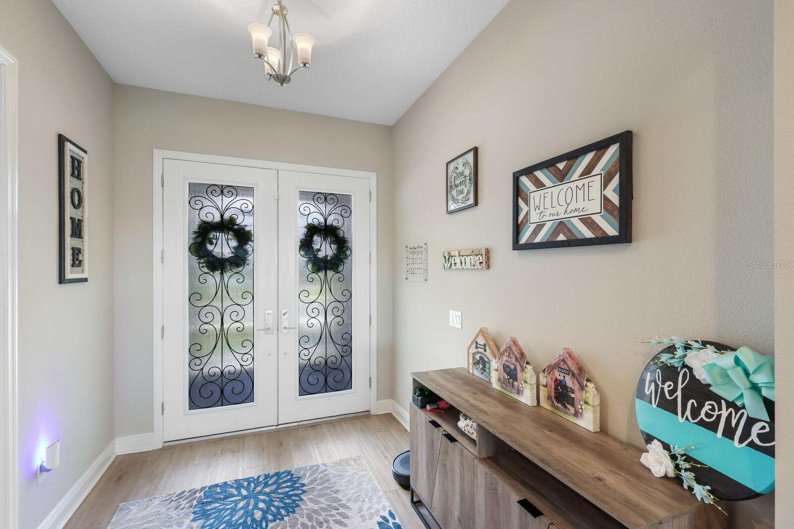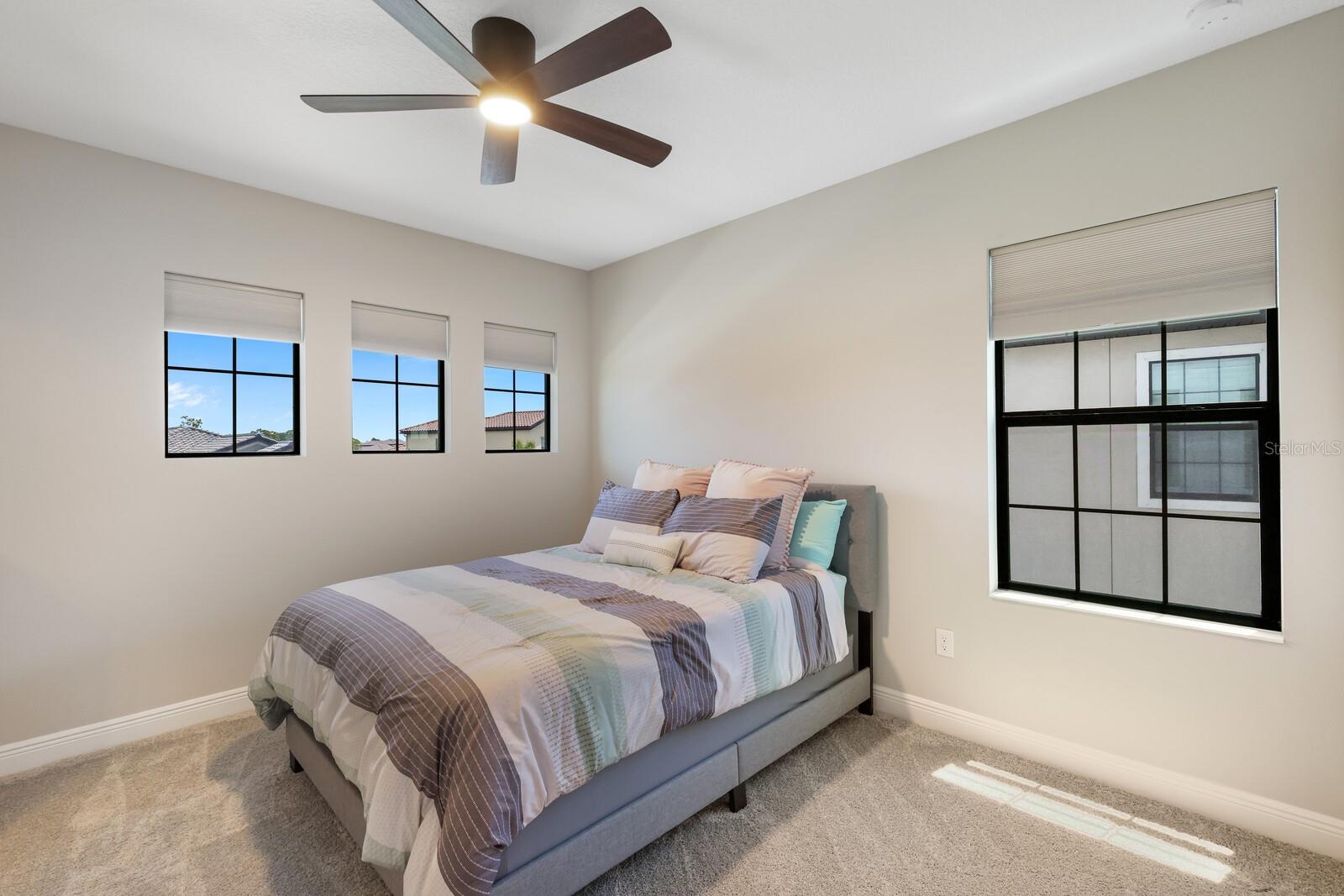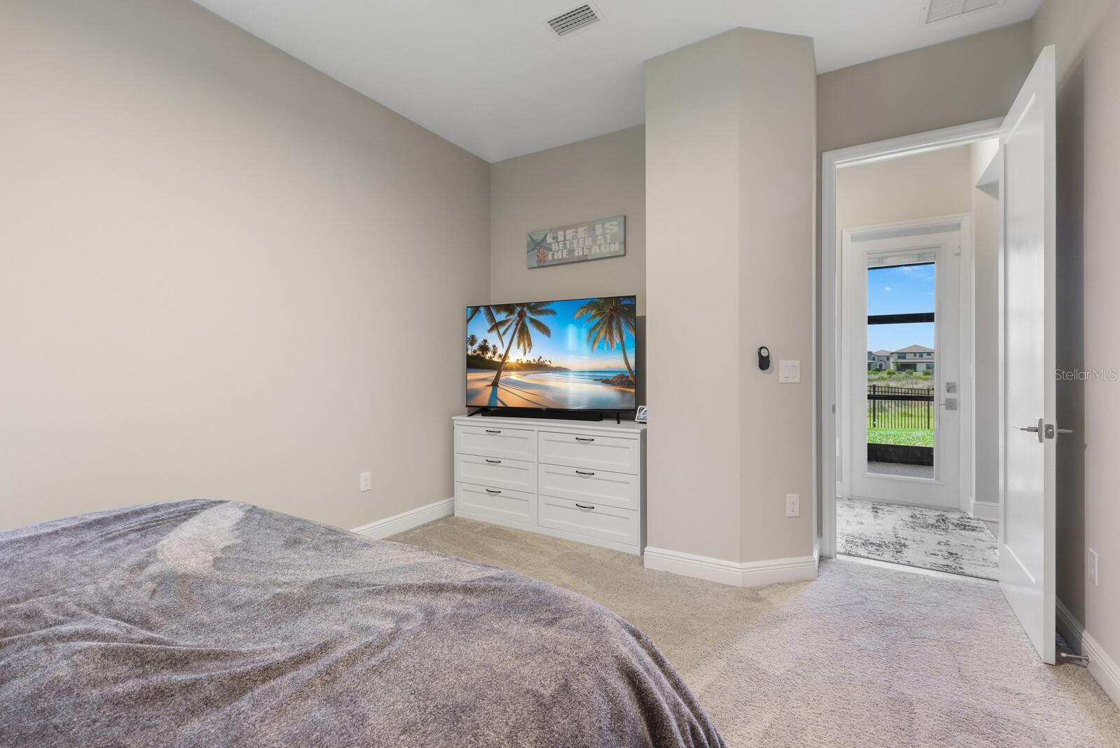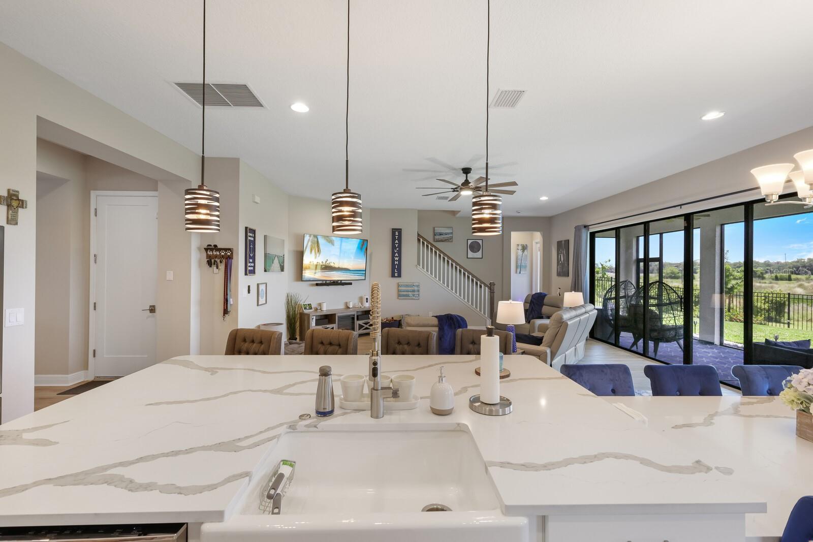Welcome to your dream home in the vibrant community of Crosswind Ranch in Parrish! This stunning two-story residence, built in 2023, is a testament to modern luxury and functionality, boasting a plethora of upgrades that will exceed your expectations. As you approach, the fully sealed paver driveway sets the tone for the quality and attention to detail found throughout this home. Step through the screened front porch with clearview and 8 foot front door into the inviting great room, where natural light floods the space, creating an atmosphere of warmth and comfort. The heart of the home is the gourmet kitchen, featuring a vast quartz countertop island with additional seating, 42-inch upper cabinets, a gas cook top with hood, stainless steel appliances, and a walk-in pantry. Overlooking the great room, it's perfect for entertaining while preparing culinary delights. Downstairs offers versatility with a guest suite complete with a full bathroom and a conveniently located office with French doors for privacy. Step outside to the clear view screened porch, where you can relax and enjoy serene views of the pond, fenced in backyard, and nature preserve. Upstairs, discover an expansive loft area, ideal for games and fun or as a cozy retreat for movie nights. The luxurious master suite boasts an abundance of natural light, while the primary bathroom features a double vanity with quartz counter tops, a soaking tub, and a walk-in shower with a rainfall shower head. Additional highlights of this home include upgraded windows with tint for energy efficiency, whole-home gutters and downspouts, upgraded landscaping with lighting, and a backyard oasis with tiki lights and metal landscape edging. The highest elevation package ensures peace of mind, while pre-plumbing for an outdoor kitchen and a whole-home water filter and softener system add convenience. With natural gas run to the house for the range, tankless water heater, and dryer, efficiency and comfort are paramount. Experience luxury living at its finest in this meticulously crafted home, where every detail has been thoughtfully considered for your enjoyment and convenience. Schedule your showing today and make this exquisite residence your own!