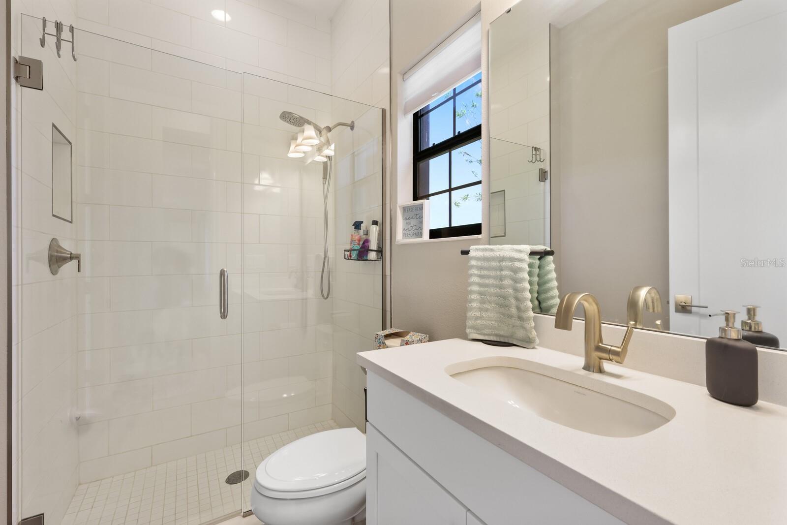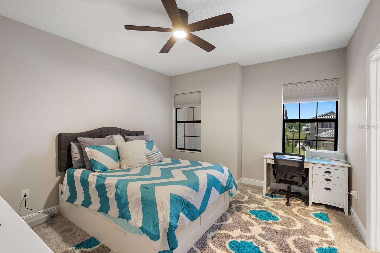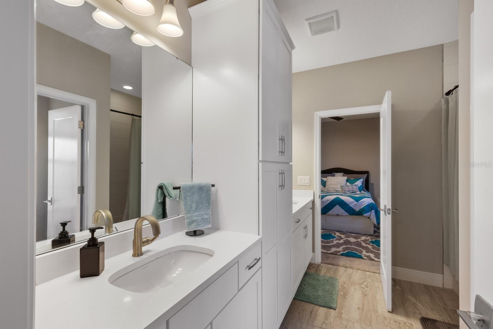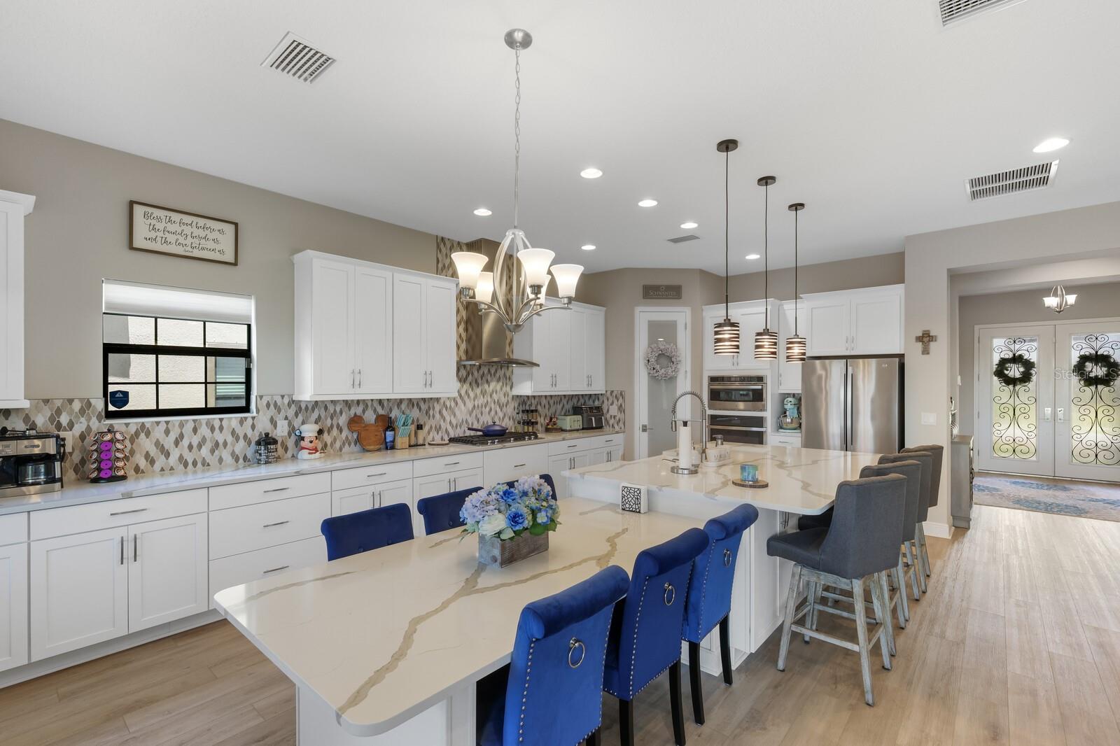 Welcome to your dream home in the vibrant community of Crosswind Ranch in Parrish! This stunning two-story residence, built in 2023, is a testament to modern luxury and functionality, boasting a plethora of upgrades that will exceed your expectations. As you approach, the fully sealed paver driveway sets the tone for the quality and attention to detail found throughout this home. Step through the screened front porch with clearview and 8 foot front door into the inviting great room, where natural light floods the space, creating an atmosphere of warmth and comfort. The heart of the home is the gourmet kitchen, featuring a vast quartz countertop island with additional seating, 42-inch upper cabinets, a gas cook top with hood, stainless steel appliances, and a walk-in pantry. Overlooking the great room, it's perfect for entertaining while preparing culinary delights. Downstairs offers versatility with a guest suite complete with a full bathroom and a conveniently located office with French doors for privacy. Step outside to the clear view screened porch, where you can relax and enjoy serene views of the pond, fenced in backyard, and nature preserve. Upstairs, discover an expansive loft area, ideal for games and fun or as a cozy retreat for movie nights. The luxurious master suite boasts an abundance of natural light, while the primary bathroom features a double vanity with quartz counter tops, a soaking tub, and a walk-in shower with a rainfall shower head. Additional highlights of this home include upgraded windows with tint for energy efficiency, whole-home gutters and downspouts, upgraded landscaping with lighting, and a backyard oasis with tiki lights and metal landscape edging. The highest elevation package ensures peace of mind, while pre-plumbing for an outdoor kitchen and a whole-home water filter and softener system add convenience. With natural gas run to the house for the range, tankless water heater, and dryer, efficiency and comfort are paramount. Experience luxury living at its finest in this meticulously crafted home, where every detail has been thoughtfully considered for your enjoyment and convenience. Schedule your showing today and make this exquisite residence your own!