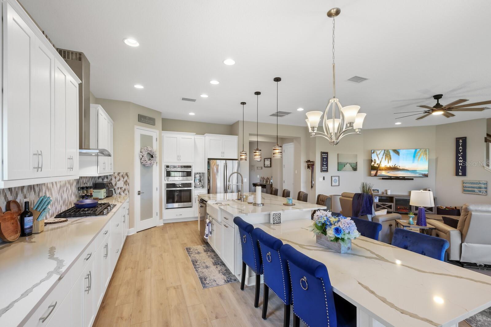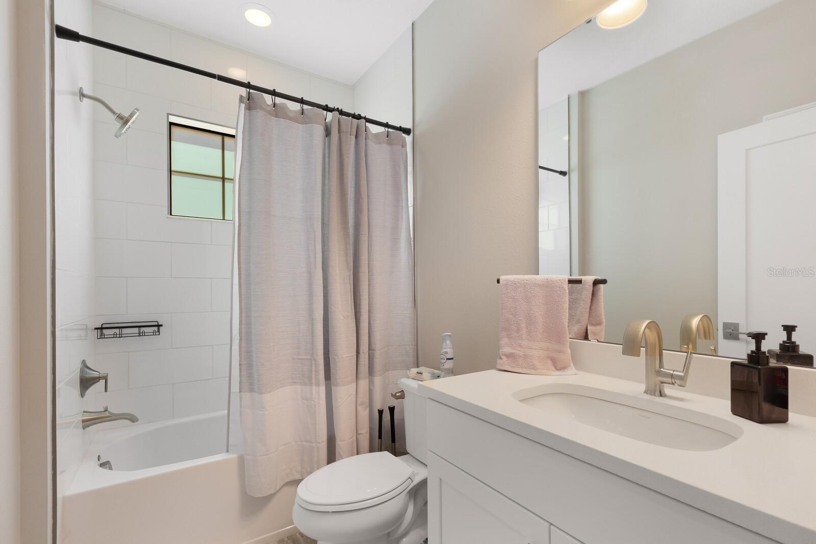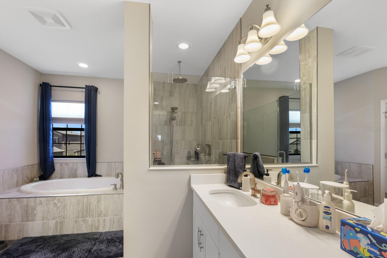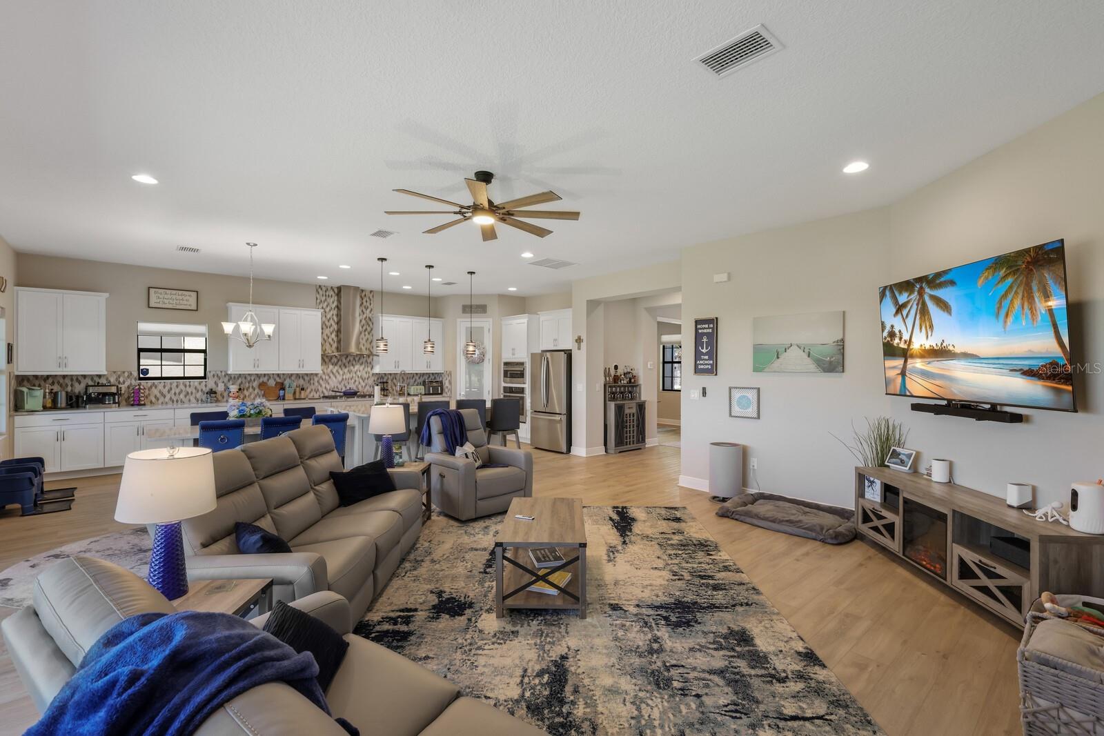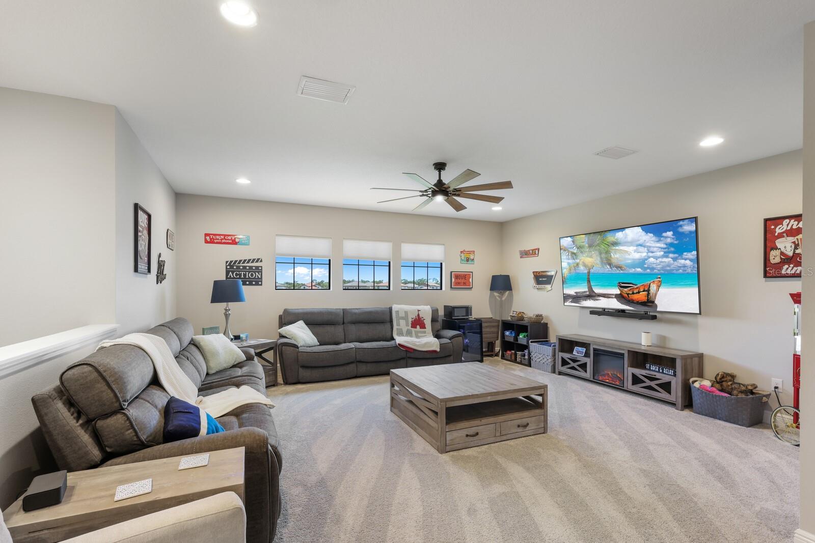 Welcome to your dream home in the vibrant community of Crosswind Ranch in Parrish! This stunning two-story residence, built in 2023, is a testament to modern luxury and functionality, boasting a plethora of upgrades that will exceed your expectations. As you approach, the fully sealed paver driveway sets the tone for the quality and attention to detail found throughout this home. Step through the screened front porch with clearview and 8 foot front door into the inviting great room, where natural light floods the space, creating an atmosphere of warmth and comfort. The heart of the home is the gourmet kitchen, featuring a vast quartz countertop island with additional seating, 42-inch upper cabinets, a gas cook top with hood, stainless steel appliances, and a walk-in pantry. Overlooking the great room, it's perfect for entertaining while preparing culinary delights. Downstairs offers versatility with a guest suite complete with a full bathroom and a conveniently located office with French doors for privacy. Step outside to the clear view screened porch, where you can relax and enjoy serene views of the pond, fenced in backyard, and nature preserve. Upstairs, discover an expansive loft area, ideal for games and fun or as a cozy retreat for movie nights. The luxurious master suite boasts an abundance of natural light, while the primary bathroom features a double vanity with quartz counter tops, a soaking tub, and a walk-in shower with a rainfall shower head. Additional highlights of this home include upgraded windows with tint for energy efficiency, whole-home gutters and downspouts, upgraded landscaping with lighting, and a backyard oasis with tiki lights and metal landscape edging. The highest elevation package ensures peace of mind, while pre-plumbing for an outdoor kitchen and a whole-home water filter and softener system add convenience. With natural gas run to the house for the range, tankless water heater, and dryer, efficiency and comfort are paramount. Experience luxury living at its finest in this meticulously crafted home, where every detail has been thoughtfully considered for your enjoyment and convenience. Schedule your showing today and make this exquisite residence your own!