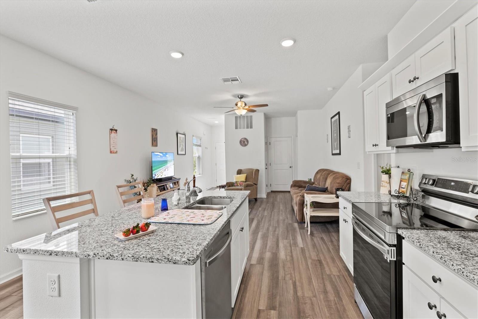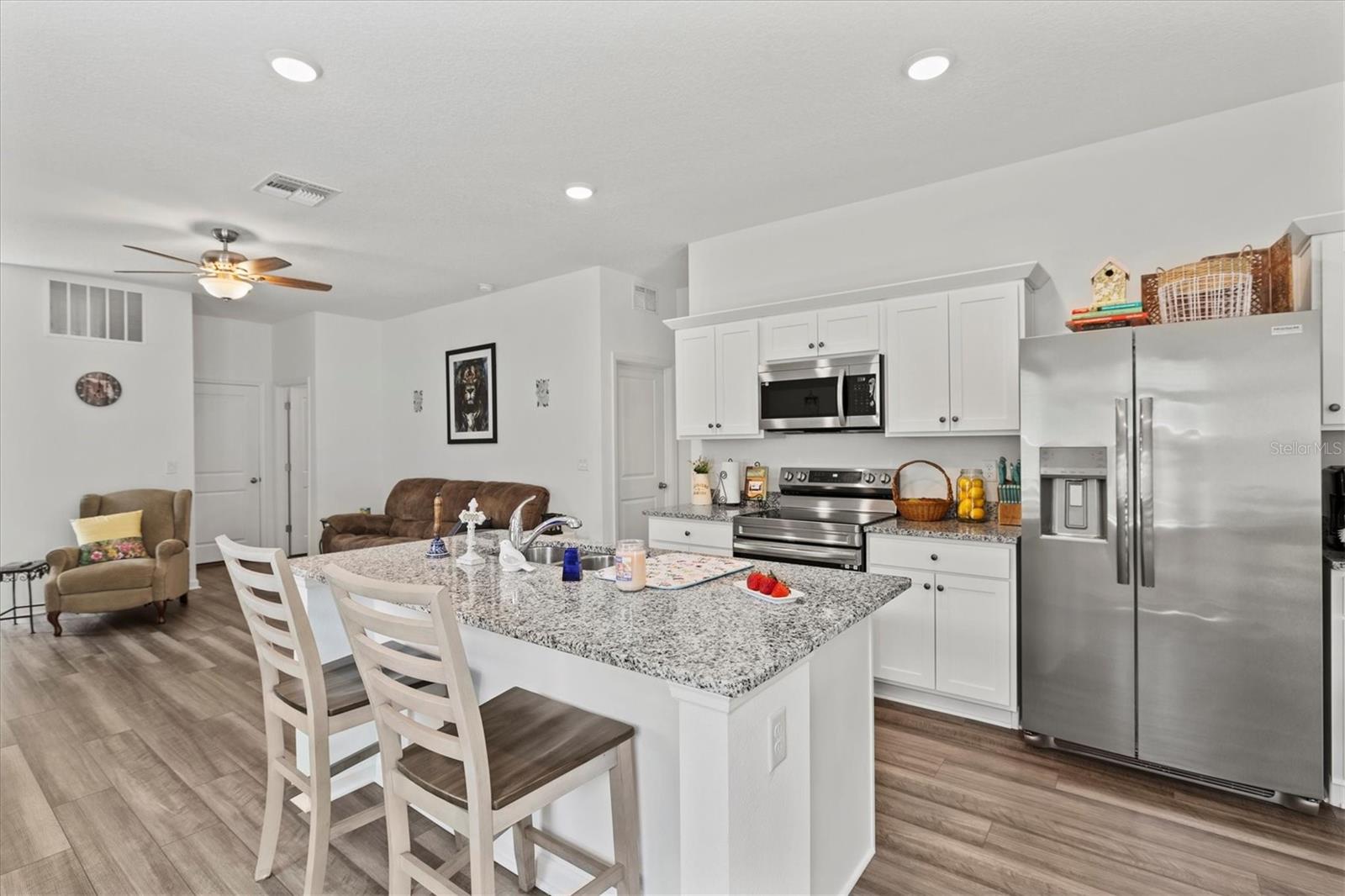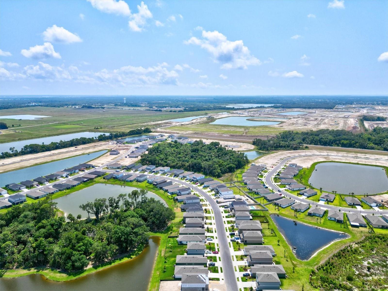 Introducing a pinnacle of contemporary living within the sought-after Summerwoods enclave of Parrish, on ONE OF THE BEST backdrops with stunning WATER VIEWS. The Odyssey model is a freshly constructed, METICULOUSLY designed 3-bedroom, 2-bathroom haven harmonizing style and practicality. Situated on a PREMIUM WATER VIEW lot, this exceptional STARLIGHT HOMES abode assures a lifestyle of unrivaled comfort and convenience. Step into a realm of modern refinement upon crossing the threshold, where a seamless OPEN LAYOUT floods the space with NATURAL LIGHT, fostering an inviting atmosphere throughout. Thoughtfully arranged, the design effortlessly caters to both entertaining and intimate family gatherings, offering a versatile canvas for your lifestyle needs. Indulge in culinary delights in the stunning kitchen, showcasing GRANITE countertops, stainless steel appliances, a SPACIOUS island, and abundant cabinetry accented with exquisite hardware. Step outside onto the back patio and unwind as you admire the SERENE pond view. Unwind to the comfort of the Owner’s Suite, offering a tranquil water vista, a WALK-IN closet, and a generously sized, MODERN bathroom with a walk-in shower. This home boasts an ARRAY OF UPGRADES designed to enhance both its aesthetic appeal and functionality. LUXURY VINYL flooring adorns the living room and guest bedroom, adding a touch of sophistication and durability to these spaces. A SEAMLESS GUTTER SYSTEM ensures efficient water drainage, while MARBLE WINDOWSILLS exude elegance. CUSTOM BLINDS plus the FLUSH CEILING LIGHTS were upgraded to stylish ceiling fans, enhancing both the aesthetic appeal and functionality of the room. HURRICANE SHUTTERS provide peace of mind and protection during inclement weather. These thoughtful upgrades elevate the home's overall allure. Summerwoods offers an unparalleled living experience with amenities designed for families, including: resort style Pool with Pavilion and splash pad, play, relax and unwind in style. Walking Trails to embrace the outdoors with scenic paths. Playground, Perfect for fun and activities. Its convenient location provides easy access to I-75 for a quick travel to Sarasota, St. Pete, Tampa, Lakewood Ranch, as well as nearby shops, restaurants, and beautiful gulf coast beaches. In very close proximity you will also find Ellenton Premium Outlets and Ellenton Ice Skating Rink. Immerse yourself in the allure of Parrish where contemporary living harmonizes with community warmth. Seize the opportunity to claim this residence as your own - we promise you’ll never want to leave!