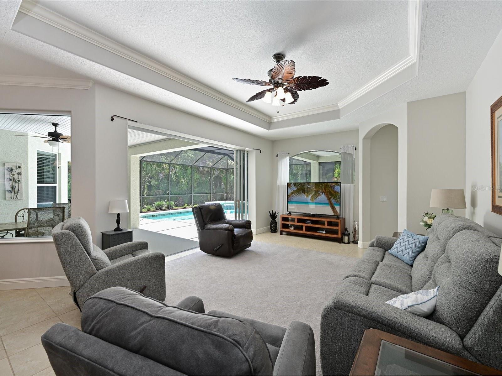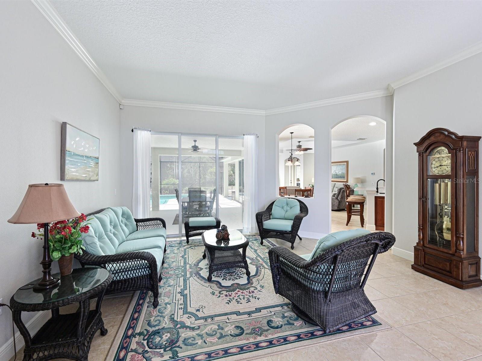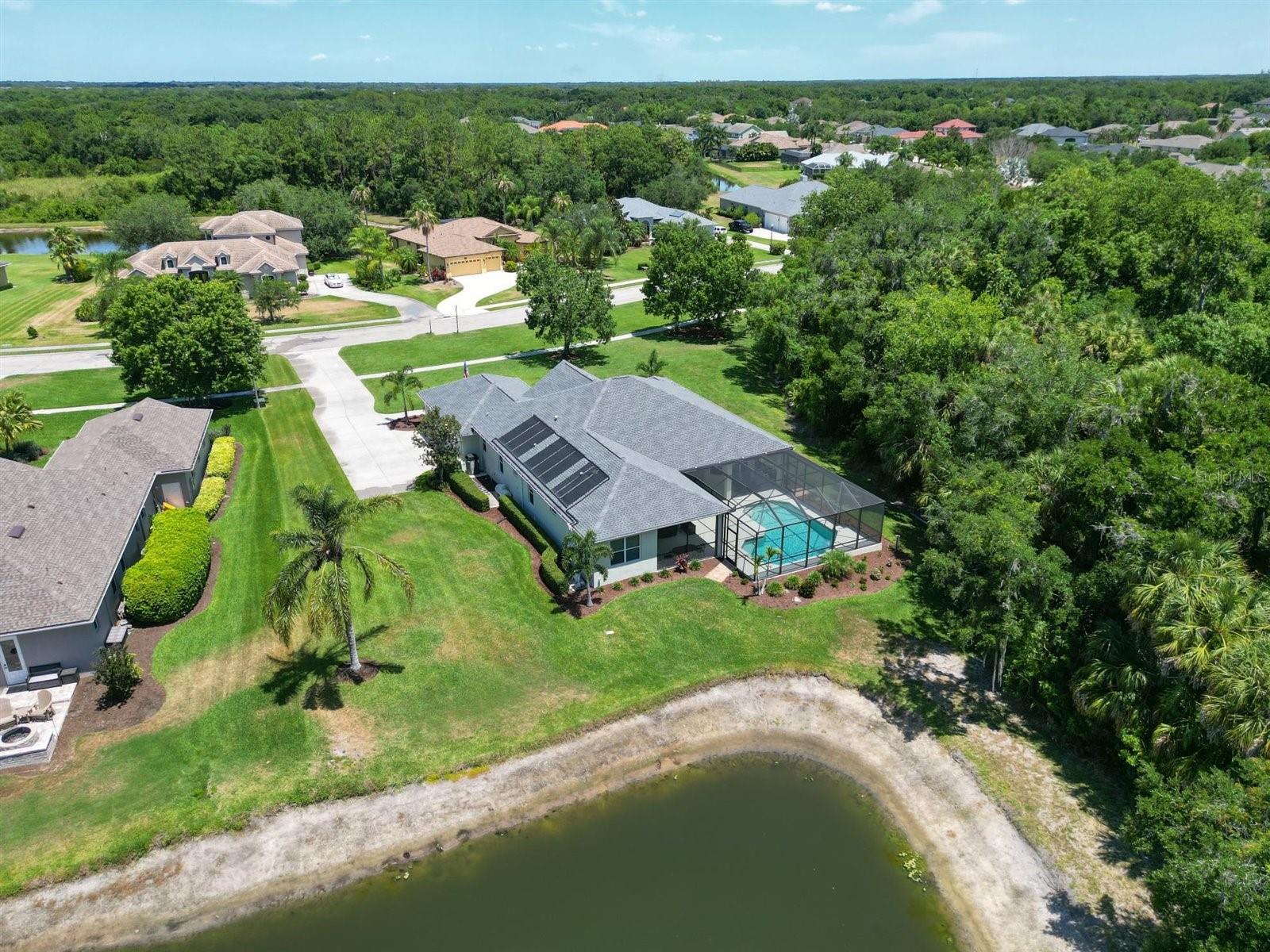 Complete privacy nestled on a full acre best describes this executive home in the tranquil community Twin Rivers of Parrish, FL. This stunning property, built in 2006, has 2672 sq ft and offers an unparalleled living experience with its complete privacy, scenic water view, and positioned adjacency to a conservation area. Enjoy the beauty and serenity of nature right at your doorstep while benefiting from modern comforts and luxurious amenities. Upon entering this the double entry doors of this magnificent residence, you are aware of the open and airy floor plan enhanced by soaring 9 & 10-foot ceilings that are adorned with crown molding and wide base floor moldings, adding a touch of elegance and sophistication. The home features four spacious bedrooms and three full baths, providing ample space for family and guests. The interior has been thoughtfully updated with new appliances, new backsplash, new floors, a new roof, and a new HVAC system, ensuring a move-in-ready experience with no detail overlooked. The heart of this home is the exquisite kitchen, equipped with recent state-of-the-art appliances and designed for both functionality and style. A gas cook top in the kitcehn makes all gourmet cooks happy! Adjacent to the kitchen is a formal dining room perfect for hosting dinner parties and special occasions. The formal living room offers a refined space for entertaining, while a private den provides a quiet retreat with views overlooking the Pebbletek saltwater pool that also has a lovely waterfall feature. Speaking of the pool, this home boasts an elegant saltwater solar-heated pool surrounded by lush landscaping, creating an idyllic outdoor oasis. The pool area is perfect for relaxing on sunny days or entertaining guests in a resort-like setting. The property also includes a security system, built-in closet designs, and several transom lights that enhance the natural light throughout the home. The master suite is a true sanctuary, featuring a luxurious walk-in shower and a soaking tub, providing a spa-like experience at home. Each additional bedroom is generously sized, offering comfort and privacy for everyone in the household. There is even private office space with hardwood floors and french doors for the work from home types. A unique feature of this property is the expansive three-car side entry garage. The garage has extended length to easily accommodates a long bed truck or boat. Get that golf cart you always wanted..there is plenty of space. Recent interior and exterior repainting add a fresh touch, ensuring there is nothing left to do except move in and enjoy the incredible lifestyle this home offers. Parrish is a thriving community experiencing significant growth, with new schools and fantastic amenities. Its prime location offers convenient access to Tampa, St. Petersburg, and Sarasota, all within an hour's drive. Experience the perfect blend of luxury, comfort, and convenience at 15449 Mulholland Rd. This exceptional property offers a unique opportunity to own a piece of paradise in one of Florida's most desirable areas. Don't miss out on making this dream home your reality. Schedule a private showing today and discover the unparalleled charm and elegance of this executive estate.