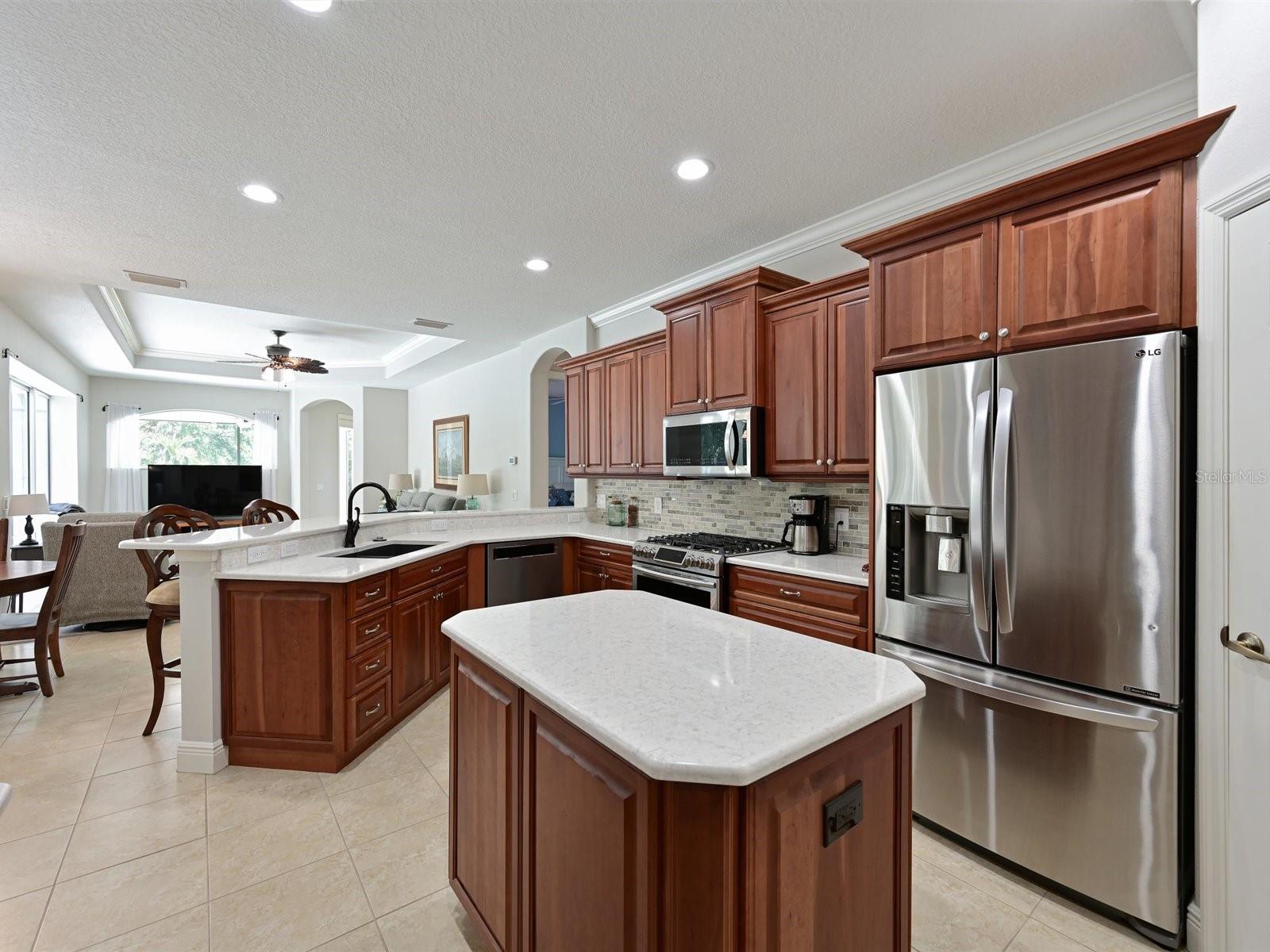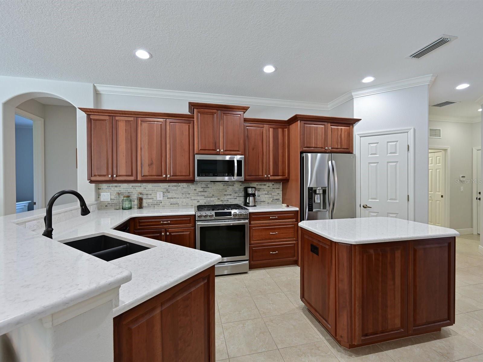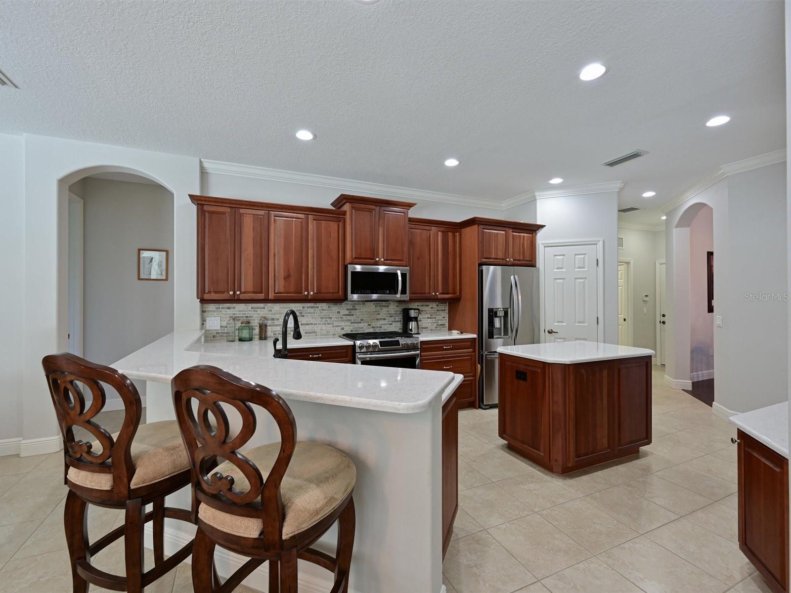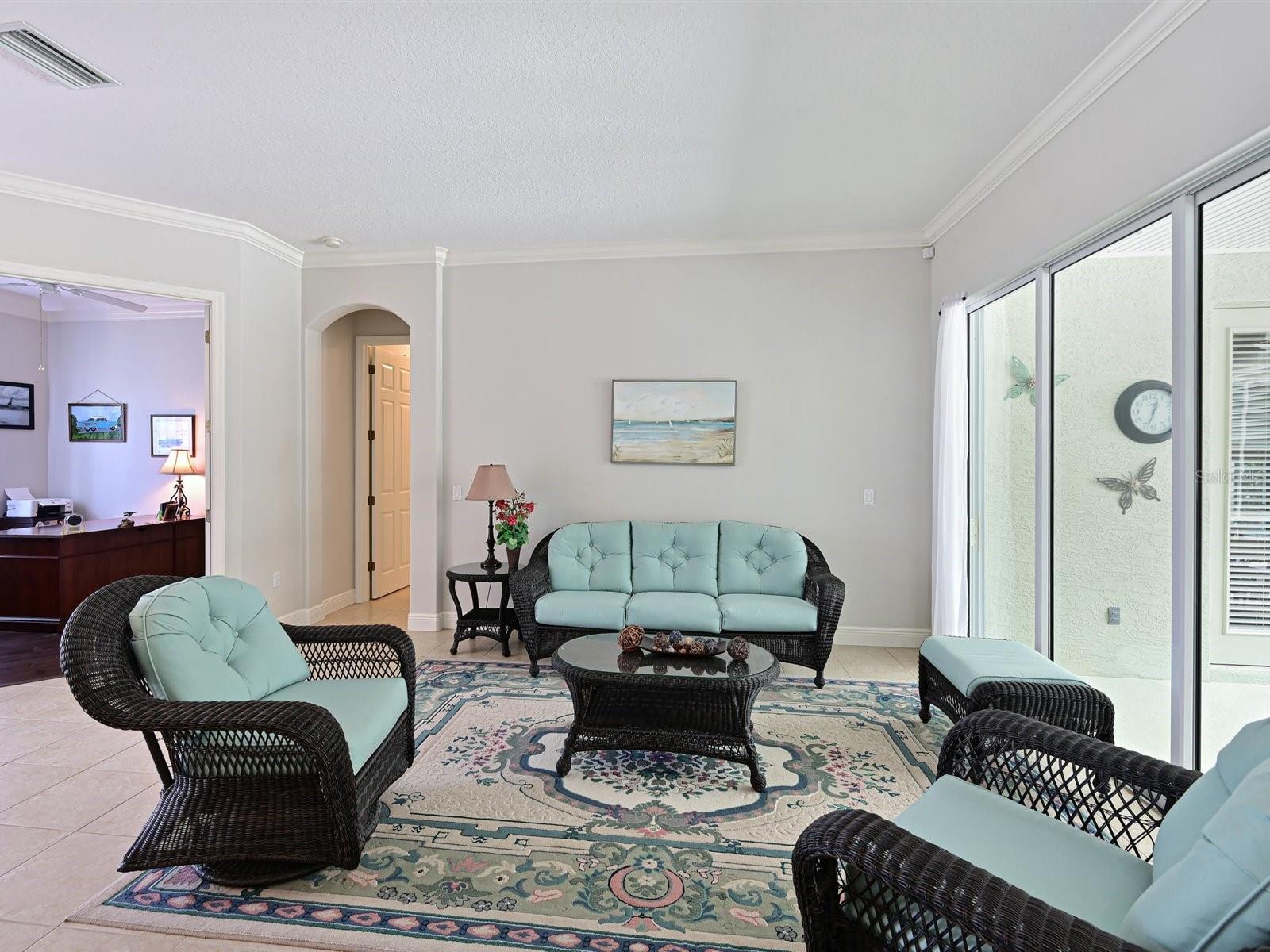 Complete privacy nestled on a full acre best describes this executive home in the tranquil community Twin Rivers of Parrish, FL. This stunning property, built in 2006, has 2672 sq ft and offers an unparalleled living experience with its complete privacy, scenic water view, and positioned adjacency to a conservation area. Enjoy the beauty and serenity of nature right at your doorstep while benefiting from modern comforts and luxurious amenities. Upon entering this the double entry doors of this magnificent residence, you are aware of the open and airy floor plan enhanced by soaring 9 & 10-foot ceilings that are adorned with crown molding and wide base floor moldings, adding a touch of elegance and sophistication. The home features four spacious bedrooms and three full baths, providing ample space for family and guests. The interior has been thoughtfully updated with new appliances, new backsplash, new floors, a new roof, and a new HVAC system, ensuring a move-in-ready experience with no detail overlooked. The heart of this home is the exquisite kitchen, equipped with recent state-of-the-art appliances and designed for both functionality and style. A gas cook top in the kitcehn makes all gourmet cooks happy! Adjacent to the kitchen is a formal dining room perfect for hosting dinner parties and special occasions. The formal living room offers a refined space for entertaining, while a private den provides a quiet retreat with views overlooking the Pebbletek saltwater pool that also has a lovely waterfall feature. Speaking of the pool, this home boasts an elegant saltwater solar-heated pool surrounded by lush landscaping, creating an idyllic outdoor oasis. The pool area is perfect for relaxing on sunny days or entertaining guests in a resort-like setting. The property also includes a security system, built-in closet designs, and several transom lights that enhance the natural light throughout the home. The master suite is a true sanctuary, featuring a luxurious walk-in shower and a soaking tub, providing a spa-like experience at home. Each additional bedroom is generously sized, offering comfort and privacy for everyone in the household. There is even private office space with hardwood floors and french doors for the work from home types. A unique feature of this property is the expansive three-car side entry garage. The garage has extended length to easily accommodates a long bed truck or boat. Get that golf cart you always wanted..there is plenty of space. Recent interior and exterior repainting add a fresh touch, ensuring there is nothing left to do except move in and enjoy the incredible lifestyle this home offers. Parrish is a thriving community experiencing significant growth, with new schools and fantastic amenities. Its prime location offers convenient access to Tampa, St. Petersburg, and Sarasota, all within an hour's drive. Experience the perfect blend of luxury, comfort, and convenience at 15449 Mulholland Rd. This exceptional property offers a unique opportunity to own a piece of paradise in one of Florida's most desirable areas. Don't miss out on making this dream home your reality. Schedule a private showing today and discover the unparalleled charm and elegance of this executive estate.