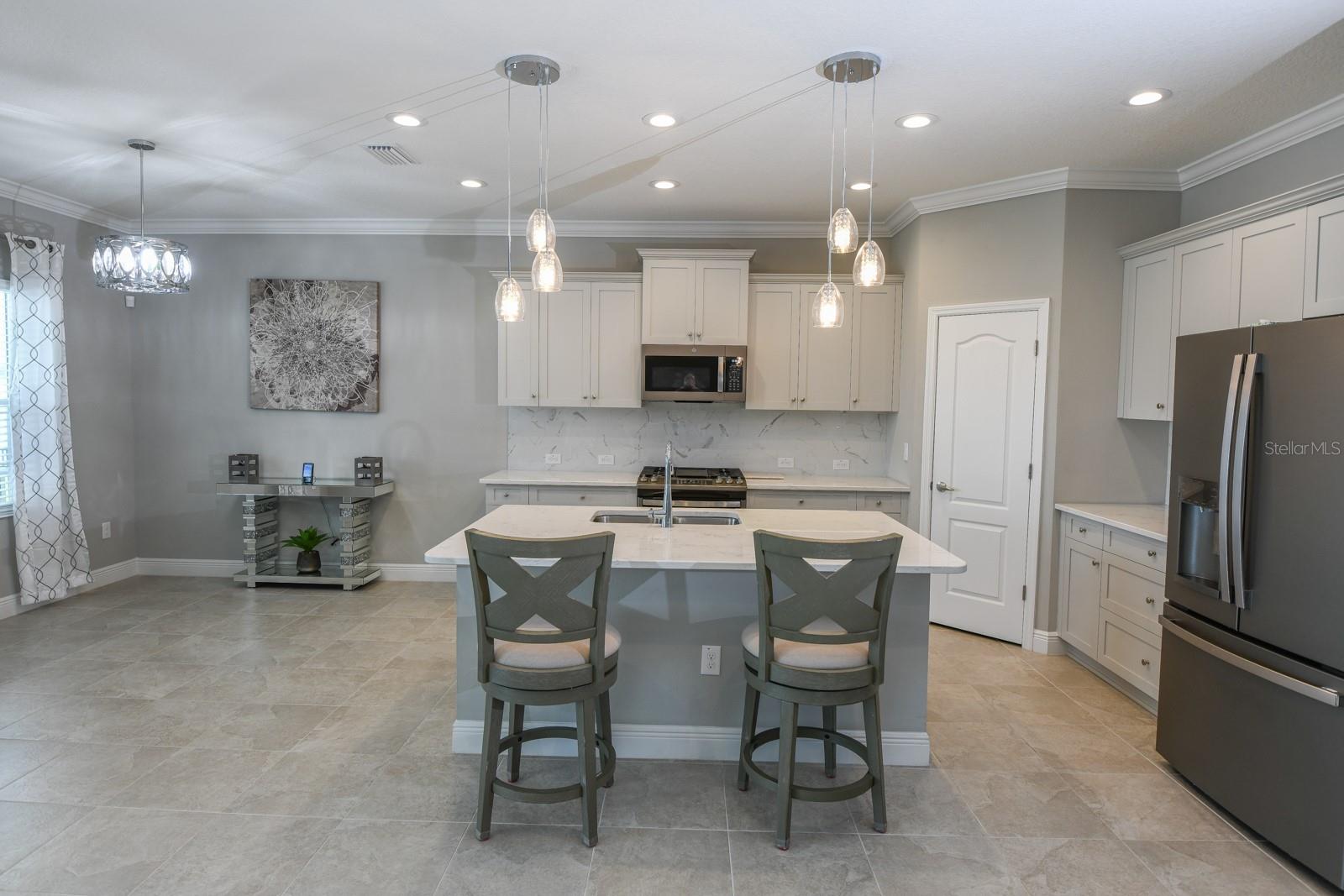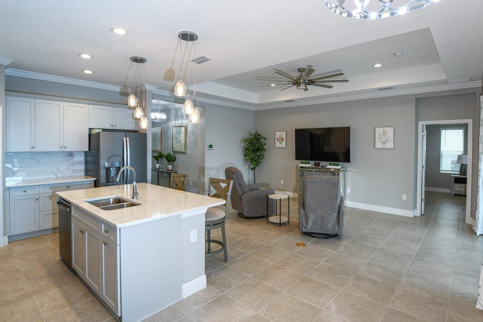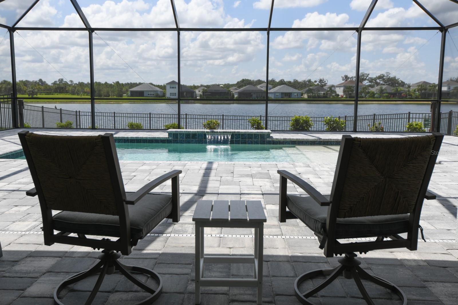 Welcome to your modern oasis! This stunning 3-bedroom, 2-bathroom home, built in 2022, offers a perfect blend of contemporary design and serene waterfront living.The spacious open-concept layout seamlessly connects the living room, dining area, and kitchen, creating an ideal space for both relaxation and entertaining. The living room invites natural light and offers breathtaking views of the tranquil water beyond.The kitchen boasts sleek quartz countertops, stainless steel appliances, ample cabinet space, and a convenient center island with a breakfast bar. Whether you're preparing a quick meal or hosting a dinner party, this kitchen overlooks the water view as does the dining area. The versatile den is perfect for use as a home office, study, or additional guest room. The master suite is a true sanctuary, offering a spacious bedroom, 2 walk-in closets, and a master bathroom complete with dual sinks and a separate glass-enclosed shower. Two additional bedrooms provide comfortable accommodations for family members or guests, and a second full bathroom ensures everyone's comfort and convenience.Step outside to your own private paradise! The expansive backyard is an entertainer's delight, featuring a sparkling pool where you can cool off on hot summer days, a covered patio area, and landscaping that enhances the natural beauty of the surroundings. Whether you're hosting a barbecue with friends or simply enjoying a quiet evening under the stars, this outdoor space is sure to impress.Located in the desirable Silverleaf neighborhood, this home offers the perfect combination of privacy and convenience. With easy access to shopping, dining, parks, and top-rated schools, you'll have everything you need right at your fingertips. Everything you need is at the Silverleaf clubhouse, Poolside kitchen, Workout room, Resort style pool & Spa, Basketball court, dog Parks, Playground and Picnic areas. Located convenient to Sarasota, Bradenton, St Petersburg and Tampa. Don't miss your opportunity to make this dream home yours. Schedule a showing today and start living the waterfront lifestyle you've always imagined!