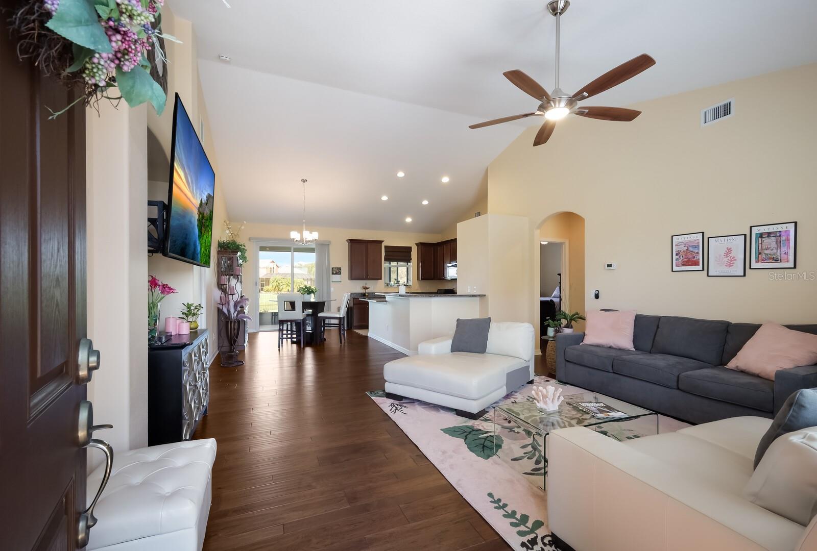 Welcome to your new home in the serene and sought-after community of River Plantation in Parrish, Florida. This spacious and inviting residence is designed to cater to your active lifestyle while providing the utmost in comfort and style. As you approach the property, you'll be greeted by meticulously manicured landscaping, adding to the charm of this cul-de-sac gem. The true highlight of this home, however, awaits you in the backyard – a fenced oasis with captivating views of the lake, offering a serene retreat right in your own backyard. Whether you're hosting a summer barbecue or simply unwinding with a glass of wine, this expansive outdoor space will become your favorite retreat. Discover both a screened rear porch and front porch, perfect for enjoying Florida's beautiful weather year-round. Inside, this 1,640 square foot home features an open floor plan with vaulted ceilings and elegant wood floors. The kitchen boasts granite countertops and an oversized island that doubles as a breakfast bar, complemented by an abundance of cabinets and closets to meet all your storage needs. Natural light pours into the living spaces, enhancing the home's cheerful atmosphere. Privacy is a priority with the thoughtfully designed split floor plan. On one side of the house, you'll find the primary quarters. The ensuite primary bathroom features dual vanities with granite countertops and a spacious walk-in shower. The primary shower's open design and high fixtures accommodate taller individuals with ease. On the other side of the home, two additional bedrooms share a well-appointed bathroom. The two-car garage is equipped with custom overhead shelving for ample storage space, ensuring everything has its place. Recent upgrades include the addition of an R/O water system and water softener in May 2022, along with ultraviolet treatment installed in August 2023 to maintain the highest water quality. Beyond the comforts of your new home, the River Plantation community offers an array of amenities, including a refreshing pool, tennis courts, basketball courts, a playground, and scenic parks. With easy access to the Skyway, you can reach St. Pete and St. Pete Beach within 20 minutes, making this location truly central to all your lifestyle needs. Located conveniently near I-75, Lakewood Ranch, Sarasota, Tampa, and St. Pete, you're never far from shopping, golf courses, boat ramps, and the world-renowned beaches that Florida is famous for.