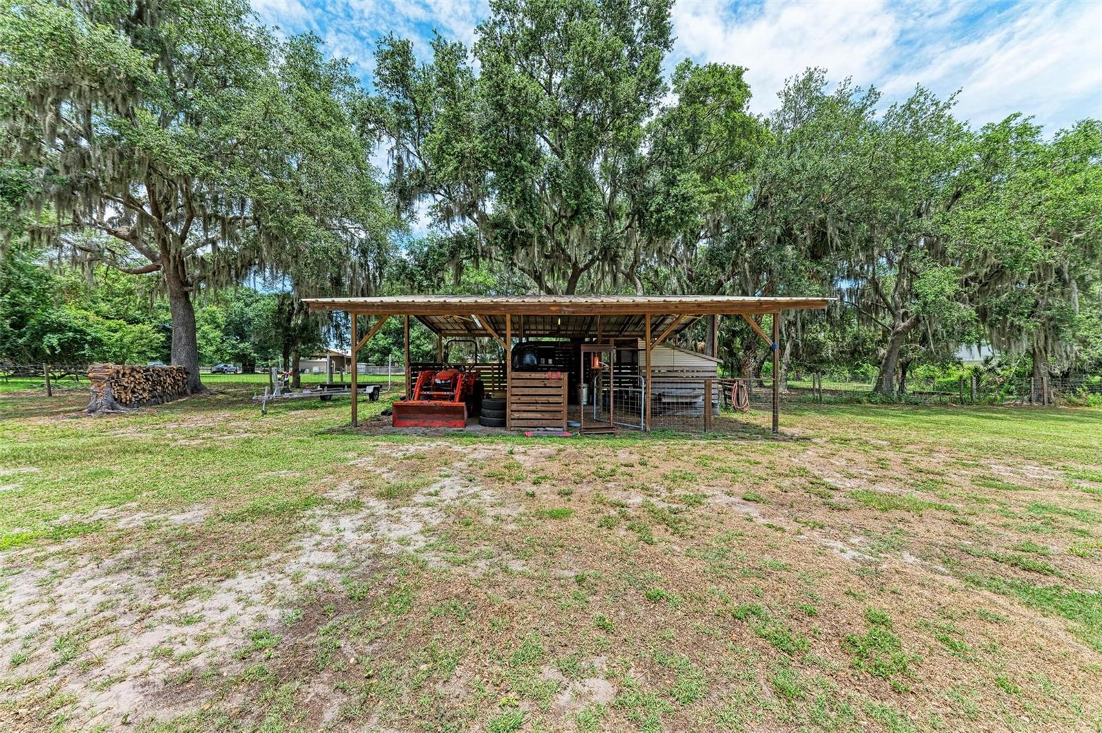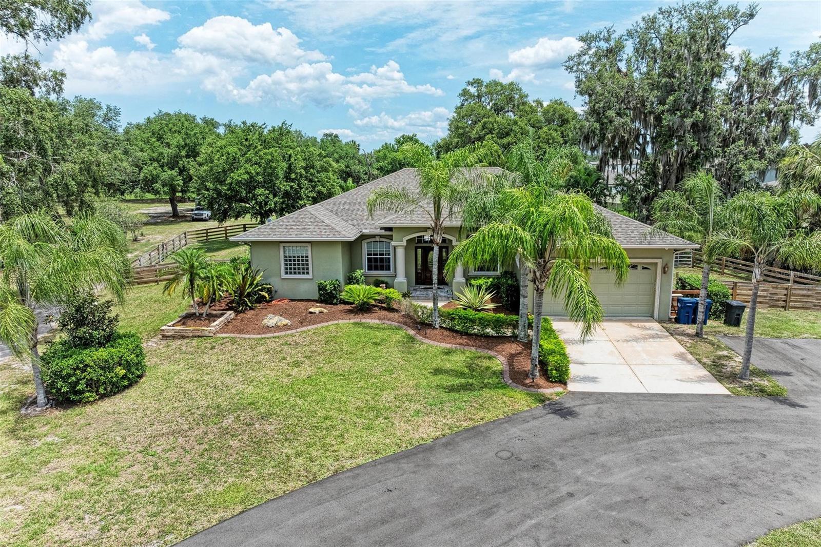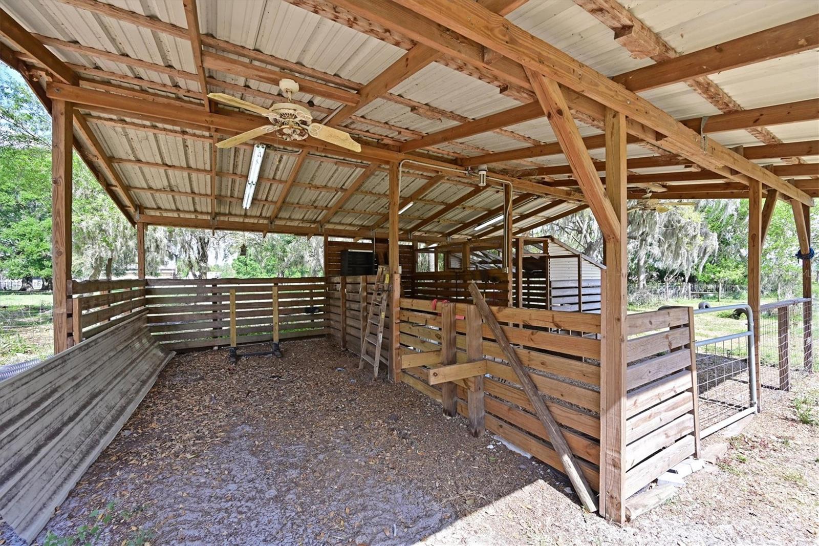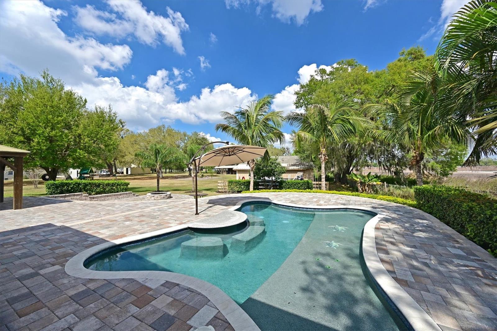 Land & Nature lovers, meet your new home! This beautiful estate is located on nearly 2 acres of property (partially fenced) and features a 40X36 Air conditioned workshop with half bathroom and dual overhangs, 14x36 and 36X36 for storing all your toys and a 2 stall barn with chicken coop so you can enjoy farm fresh eggs without the pain of inflation! A 250 gallon propane tank is buried on the property. This well-maintained 3/2 home has a newer roof (2018), beautiful new flooring (2018) security cameras, crown moulding and baseboards (installed 2018), central vacuum system, 2-16 SEER AC units 2018. The heated pool and patio were installed in 2019 and you will love the swim up bar and seating area for the ultimate in entertaining! The pergola adds charm and a place to entertain and griil for your guests. There's a well and sprinkler system along with access to county water for your convenience. Inside, you'll find custom features throughout including built-ins for storage, an owners suite with dual vanities, garden tub and separate shower and a guest bath with warm rustic vibes and dual sinks as well. I almost forgot the Massive owners WALK-IN Closet! This is paradise! "When you’re curious, you find lots of interesting things to do."~Walt Disney