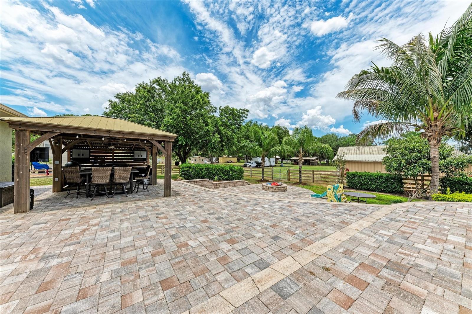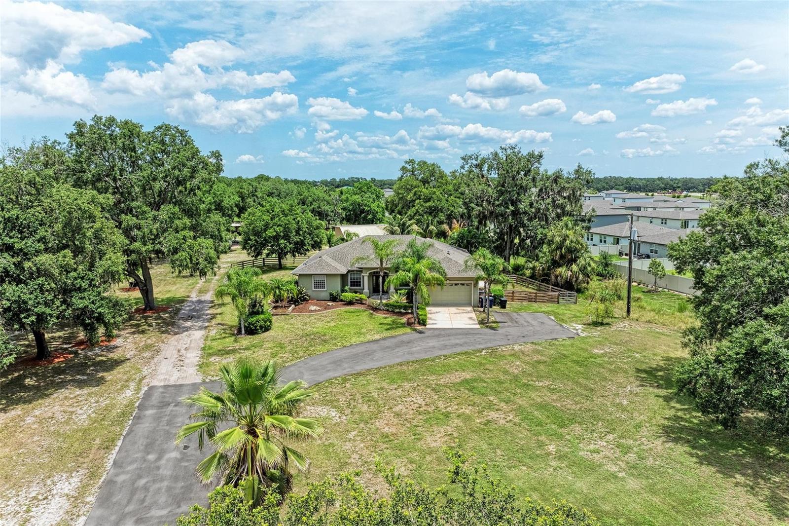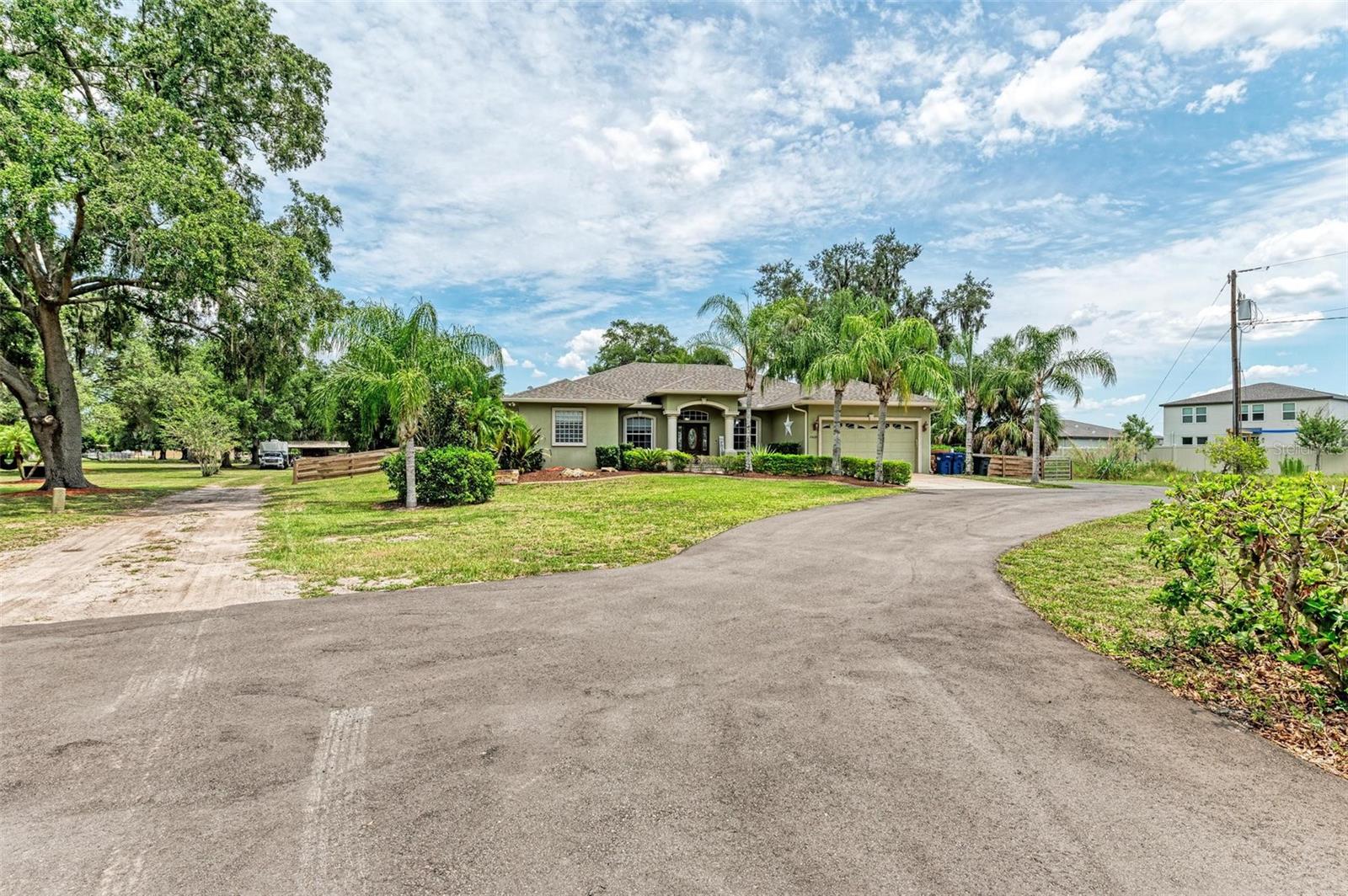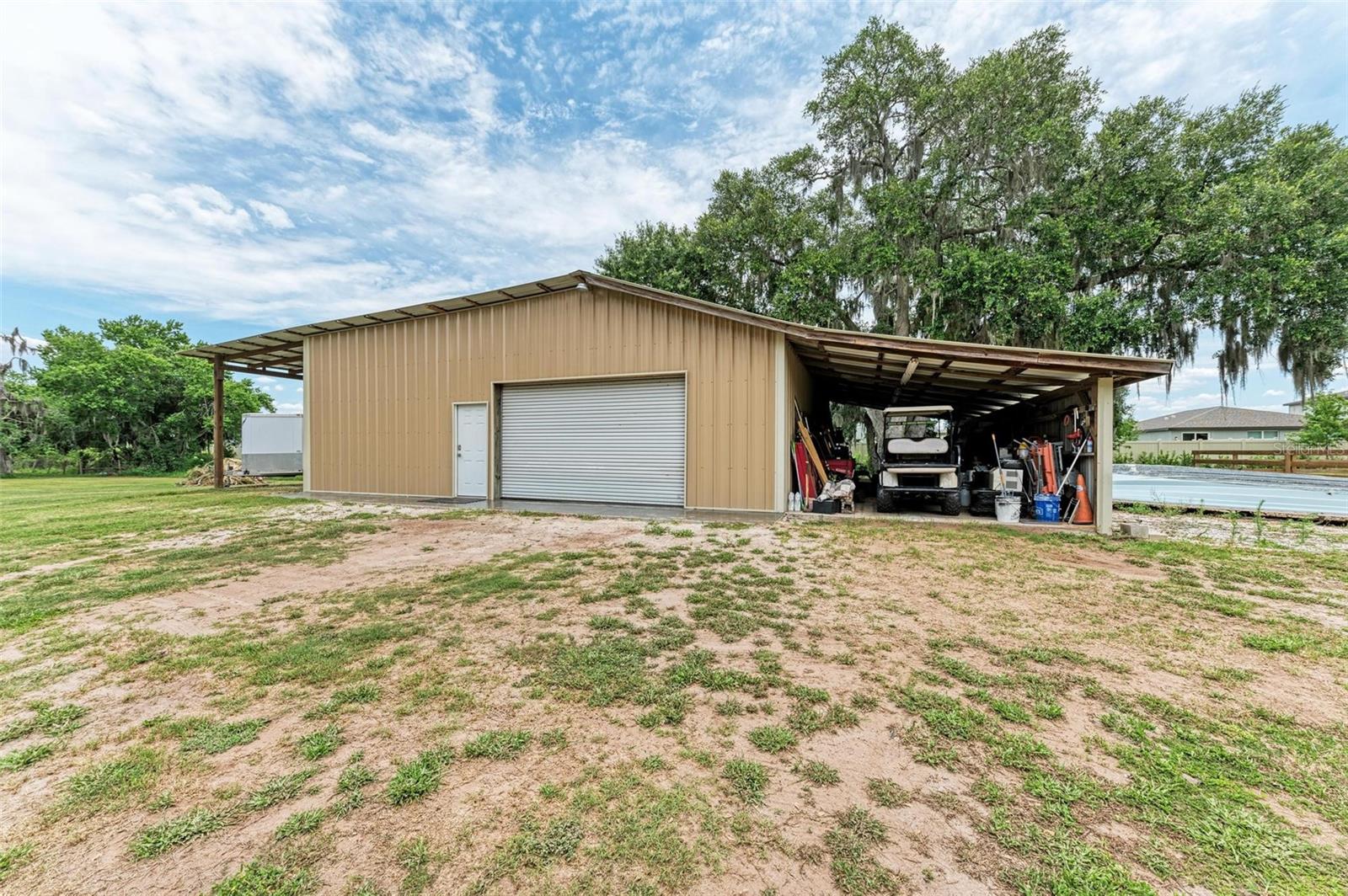 Land & Nature lovers, meet your new home! This beautiful estate is located on nearly 2 acres of property (partially fenced) and features a 40X36 Air conditioned workshop with half bathroom and dual overhangs, 14x36 and 36X36 for storing all your toys and a 2 stall barn with chicken coop so you can enjoy farm fresh eggs without the pain of inflation! A 250 gallon propane tank is buried on the property. This well-maintained 3/2 home has a newer roof (2018), beautiful new flooring (2018) security cameras, crown moulding and baseboards (installed 2018), central vacuum system, 2-16 SEER AC units 2018. The heated pool and patio were installed in 2019 and you will love the swim up bar and seating area for the ultimate in entertaining! The pergola adds charm and a place to entertain and griil for your guests. There's a well and sprinkler system along with access to county water for your convenience. Inside, you'll find custom features throughout including built-ins for storage, an owners suite with dual vanities, garden tub and separate shower and a guest bath with warm rustic vibes and dual sinks as well. I almost forgot the Massive owners WALK-IN Closet! This is paradise! "When you’re curious, you find lots of interesting things to do."~Walt Disney