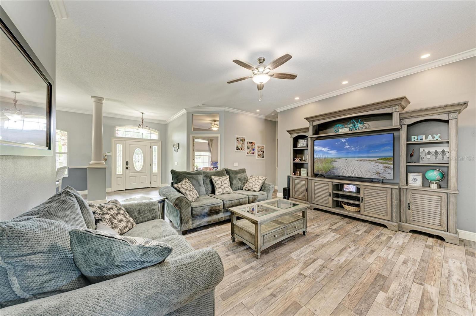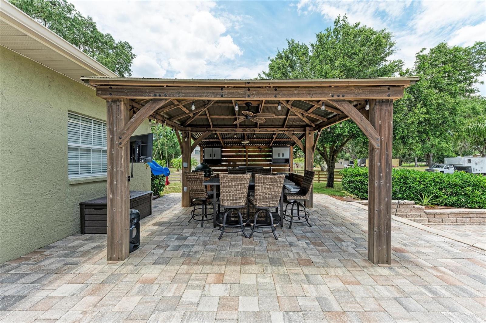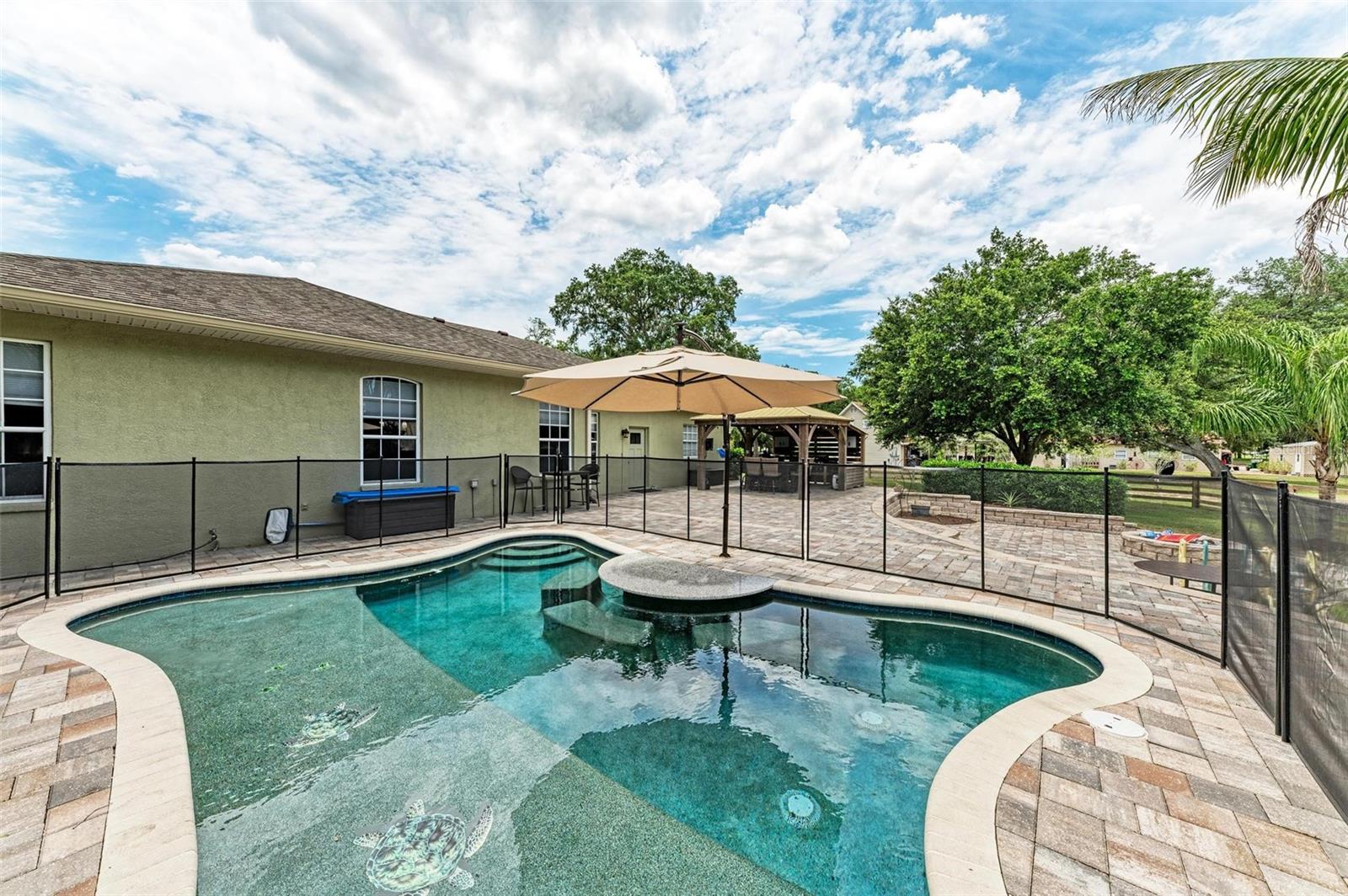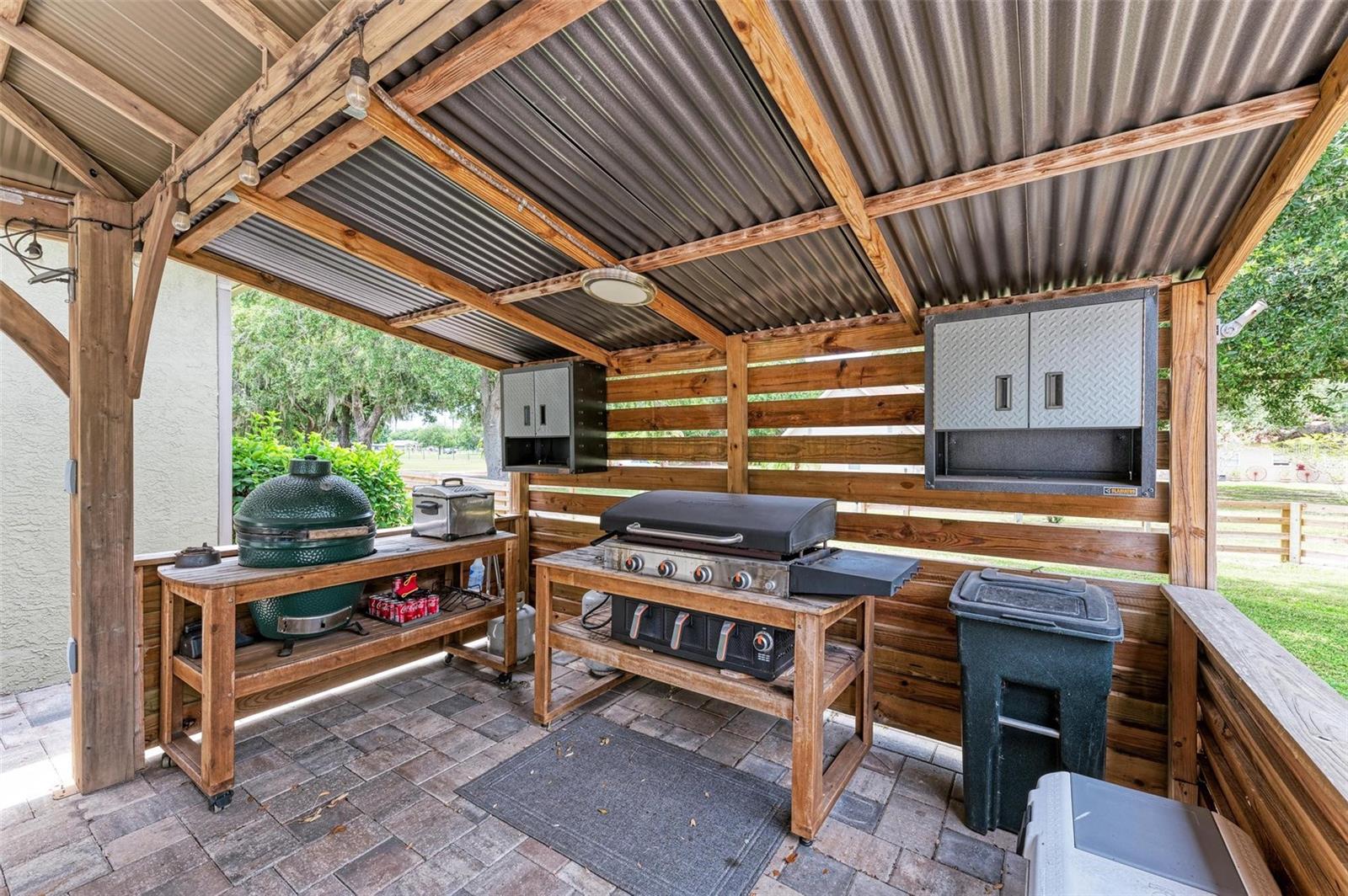 Land & Nature lovers, meet your new home! This beautiful estate is located on nearly 2 acres of property (partially fenced) and features a 40X36 Air conditioned workshop with half bathroom and dual overhangs, 14x36 and 36X36 for storing all your toys and a 2 stall barn with chicken coop so you can enjoy farm fresh eggs without the pain of inflation! A 250 gallon propane tank is buried on the property. This well-maintained 3/2 home has a newer roof (2018), beautiful new flooring (2018) security cameras, crown moulding and baseboards (installed 2018), central vacuum system, 2-16 SEER AC units 2018. The heated pool and patio were installed in 2019 and you will love the swim up bar and seating area for the ultimate in entertaining! The pergola adds charm and a place to entertain and griil for your guests. There's a well and sprinkler system along with access to county water for your convenience. Inside, you'll find custom features throughout including built-ins for storage, an owners suite with dual vanities, garden tub and separate shower and a guest bath with warm rustic vibes and dual sinks as well. I almost forgot the Massive owners WALK-IN Closet! This is paradise! "When you’re curious, you find lots of interesting things to do."~Walt Disney
