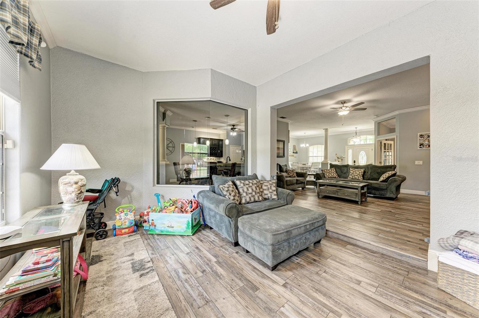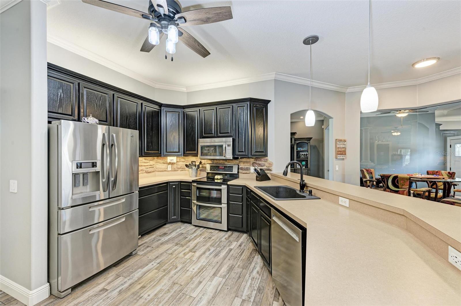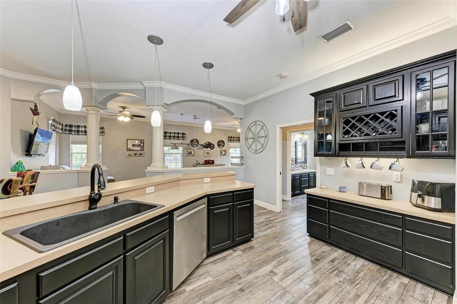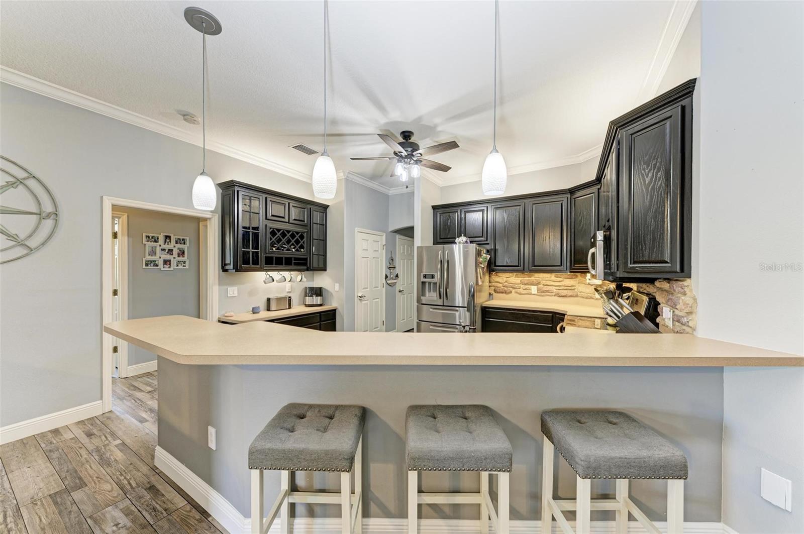 Land & Nature lovers, meet your new home! This beautiful estate is located on nearly 2 acres of property (partially fenced) and features a 40X36 Air conditioned workshop with half bathroom and dual overhangs, 14x36 and 36X36 for storing all your toys and a 2 stall barn with chicken coop so you can enjoy farm fresh eggs without the pain of inflation! A 250 gallon propane tank is buried on the property. This well-maintained 3/2 home has a newer roof (2018), beautiful new flooring (2018) security cameras, crown moulding and baseboards (installed 2018), central vacuum system, 2-16 SEER AC units 2018. The heated pool and patio were installed in 2019 and you will love the swim up bar and seating area for the ultimate in entertaining! The pergola adds charm and a place to entertain and griil for your guests. There's a well and sprinkler system along with access to county water for your convenience. Inside, you'll find custom features throughout including built-ins for storage, an owners suite with dual vanities, garden tub and separate shower and a guest bath with warm rustic vibes and dual sinks as well. I almost forgot the Massive owners WALK-IN Closet! This is paradise! "When you’re curious, you find lots of interesting things to do."~Walt Disney