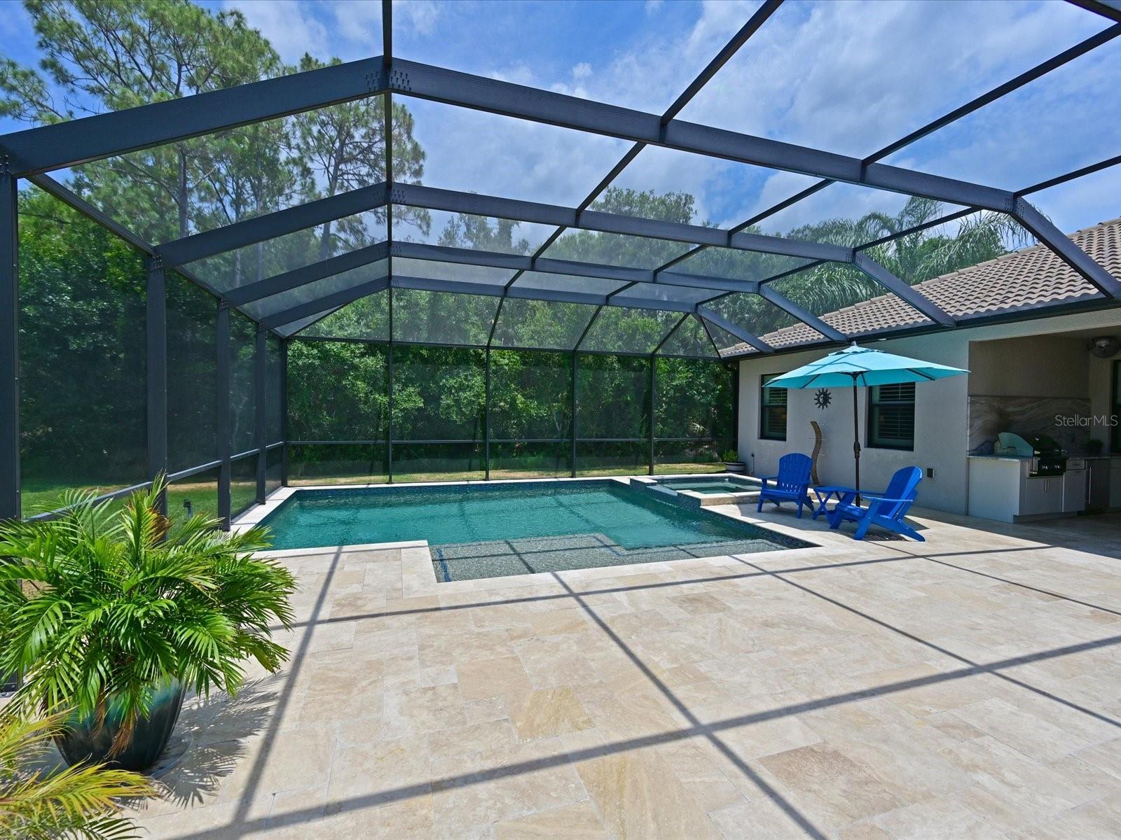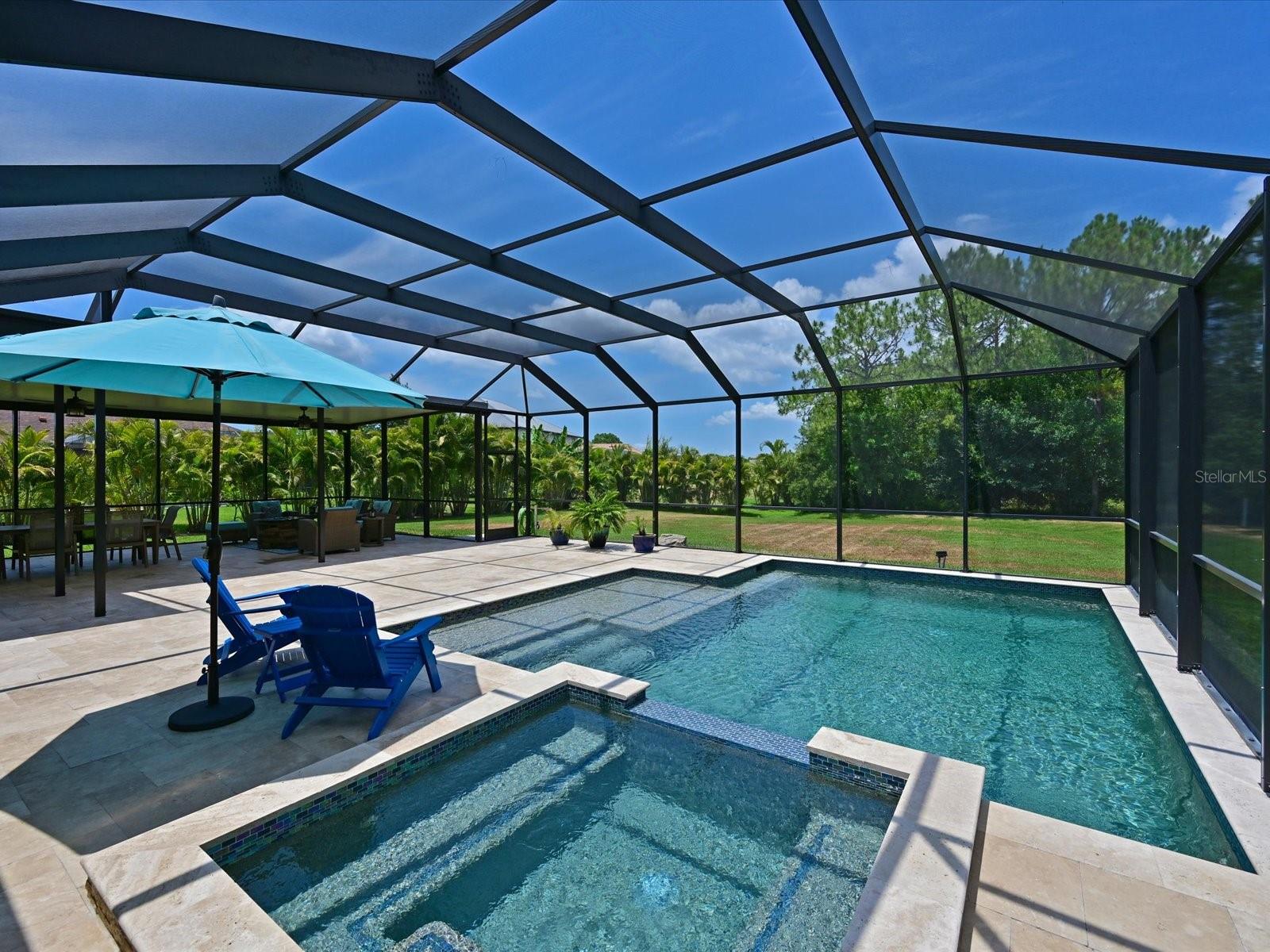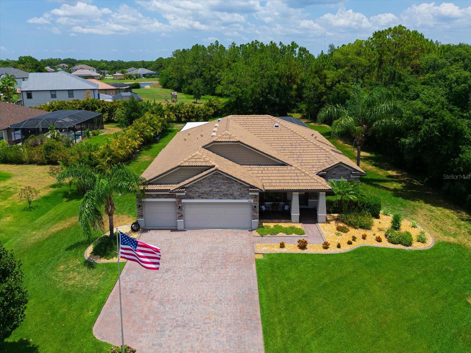 Love the outdoor lanai space for friends and family gatherings? Get ready for the WOW factor for 16006 Mulholland Rd, an exquisite 4-bedroom, 3-bathroom residence in Parrish, FL, offering unparalleled luxury and private living. This stunning home sits on a secluded half-acre lot, providing serene nature views with frequent visits from the local wildlife. It's a haven for those who value tranquility and elegance. As you approach this magnificent property, you’ll be captivated by the beautiful concrete tile roof and striking stack stone facade. The charm continues inside, where a unique in-law suite features a barn door slider that opens to a private den and bath, creating an ideal space for guests or extended family. The heart of this home is its expansive open great room concept, designed with meticulous attention to detail. Crown moldings and a built-in fireplace add a touch of sophistication, while the formal dining area boasts a warm and trendy shiplap wall accent; perfect for hosting memorable dinners. The spacious kitchen is a chef’s dream, equipped with tubular solar skylights located in the kitchen and great room that bathe the rooms in natural light. Granite countertops and a stylish glass backsplash complement the abundance of cabinets, which include custom pull-out shelving. A custom-made coffee bar enhances the kitchen’s functionality, making it a perfect spot for morning routines. Retreat to the massive 17 x 17 master bedroom which is newly carpeted for added comfort. The master suite includes a large walk-in closet and a luxurious bathroom featuring dual vanities and a glass-enclosed rain head shower, providing a spa-like experience right at home. Talk about the ultimate dance floor when you step outside to the lanai and discover a spectacular 40 x 50 travertine outdoor living space. This area is partially under roof, adding an impressive 2000 sq ft of additional living space thus making it ideal for large families or entertaining.The western side of the massive lanai has solar shades for added shade and comfort. The custom heated saltwater pool, with spa and sun deck is a highlight, complete with a solar pool cover to maintain optimal temperature and cleanliness. This area is so inviting you to rest and relax! The outdoor kitchen is perfect for alfresco dining, making every meal an experience. You might just decide to live outside full time! Additional WOW features of this home include plantation shutters, a paver driveway, and a comprehensive security system. Generator hookups for electric and propane ensure you're prepared for any situation, adding peace of mind. The radiant barrier roof sheathing ensures low utility bills, enhancing the home’s energy efficiency. Perhaps one of the most popular features of the Twin Rivers community lys in the access to the Manatee River Riverhouse; where residents have private access to the boat dock and boat launch. A great excuse to buy that boat or kayak you have been wanting!! Located in a rapidly growing area, this property offers easy access to Tampa, St. Petersburg, Sarasota, and Bradenton, making it a prime spot for those who commute or enjoy exploring the vibrant surrounding cities. Don’t miss the opportunity to own this luxurious, well-appointed home at 16006 Mulholland Rd. It's not just a house; it’s a lifestyle upgrade in the heart of Parrish, FL.