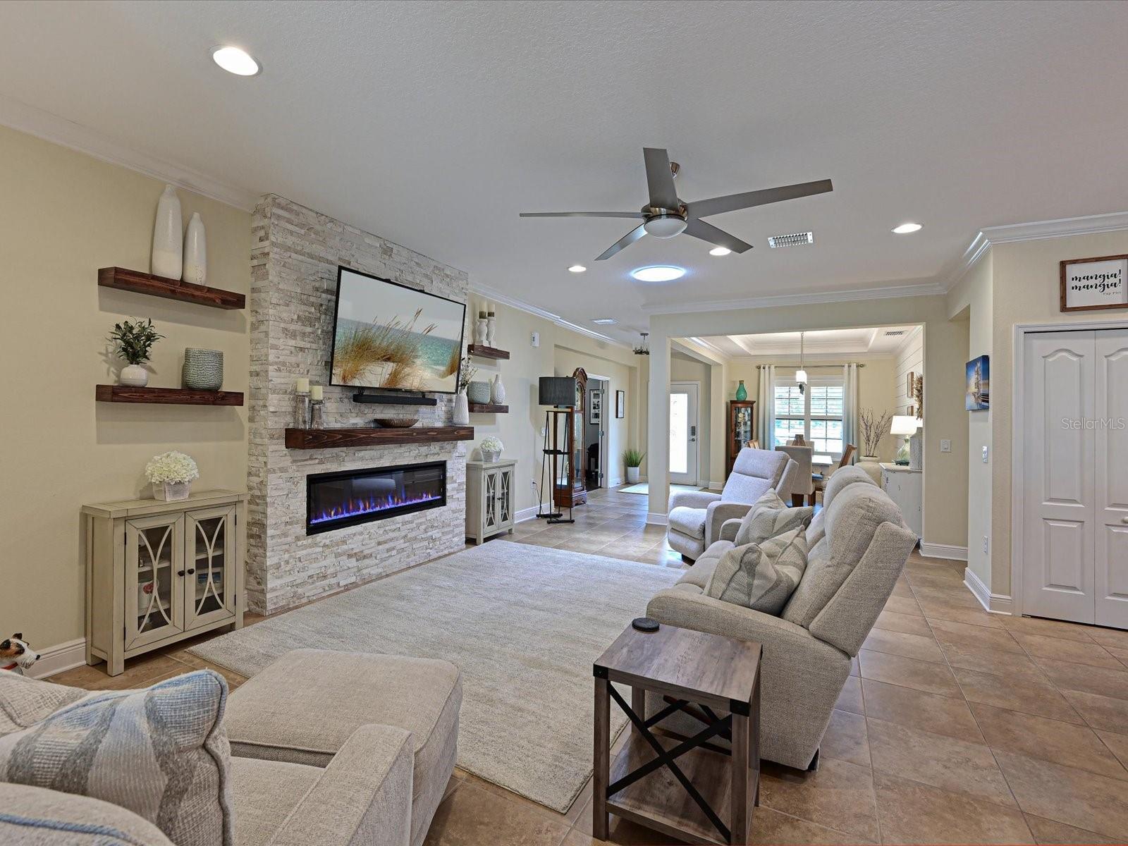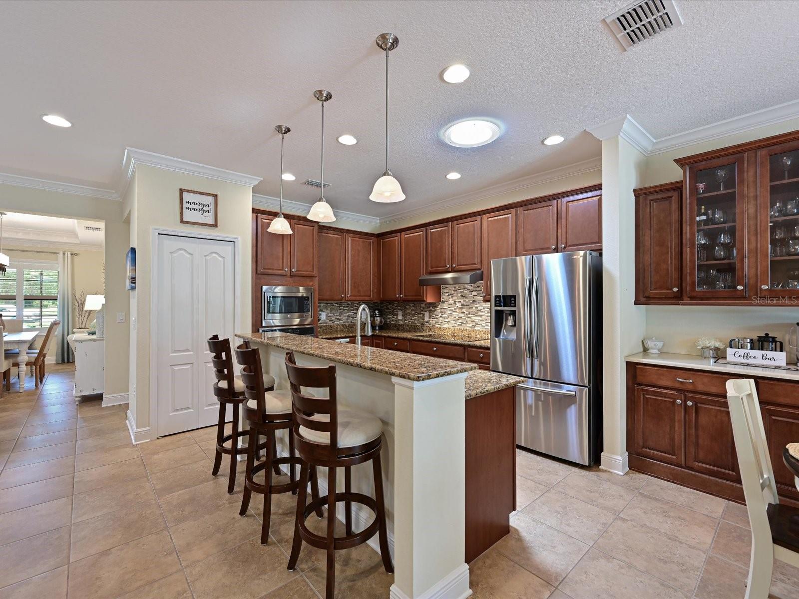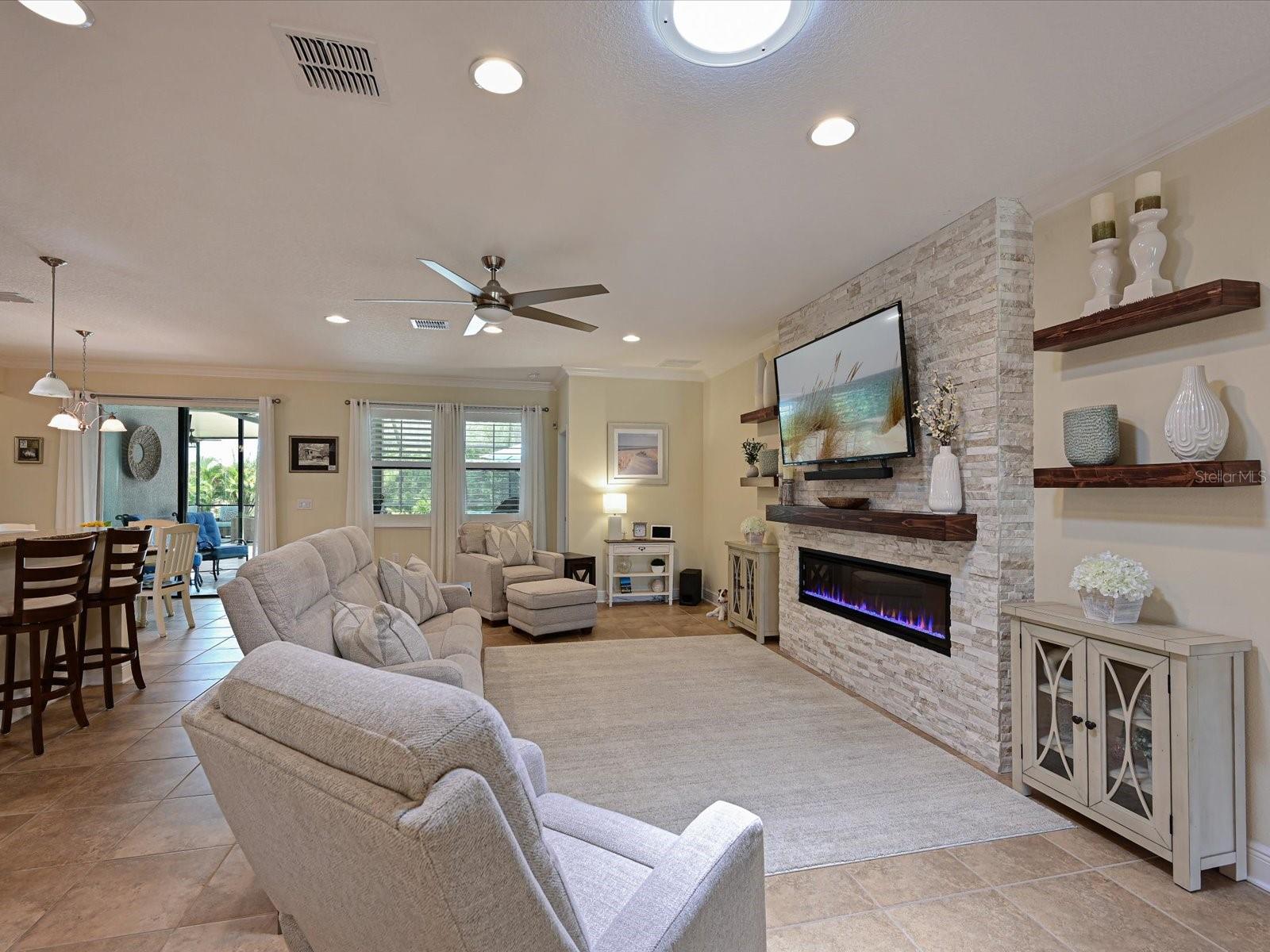 Love the outdoor lanai space for friends and family gatherings? Get ready for the WOW factor for 16006 Mulholland Rd, an exquisite 4-bedroom, 3-bathroom residence in Parrish, FL, offering unparalleled luxury and private living. This stunning home sits on a secluded half-acre lot, providing serene nature views with frequent visits from the local wildlife. It's a haven for those who value tranquility and elegance. As you approach this magnificent property, you’ll be captivated by the beautiful concrete tile roof and striking stack stone facade. The charm continues inside, where a unique in-law suite features a barn door slider that opens to a private den and bath, creating an ideal space for guests or extended family. The heart of this home is its expansive open great room concept, designed with meticulous attention to detail. Crown moldings and a built-in fireplace add a touch of sophistication, while the formal dining area boasts a warm and trendy shiplap wall accent; perfect for hosting memorable dinners. The spacious kitchen is a chef’s dream, equipped with tubular solar skylights located in the kitchen and great room that bathe the rooms in natural light. Granite countertops and a stylish glass backsplash complement the abundance of cabinets, which include custom pull-out shelving. A custom-made coffee bar enhances the kitchen’s functionality, making it a perfect spot for morning routines. Retreat to the massive 17 x 17 master bedroom which is newly carpeted for added comfort. The master suite includes a large walk-in closet and a luxurious bathroom featuring dual vanities and a glass-enclosed rain head shower, providing a spa-like experience right at home. Talk about the ultimate dance floor when you step outside to the lanai and discover a spectacular 40 x 50 travertine outdoor living space. This area is partially under roof, adding an impressive 2000 sq ft of additional living space thus making it ideal for large families or entertaining.The western side of the massive lanai has solar shades for added shade and comfort. The custom heated saltwater pool, with spa and sun deck is a highlight, complete with a solar pool cover to maintain optimal temperature and cleanliness. This area is so inviting you to rest and relax! The outdoor kitchen is perfect for alfresco dining, making every meal an experience. You might just decide to live outside full time! Additional WOW features of this home include plantation shutters, a paver driveway, and a comprehensive security system. Generator hookups for electric and propane ensure you're prepared for any situation, adding peace of mind. The radiant barrier roof sheathing ensures low utility bills, enhancing the home’s energy efficiency. Perhaps one of the most popular features of the Twin Rivers community lys in the access to the Manatee River Riverhouse; where residents have private access to the boat dock and boat launch. A great excuse to buy that boat or kayak you have been wanting!! Located in a rapidly growing area, this property offers easy access to Tampa, St. Petersburg, Sarasota, and Bradenton, making it a prime spot for those who commute or enjoy exploring the vibrant surrounding cities. Don’t miss the opportunity to own this luxurious, well-appointed home at 16006 Mulholland Rd. It's not just a house; it’s a lifestyle upgrade in the heart of Parrish, FL.