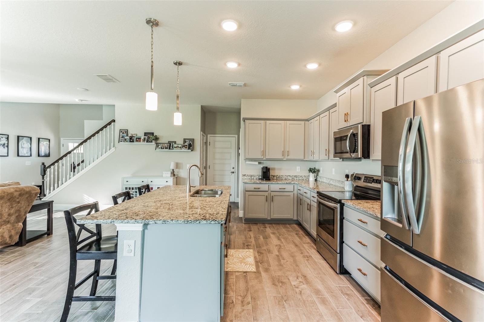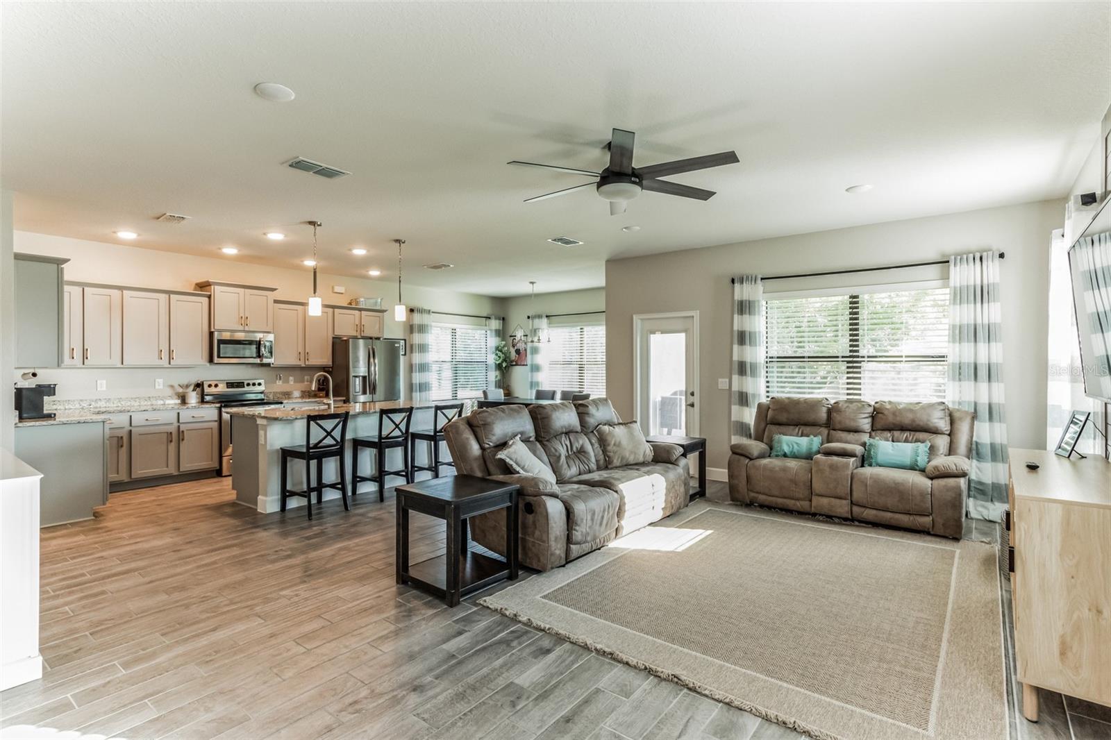 Better than new construction on a premium lot! Welcome home to the beautiful community of Aviary At Rutland Ranch. This home offers 4 bedrooms and 2.5 baths, 5 ¼” baseboards, 5 panel doors for every room, brushed nickel cabinet knobs, as well as ceramic tile throughout the living and wet areas. The master bath is equipped with double vanity sinks. The kitchen boasts 36" upper custom wood gray cabinets with crown molding, Gray plank tiles, and Granite counter tops - perfect for entertaining guests and family! This home includes a glass-top range, dishwasher, and microwave, as well as a Carrier 15 SEER air conditioner! The owner has also had home professionaly painted, installed blinds throughout. Pest free living with your built-in pest control system. Enjoy your beautiful preserve and pond view lot from your large back porch. Aviary is located close to shopping, dining, major interchanges for easy commute, golf and the beautiful Gulf Beaches and more!!