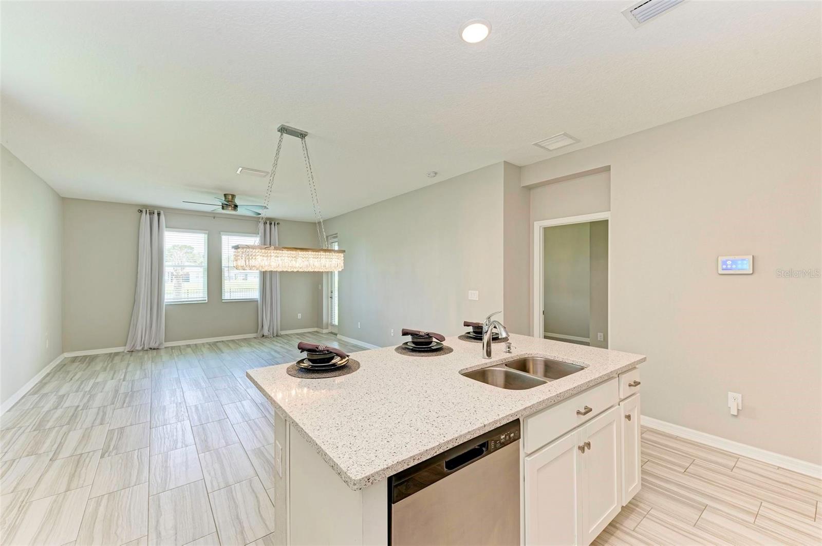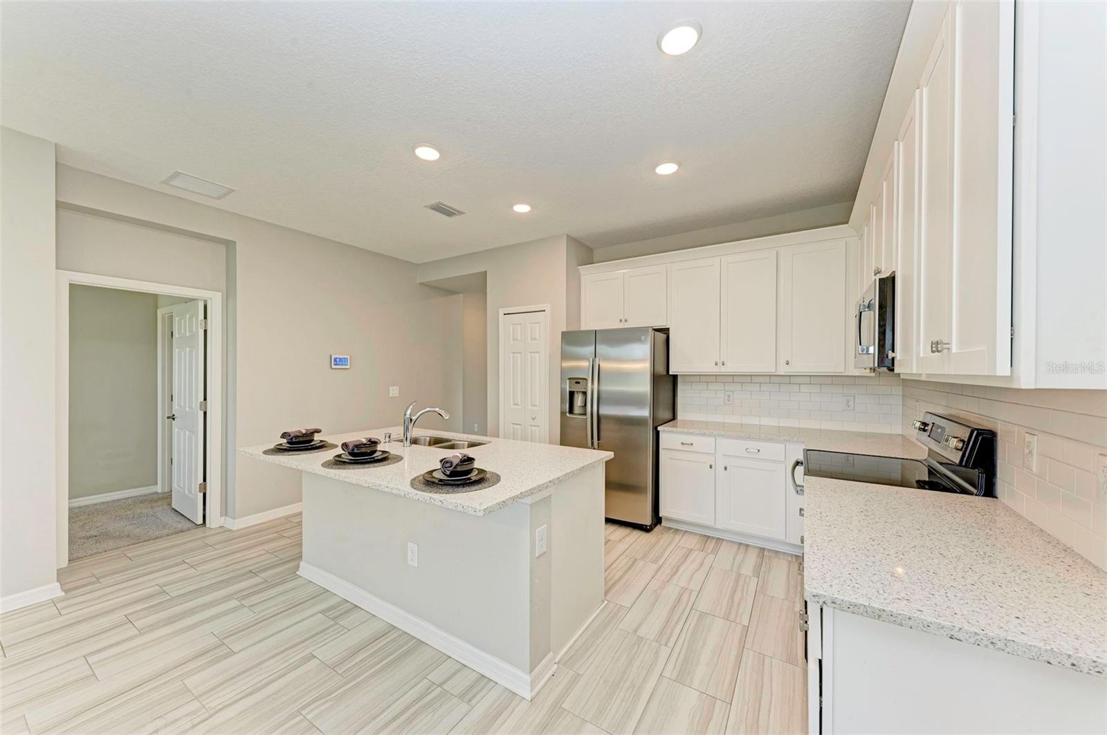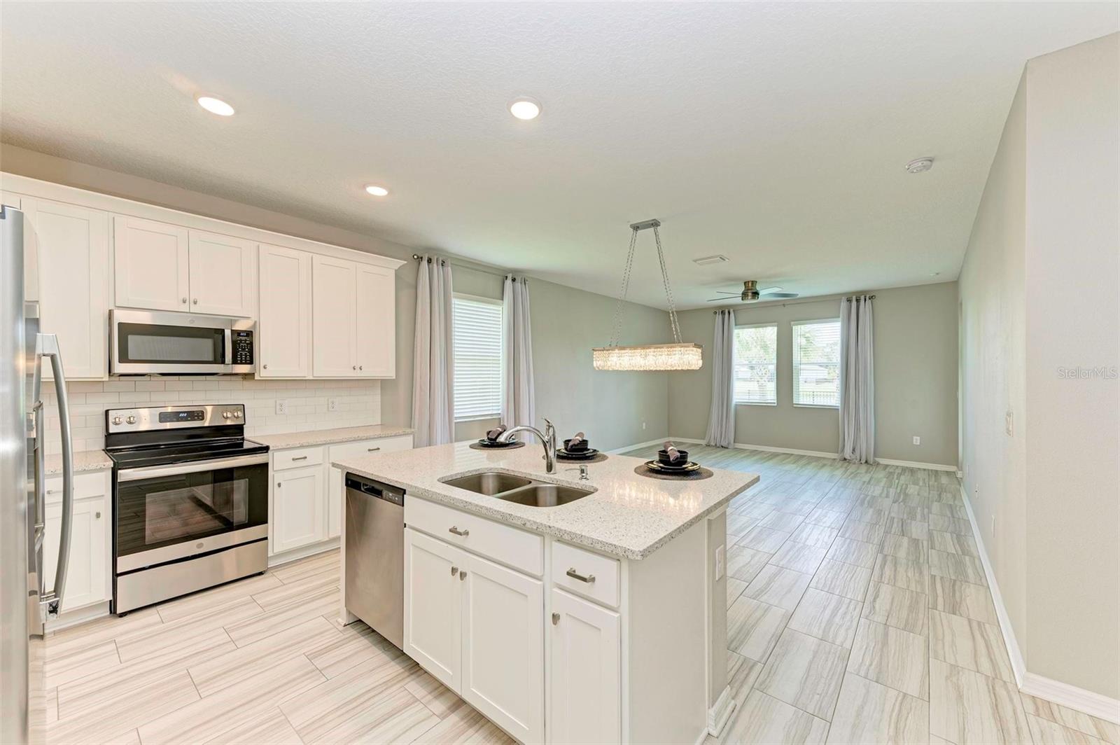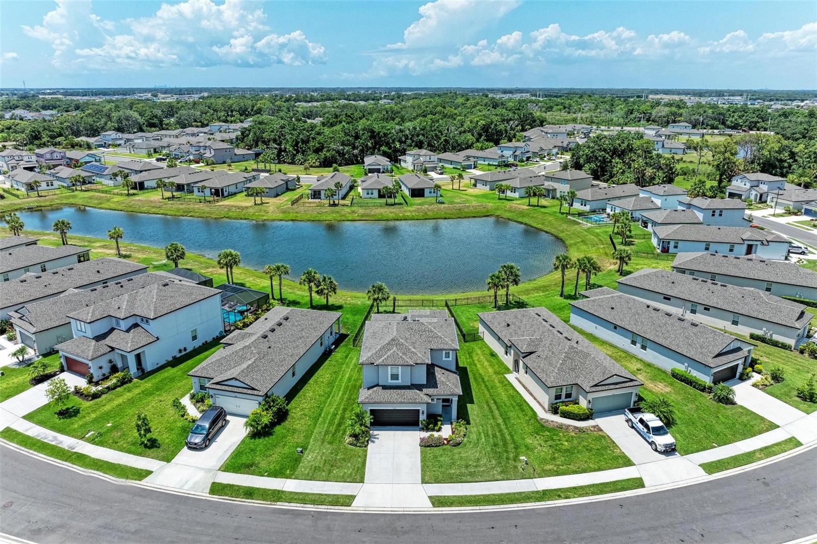 One or more photo(s) has been virtually staged. Welcome to this exquisite M/I energy-efficient 4 bed 2 1/2 bath home that will leave you absolutely spellbound! Nestled within a secure, gated enclave, Summerwoods, home to just 130 select residences, this meticulously maintained masterpiece sits proudly on a coveted waterfront lot, offering unparalleled views and serenity that will transport you to a world of relaxation and refinement. Prepare to be captivated as you step inside this 2-year-old architectural marvel, where you'll be greeted by an array of post-build upgrades that elevate the living experience to new heights, making you feel as if you've entered a modern-day palace. The expansive floor plan will leave you breathless with its lofty ceilings, wood plank-style ceramic tile flooring, faux wood blinds, and upgraded lighting fixtures that illuminate the space with a warm, inviting glow. But wait, there's more! As you venture into the heart of the home, you'll be utterly enchanted by the gourmet kitchen, a testament to both elegance and functionality. Equipped with upgraded quartz countertops, a designer cabinet package, and a state-of-the-art water treatment system, this space caters to the needs of even the most discerning culinary enthusiasts. Versatility reigns supreme with the addition of an expansive upstairs bonus room, complete with a custom-built barn door, offering limitless possibilities as a fourth bedroom, family room, or home office. Retire to the luxurious first-floor master suite, where indulgence awaits with a large walk-in frameless shower, providing the perfect sanctuary for relaxation and rejuvenation. But that's not all—practicality meets style with additional features such as an epoxied garage floor, ADT security system, a fully fenced backyard, upgraded landscaping, and rain gutters, ensuring your peace of mind and comfort. And just when you thought it couldn't get any better, the recent appraisal validating its value and providing instant equity confirms that this home stands as a true gem in the real estate market. Embrace the resort-style amenities of the Summerwoods community, from the sparkling pool and splash pad to the convenient dog park and scenic walking trails, ensuring every day feels like a vacation. But the location? Simply breathtaking! Conveniently located near I-75 and 301, residents enjoy easy access to the world-renowned beaches of Anna Maria Island, St. Petersburg, and Sarasota, making leisurely beach days just a short drive away. Don't let this exceptional opportunity pass you by—seize the chance to make Summerwoods your forever home and embark on a journey towards a life of luxury, tranquility, and endless possibilities!