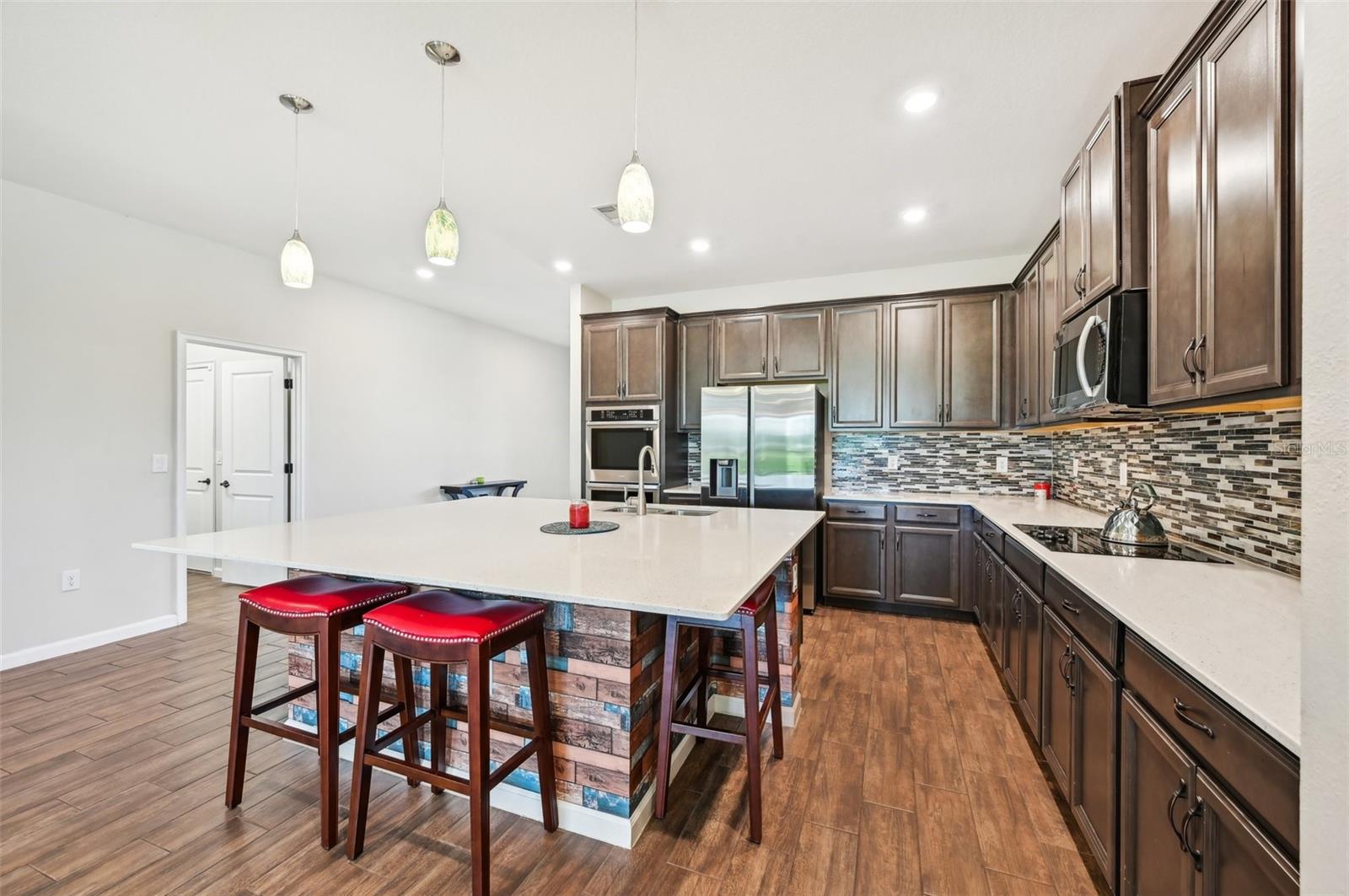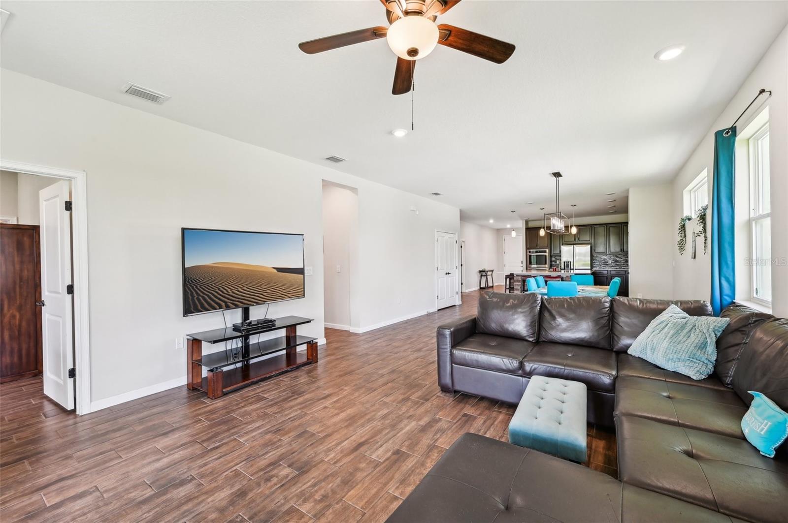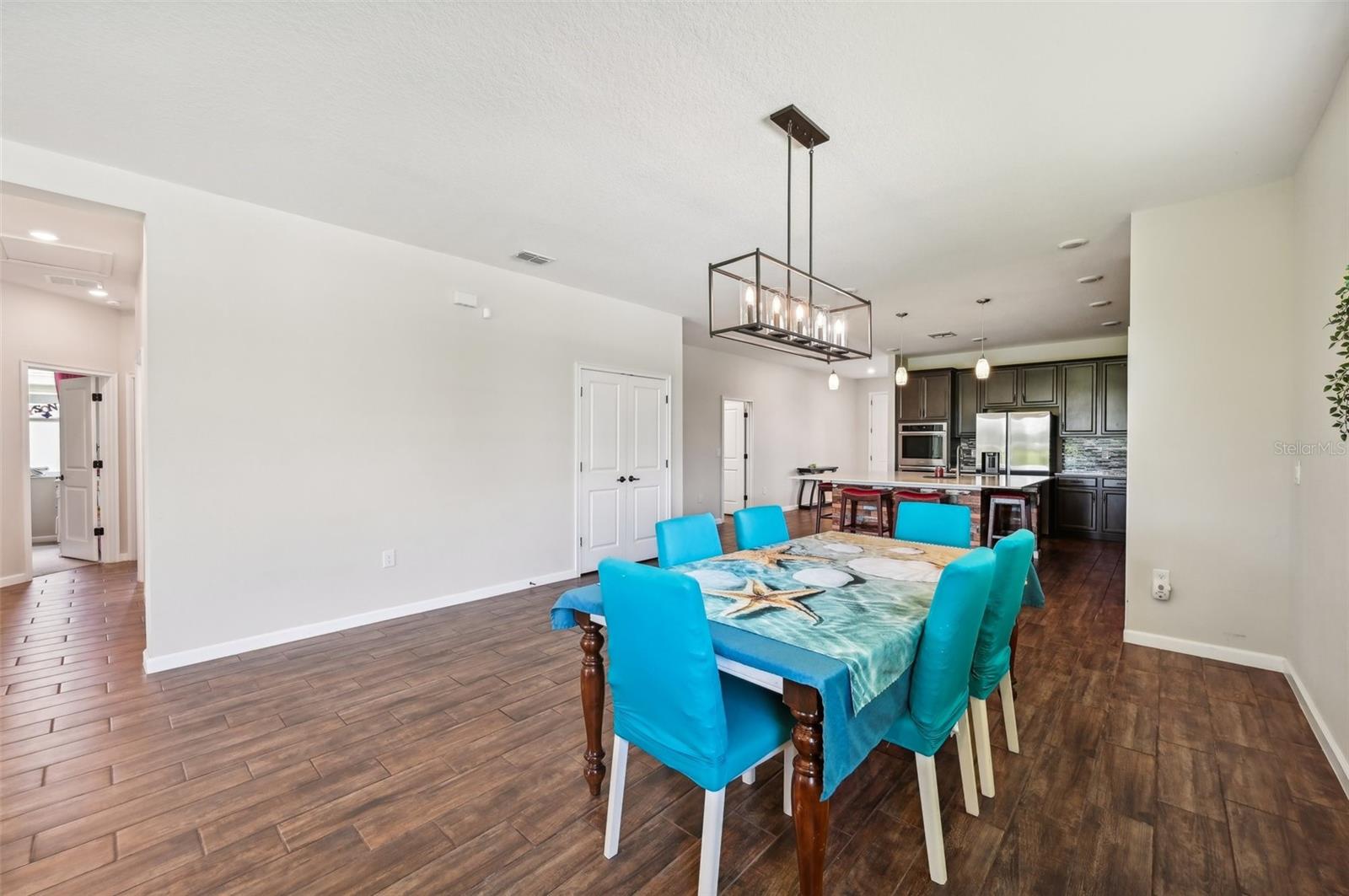 Don't wait to build! This stunning 4-bedroom, 3-bathroom home with a den/flex space is located in the highly sought-after community of Brightwood at North River Ranch in Parrish. Featuring one of the most popular floor plans, this home boasts numerous upgrades. The flooring has been upgraded to wood-like plank tile, and the beautifully upgraded gourmet kitchen features a huge center island with pendant lighting, open to the dining and living area, leading out to your back glass sliding doors. The bathrooms are designed with rectangular sinks, barn-style lighting, and upgraded backsplash, with only two smaller bedrooms carpeted. The oversized primary suite includes a large walk-in closet and a retreat-like bathroom with a walk-in rain shower. The first bedroom offers an adjacent full bathroom, ideal for guests, while the other two bedrooms share a central full bathroom. The North River Ranch community offers an array of amenities, including two pools for residents and a third pool being built in Camp Creek with a splash pad and lazy river, along with shops, boutiques, and restaurants coming soon. The Amenity Center features a game room, Park with swings and slides, green space for organized events, and Food Truck Fridays. The Fitness Center is open from dusk till dawn, and the community includes miles of biking and walking trails, with bikes available for rent to explore the neighborhood. Located in an A+ rated public school district, the elementary school is conveniently across the street. This golf cart-friendly community is centrally located minutes away from I-75 and I-275, providing easy access to Tampa, Sarasota, the beaches, and St. Pete. Plus, a Publix grocery store and additional restaurants are coming across the street. Don’t miss the chance to make this exceptional home yours!