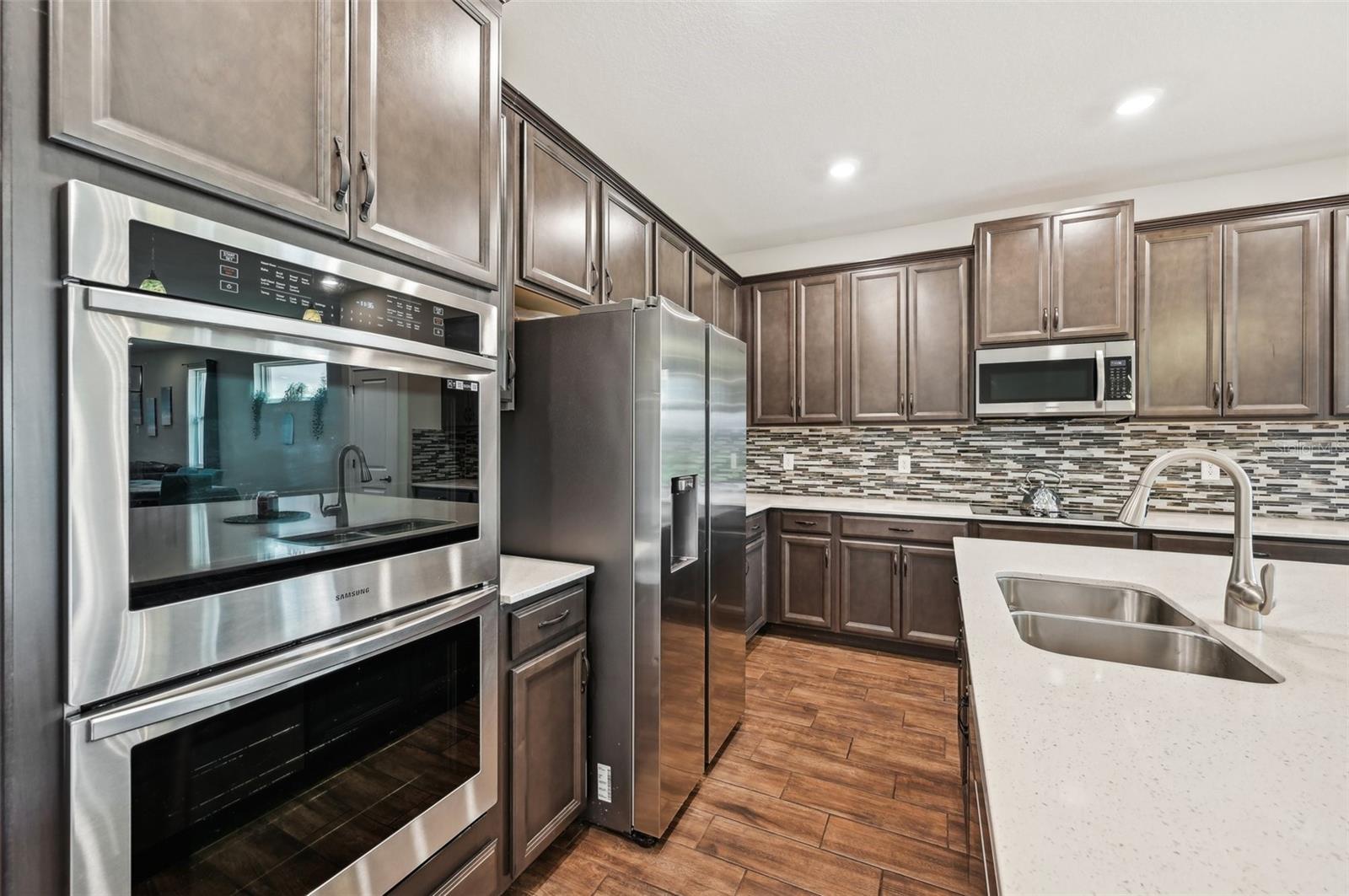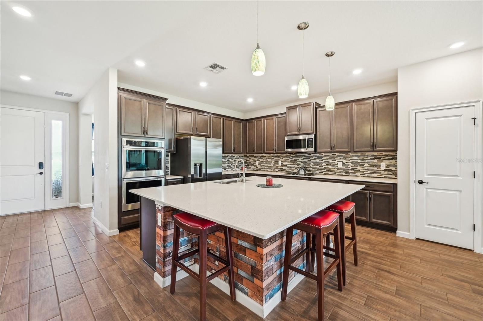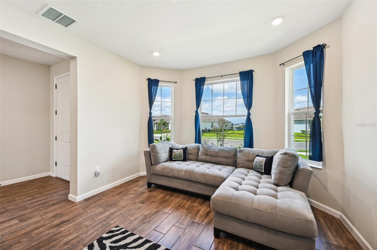 Don't wait to build! This stunning 4-bedroom, 3-bathroom home with a den/flex space is located in the highly sought-after community of Brightwood at North River Ranch in Parrish. Featuring one of the most popular floor plans, this home boasts numerous upgrades. The flooring has been upgraded to wood-like plank tile, and the beautifully upgraded gourmet kitchen features a huge center island with pendant lighting, open to the dining and living area, leading out to your back glass sliding doors. The bathrooms are designed with rectangular sinks, barn-style lighting, and upgraded backsplash, with only two smaller bedrooms carpeted. The oversized primary suite includes a large walk-in closet and a retreat-like bathroom with a walk-in rain shower. The first bedroom offers an adjacent full bathroom, ideal for guests, while the other two bedrooms share a central full bathroom. The North River Ranch community offers an array of amenities, including two pools for residents and a third pool being built in Camp Creek with a splash pad and lazy river, along with shops, boutiques, and restaurants coming soon. The Amenity Center features a game room, Park with swings and slides, green space for organized events, and Food Truck Fridays. The Fitness Center is open from dusk till dawn, and the community includes miles of biking and walking trails, with bikes available for rent to explore the neighborhood. Located in an A+ rated public school district, the elementary school is conveniently across the street. This golf cart-friendly community is centrally located minutes away from I-75 and I-275, providing easy access to Tampa, Sarasota, the beaches, and St. Pete. Plus, a Publix grocery store and additional restaurants are coming across the street. Don’t miss the chance to make this exceptional home yours!